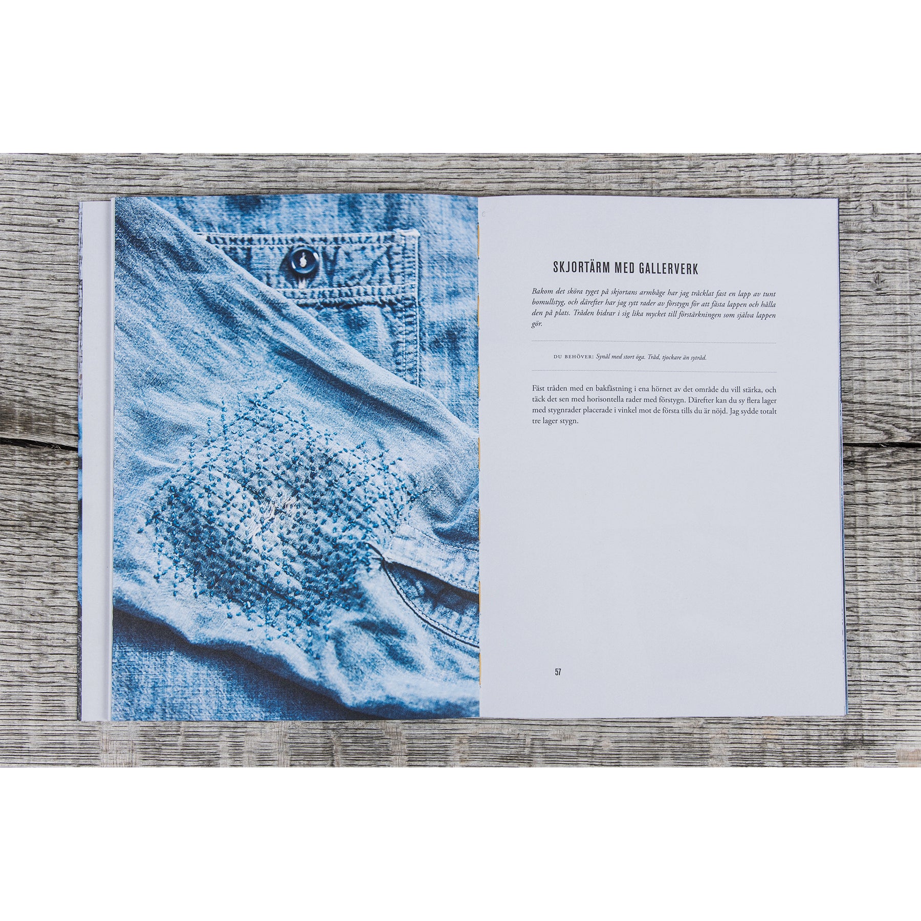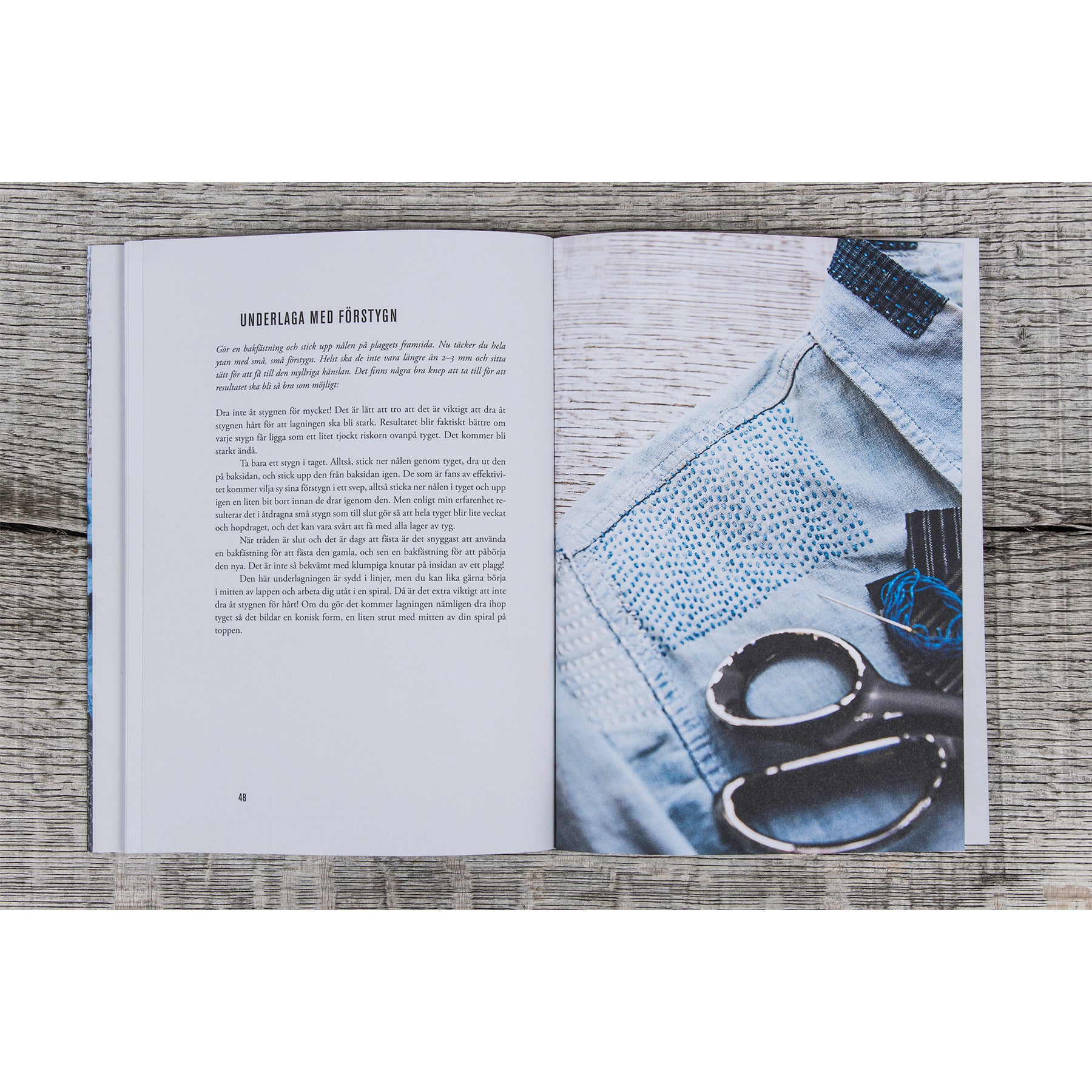 The book contains ideas and instructions for many different mending techniques, and no previous knowledge is required from the reader. The book is written in Swedish but there's also a version in French, German and English.