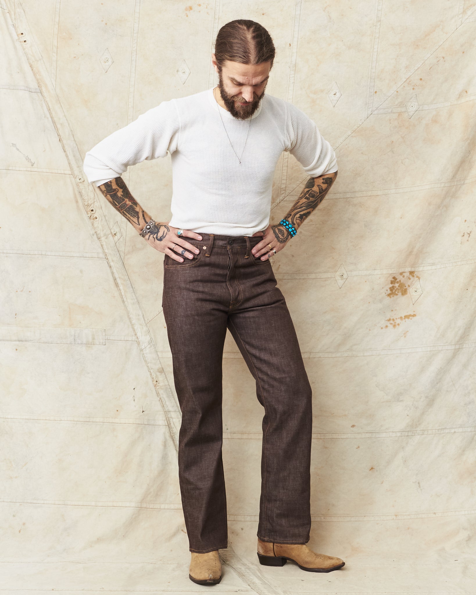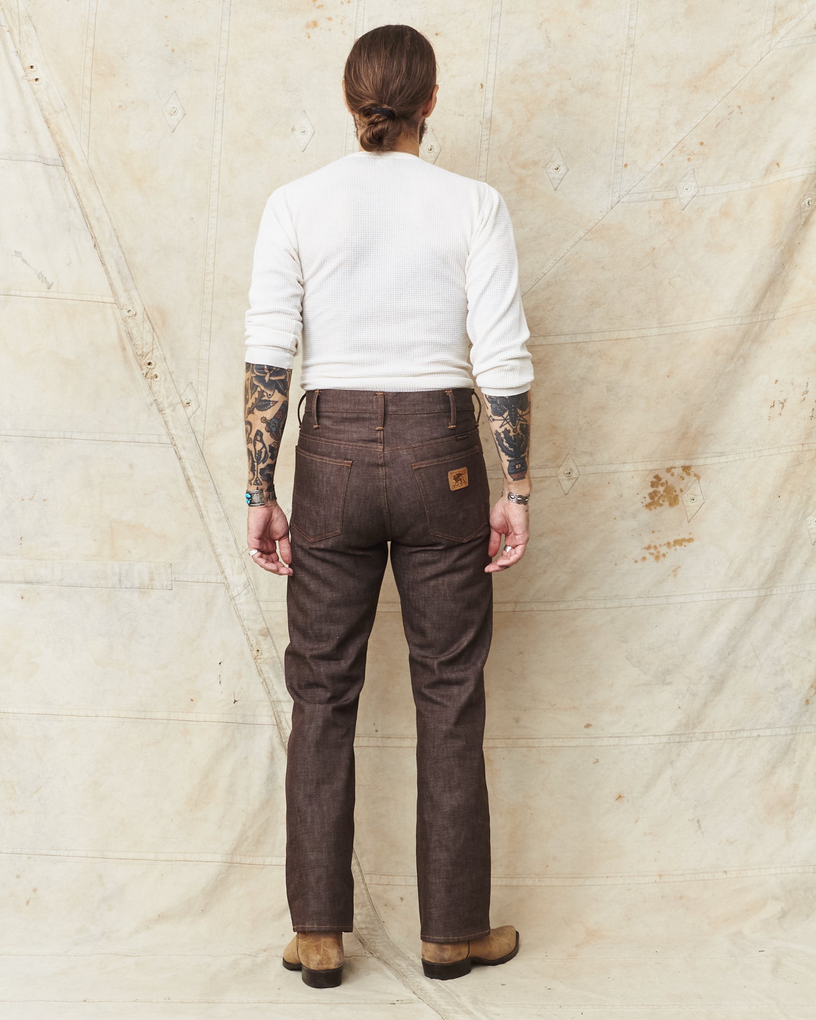 This version of Wyatt is made out of a 13,5 oz wide loom right hand twill denim that is unwashed. Soft to the feel yet rugged to wear! This Wyatt has been slightly updated with a somewhat tilted waist and a higher back pocket placement. A much welcomed update if you ask us!