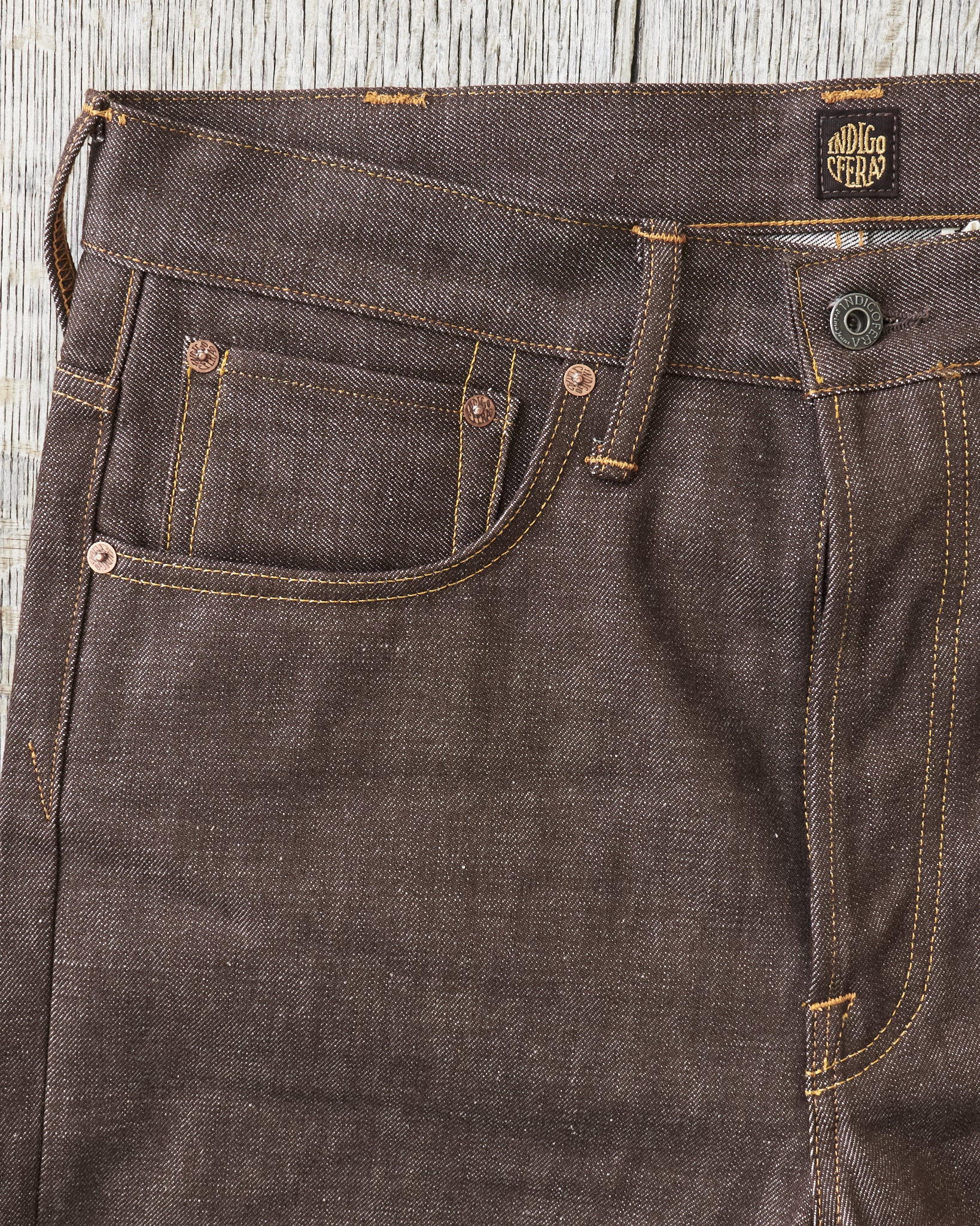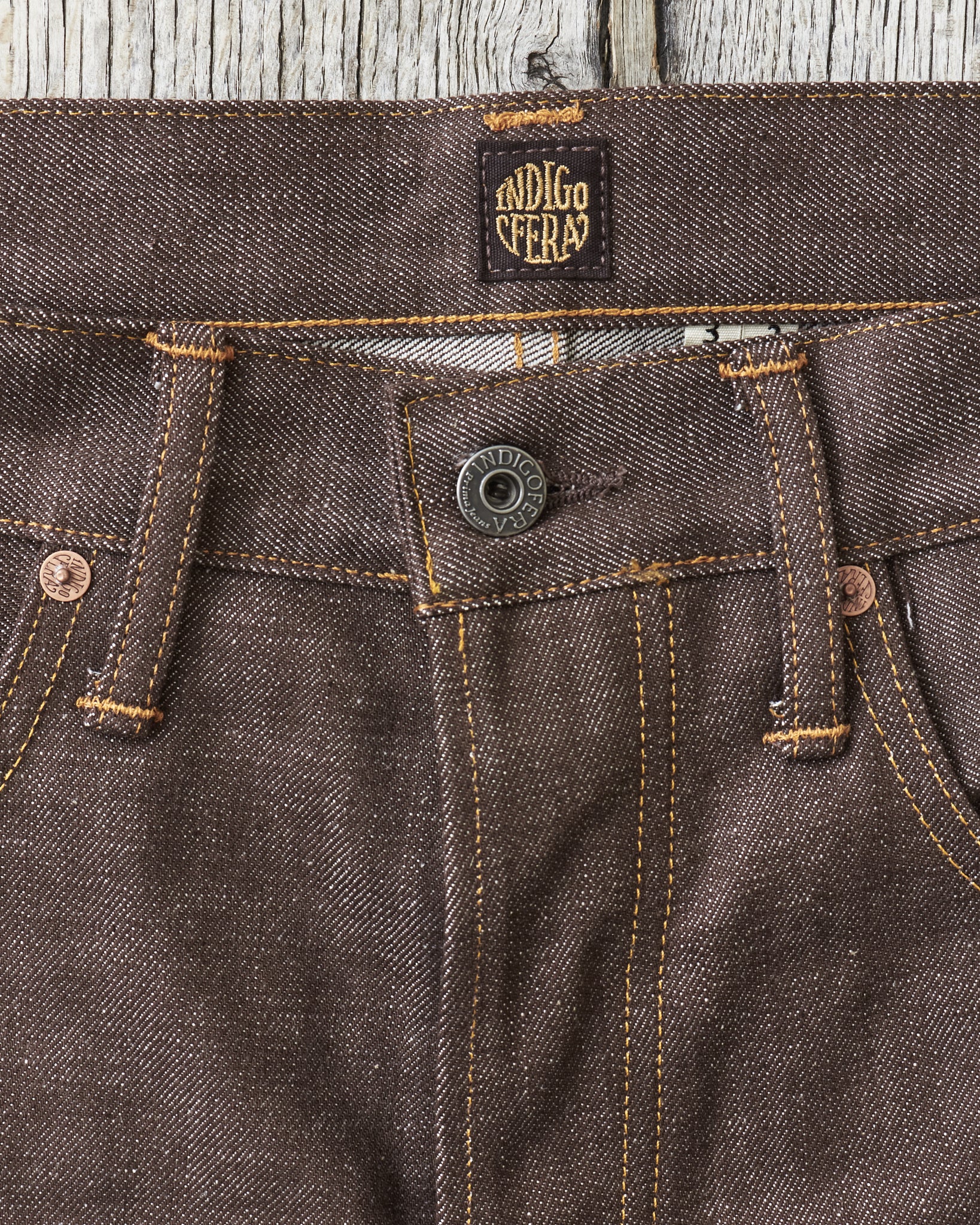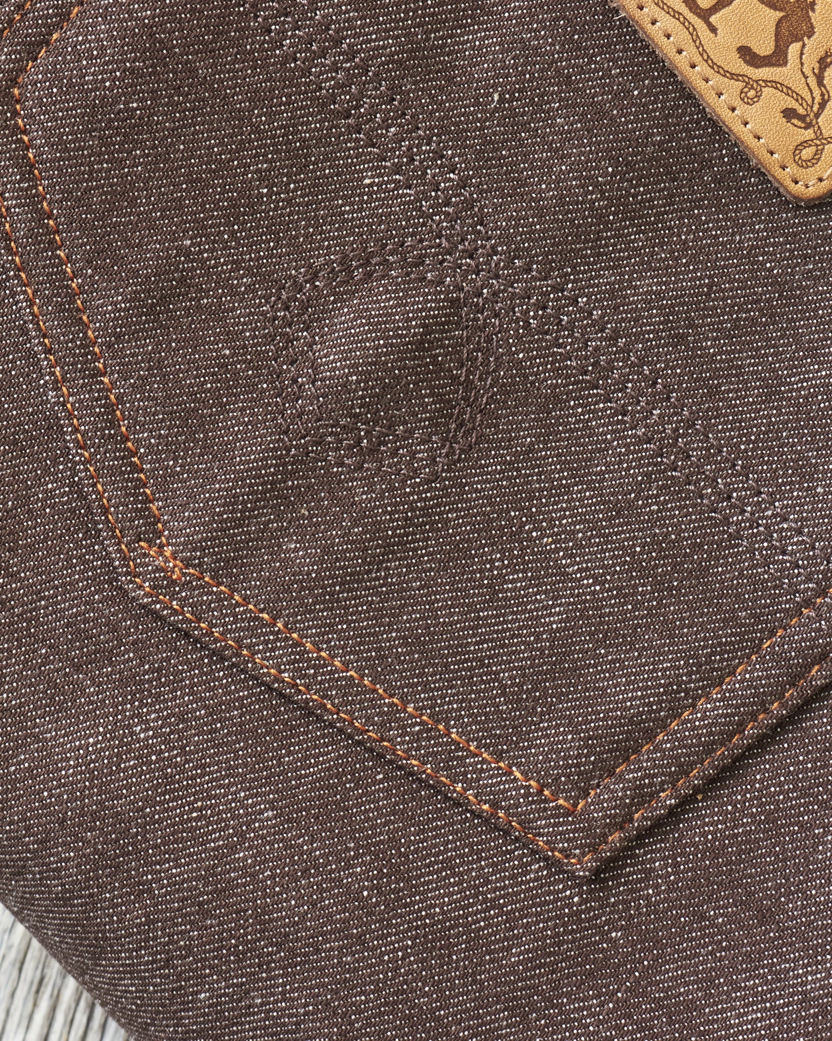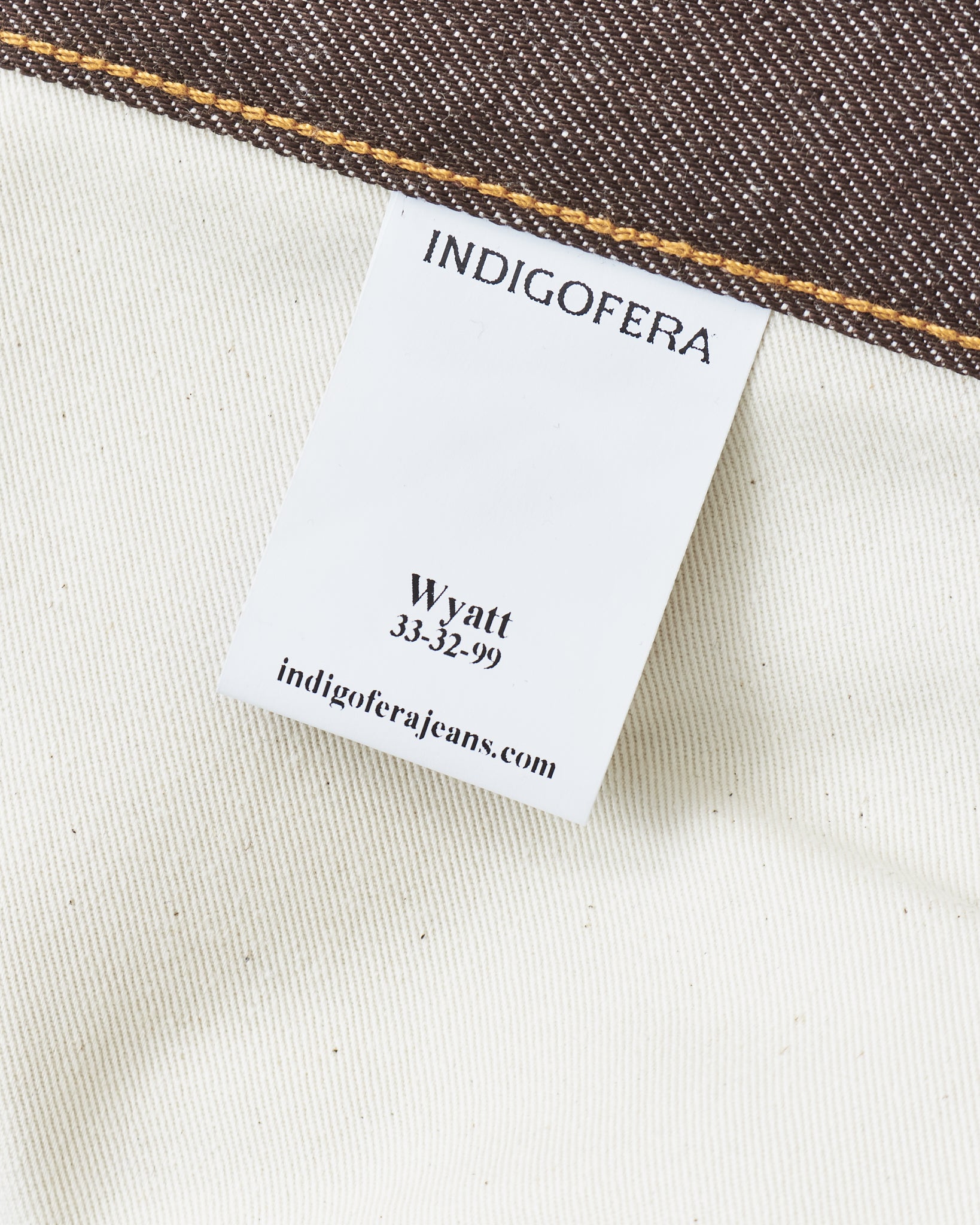 This is a reintroduction of a bootcut model by Indigofera. Wyatt is the predecessor of Hawk and the new version is with a higher waist, triple stitch decoration and a new leather patch on the rear pocket.