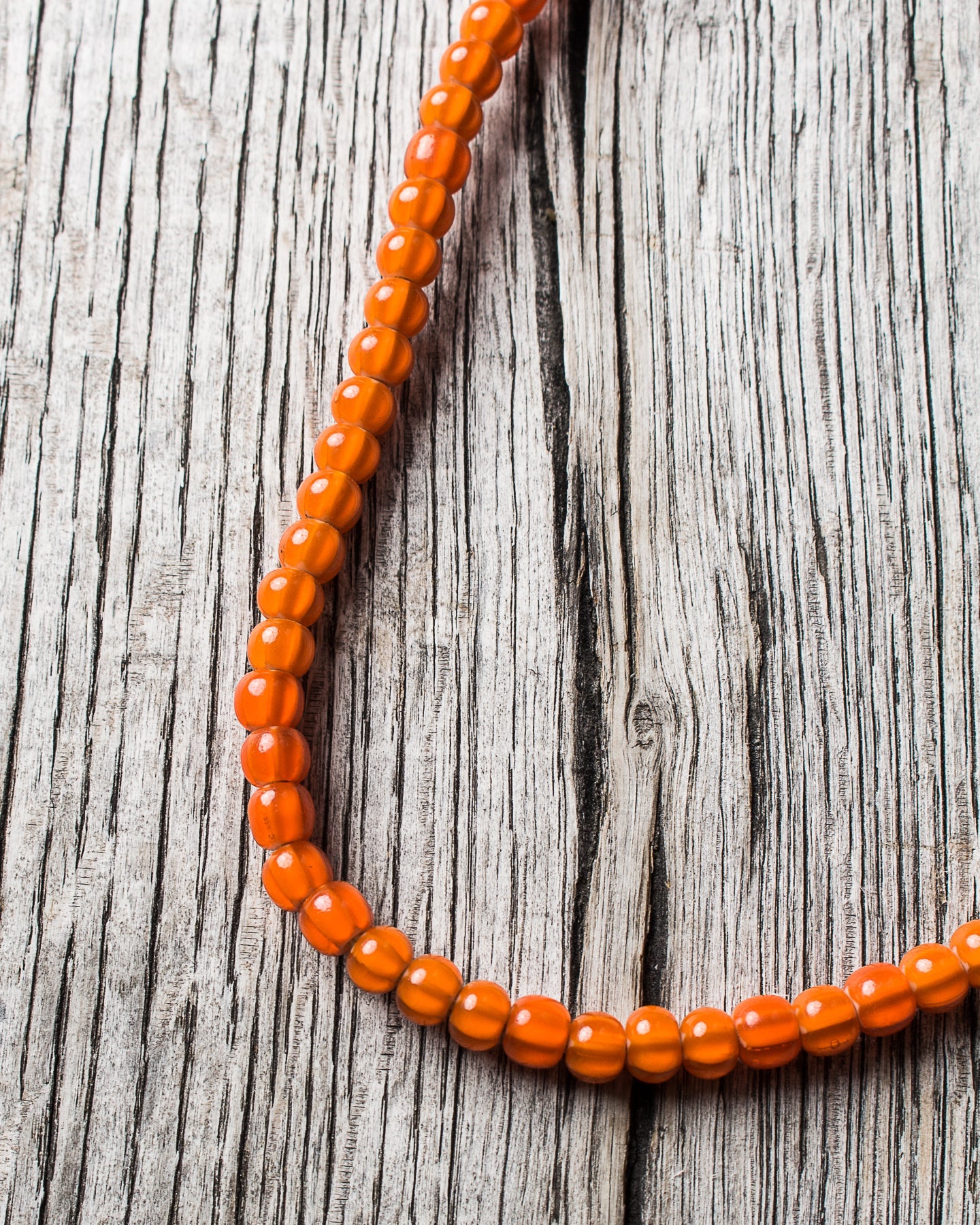 - African White Heart Trade Beads Necklace Orange