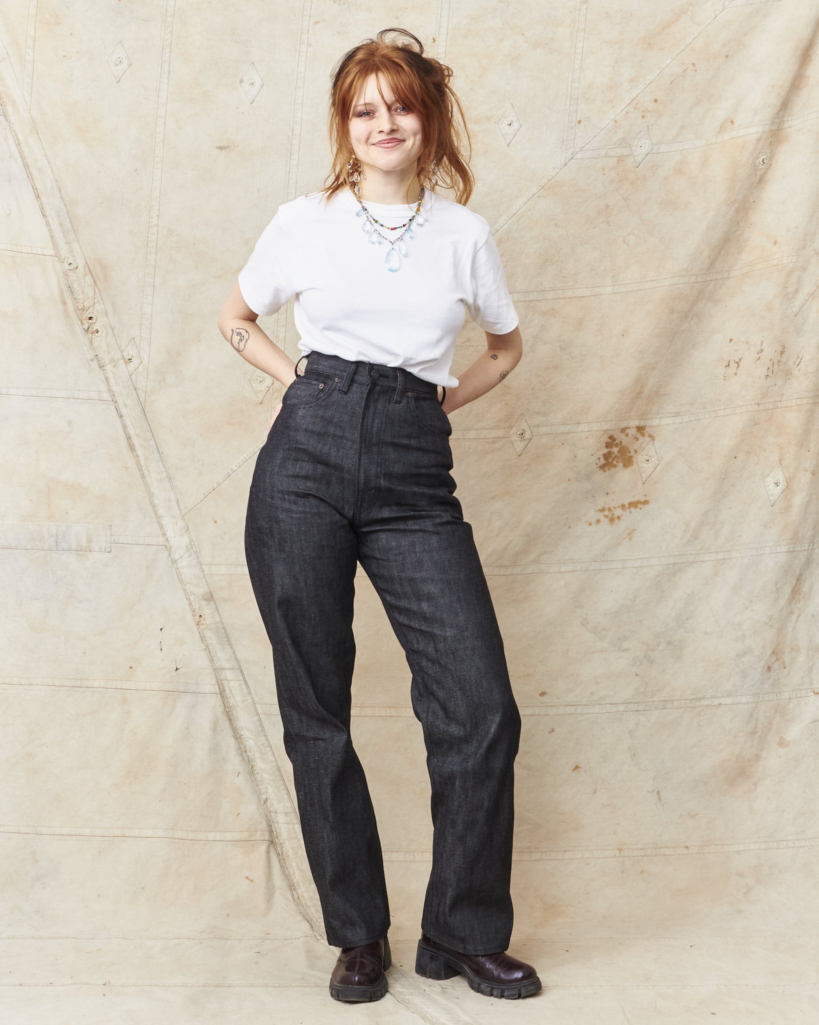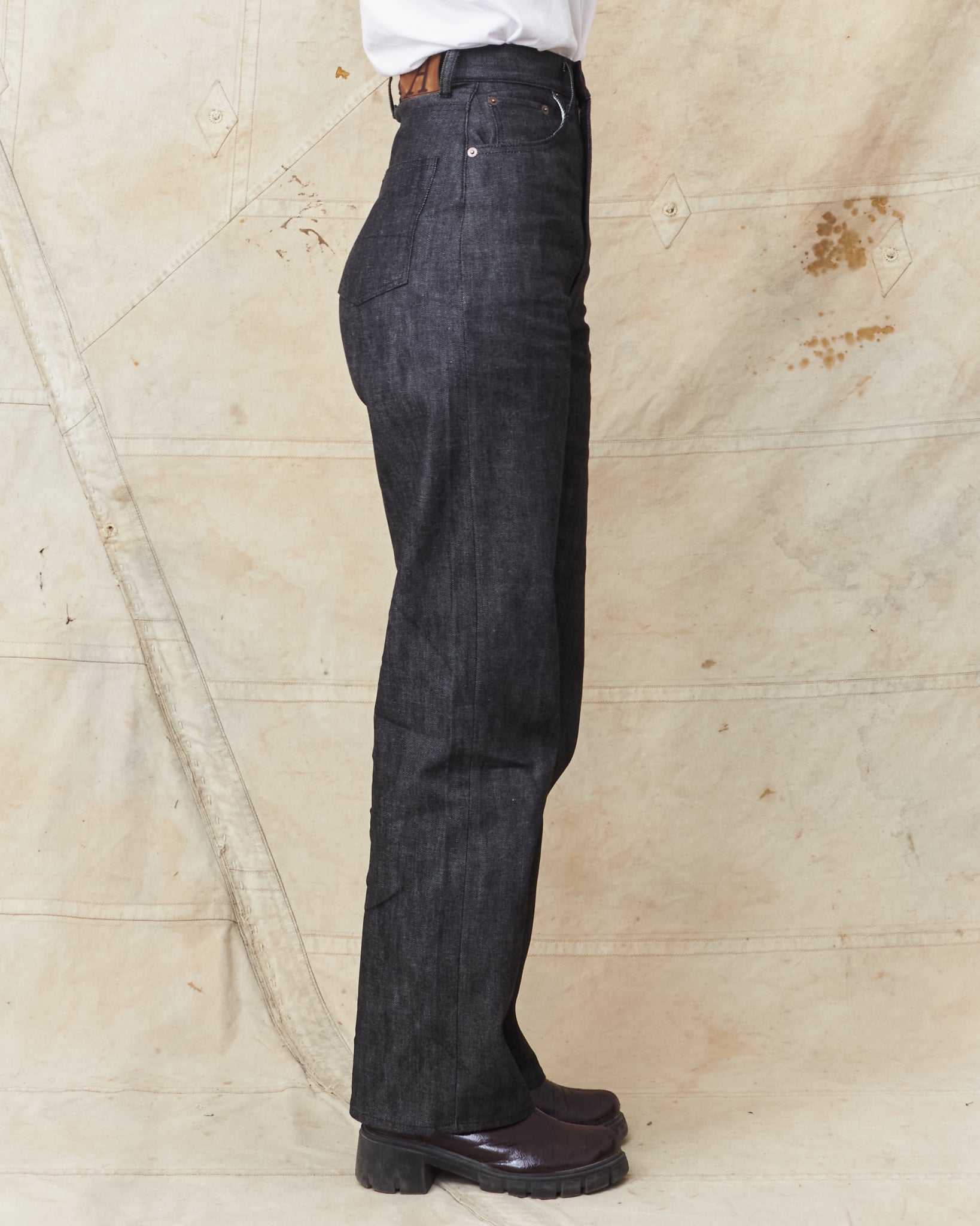 In our collection we have an old vintage original Levi's 701 from the 50's and we have been looking for a brand that manages to recreate the fit. With a high waist, made in 100% cotton and cut with a curve that gives room for hips and seat without a gape at the waist.
