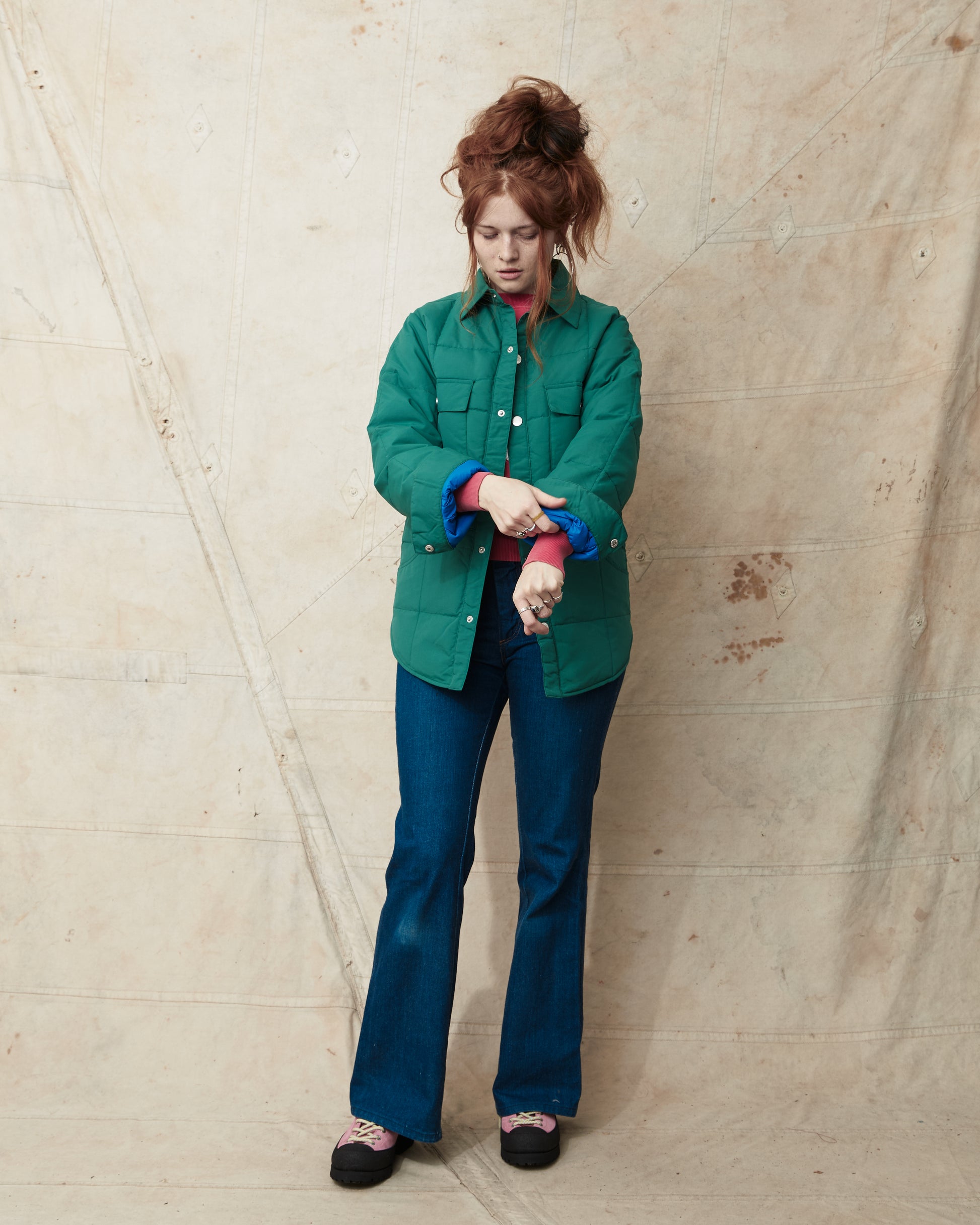 The straightforward snap-front closure allows you to throw it on quickly and wear it open or fully fastened, adapting effortlessly to shifting temperatures. Each colorway is thoughtfully paired with a distinctive interior lining, adding a subtle nod to the playful color combinations that defined classic outdoor gear of the 1960s and ’70s.