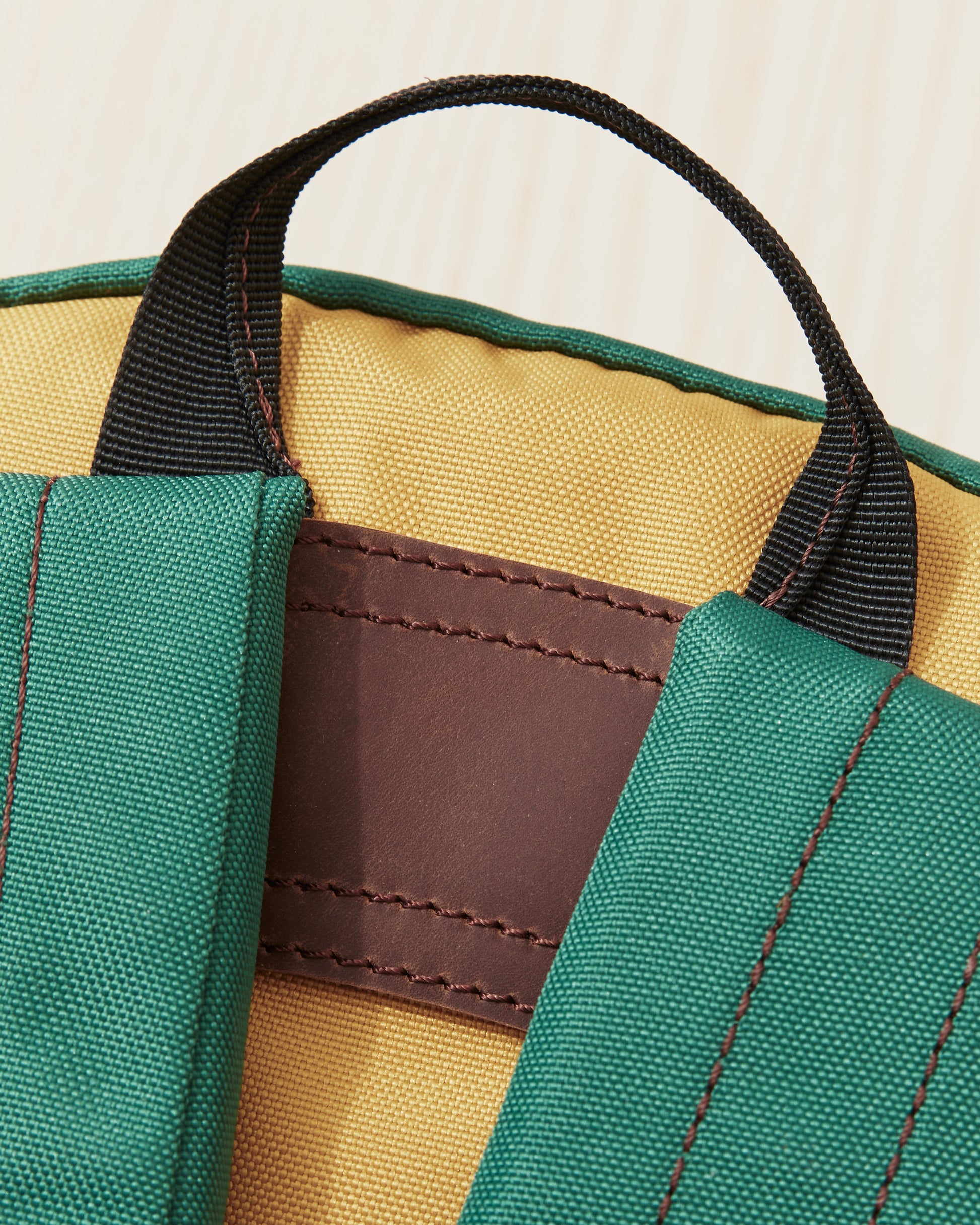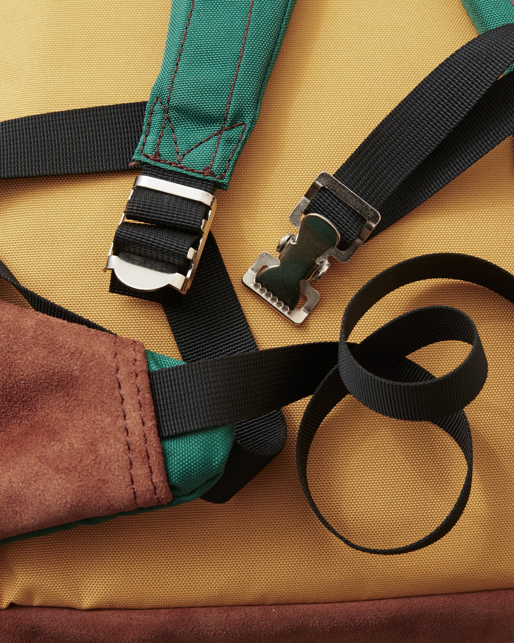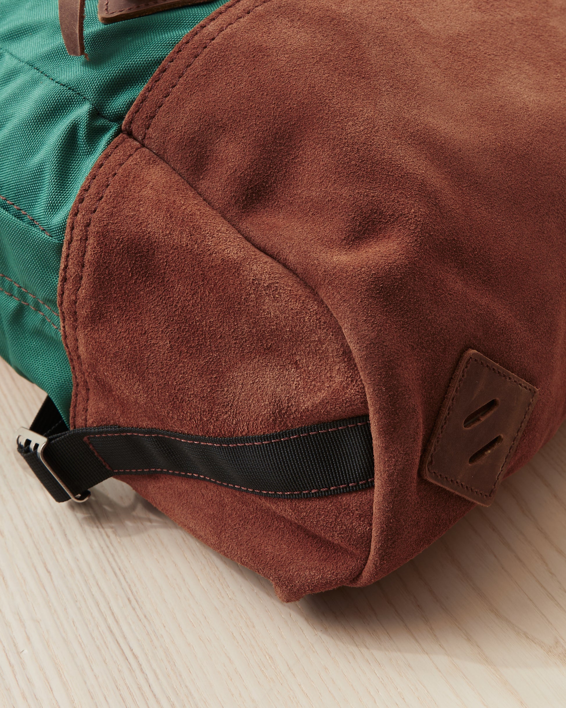 The Gator Backpack is inspired by the early climbing rucksacks of the 1970s, and like those, our pack is made to be hardwearing. It's cut from heavy-duty water-resistant canvas and has an added suede base, so the canvas won't get worn thin from the rocks. The four leather ‘pig noses’ allow you to strap down any extra gear you need in a hurry or can’t stow inside. Besides the main compartment, the pack has a smaller internal zippered pocket and laptop sleeve.