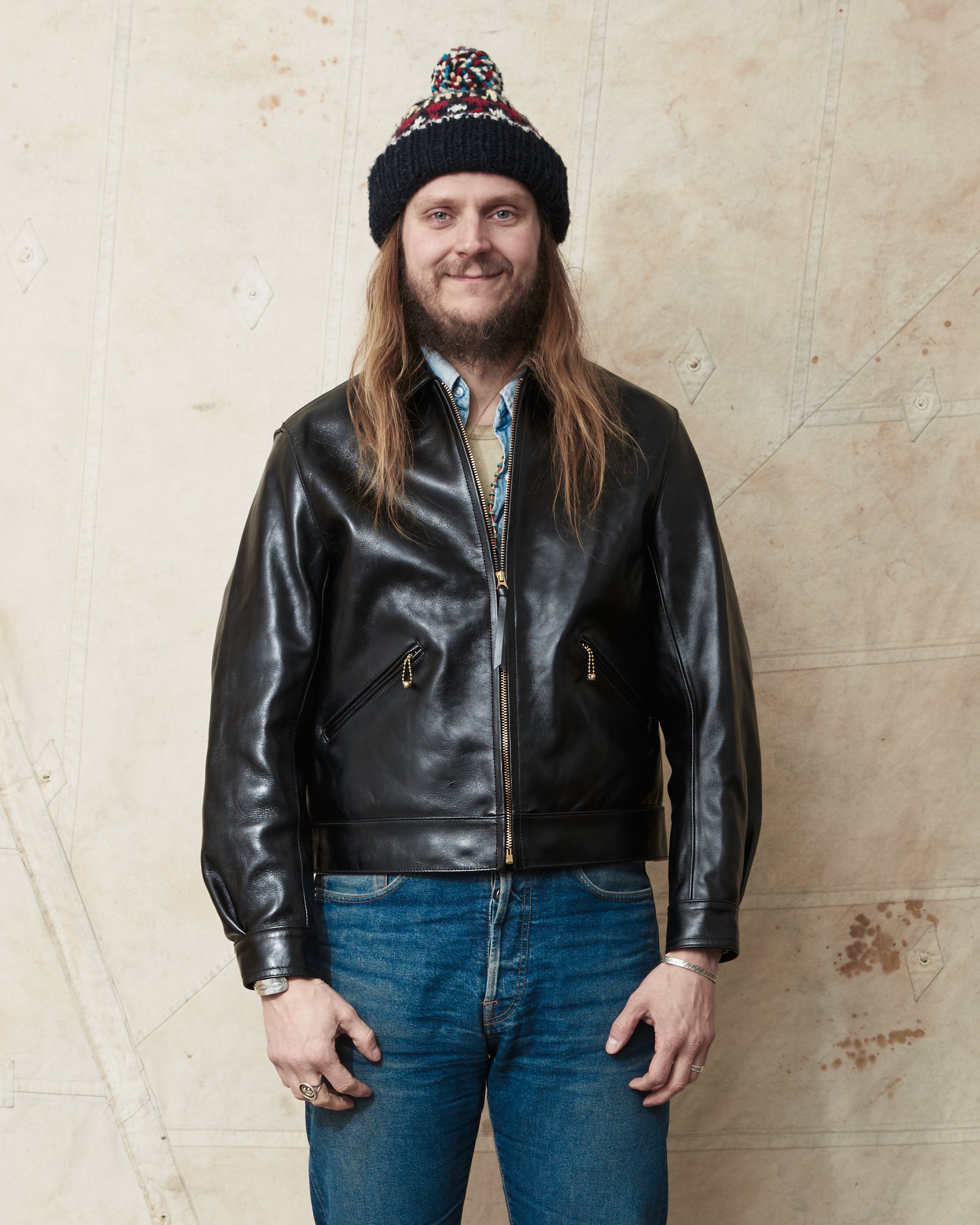 Douglas is 180 cm tall and weights 85 kg and wears a size 42. Combining the jacket with a pair of well loved Indigofera Wyatt jeans, John Lofgren Engineer Boots, Warpath leather belt and a Chamula beanie.