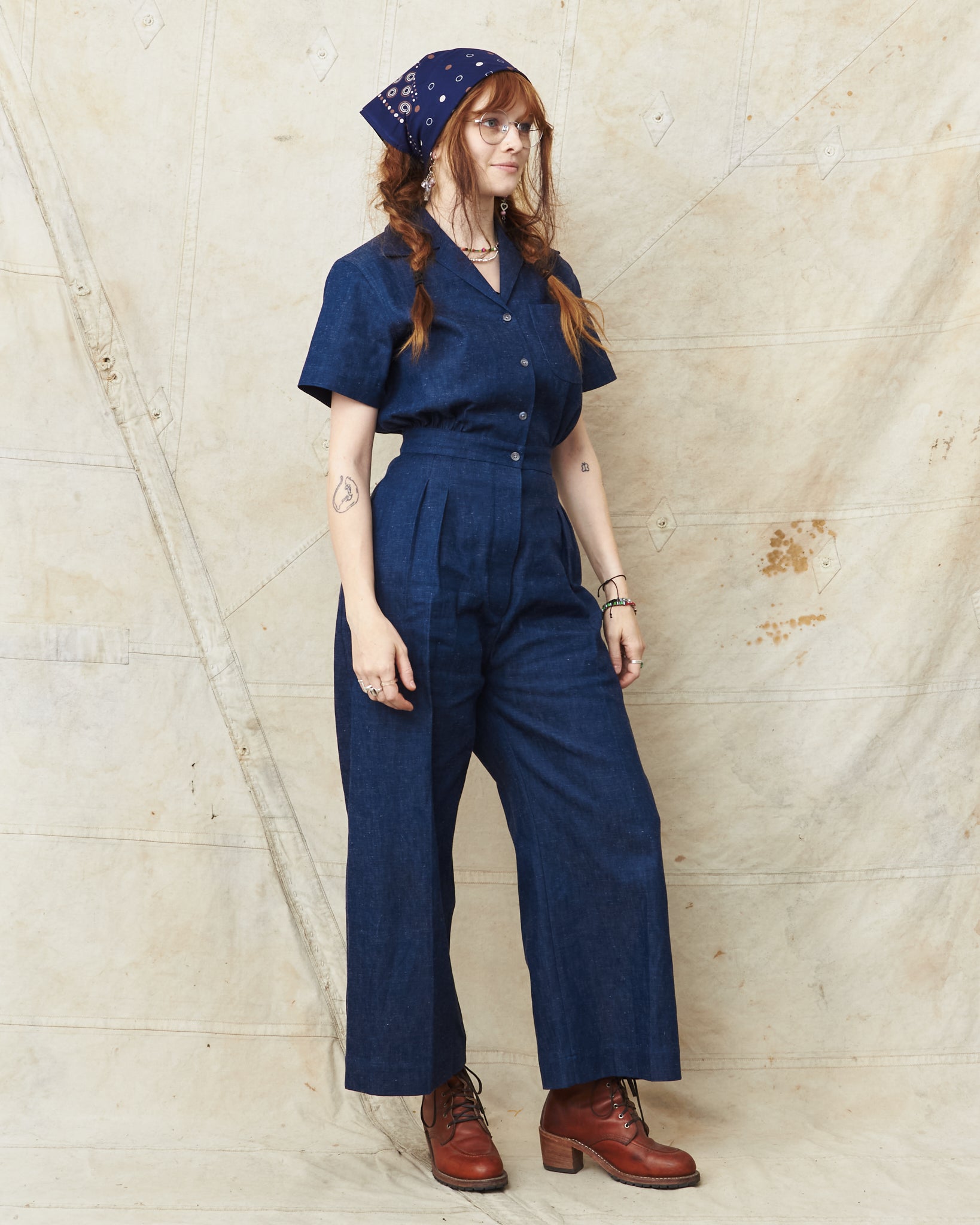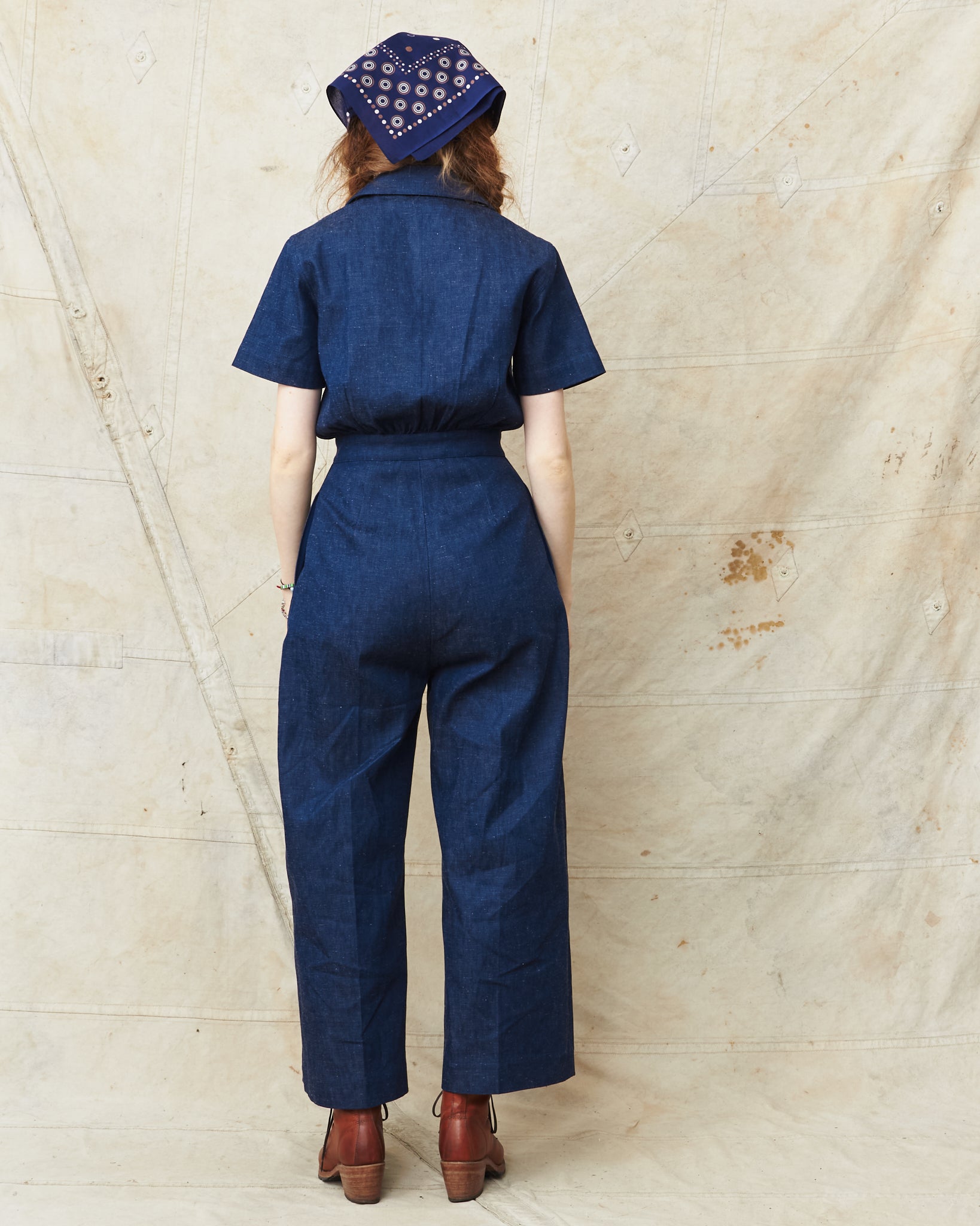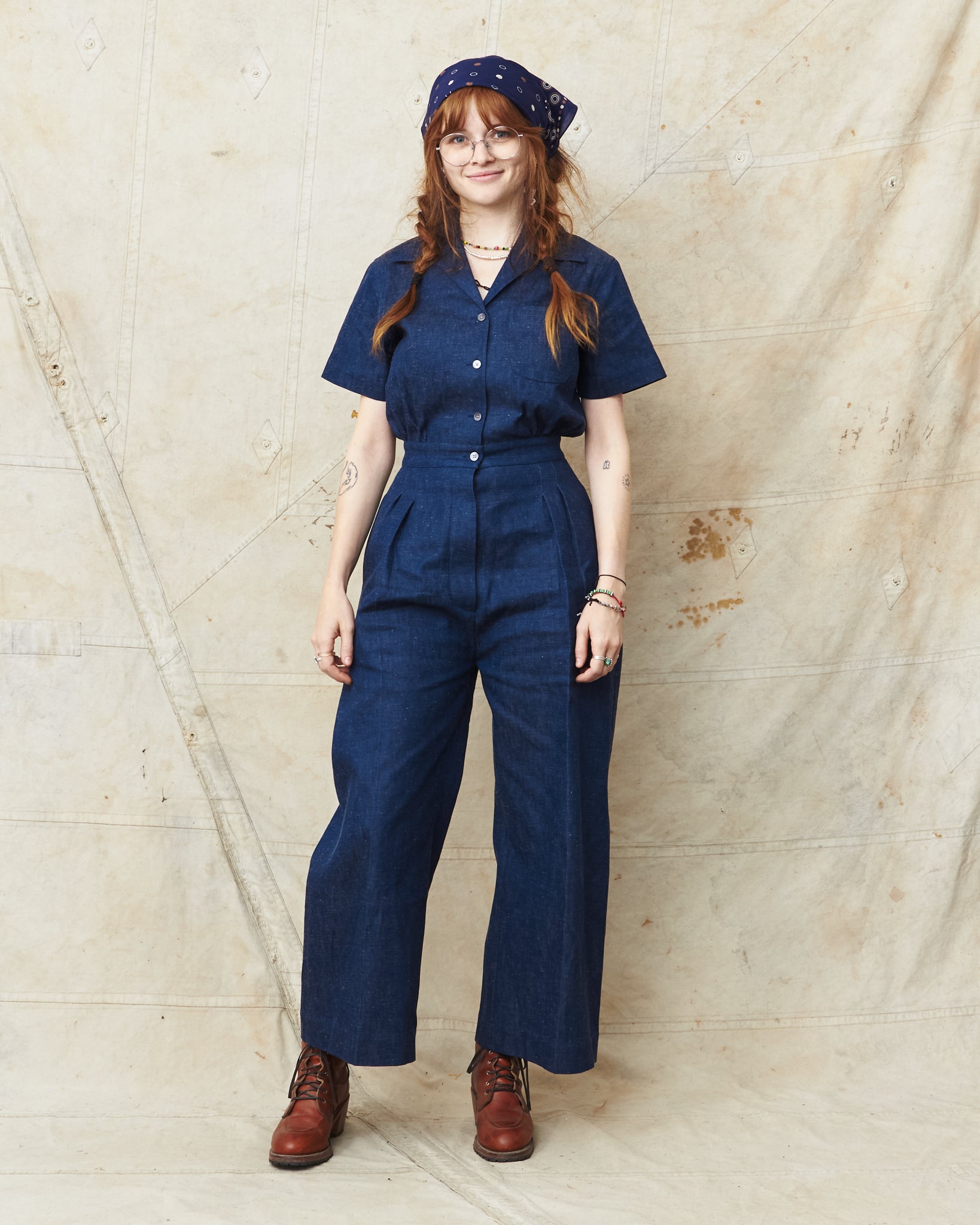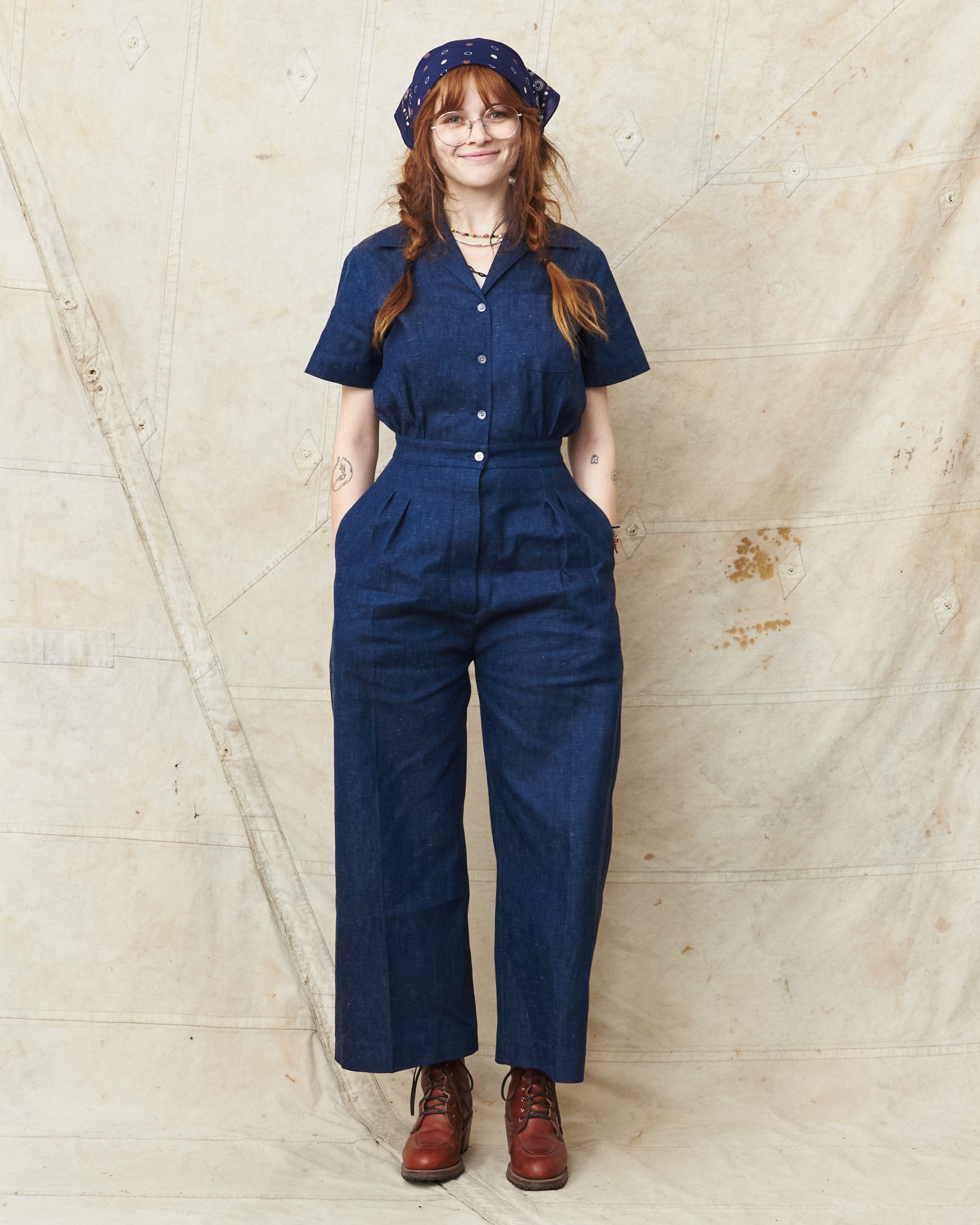 This is a Jumpsuit that is part of Bryceland's women's wear line called The Emmeline. We ordered a few of this amazing piece of garment and it does not disappoint. It is made out of 100% cotton Jelt Denim, the fabric has a beautiful texture and it has a nice slub to it. With wear this fabric will keep getting more and more beauty.