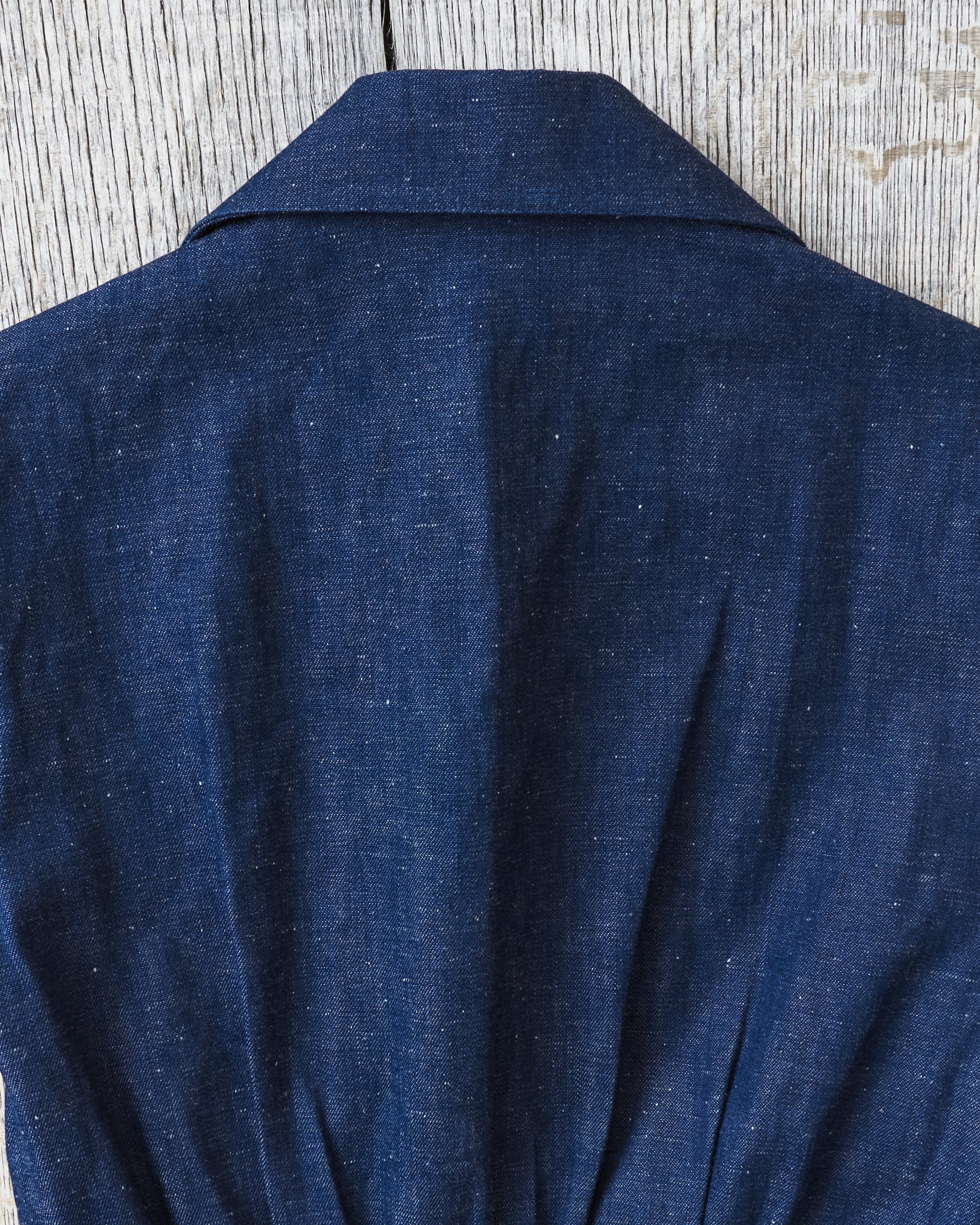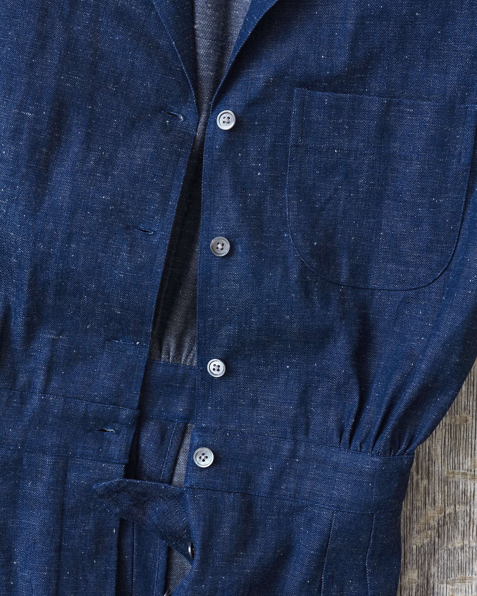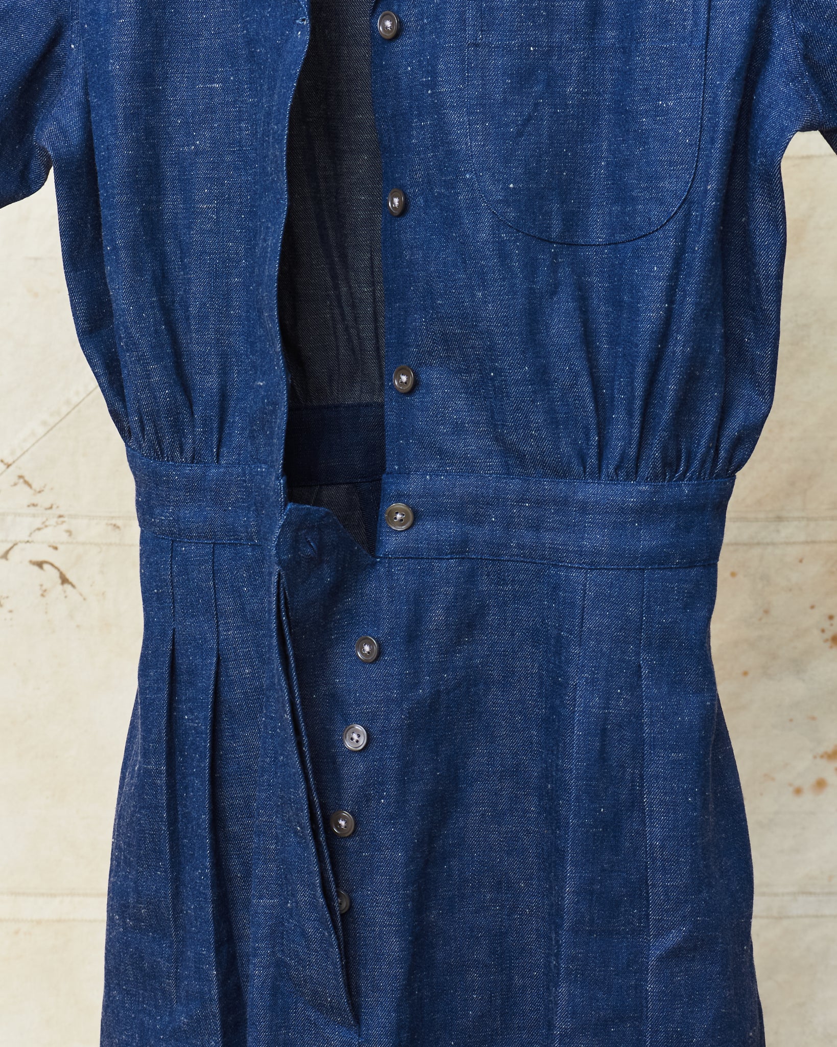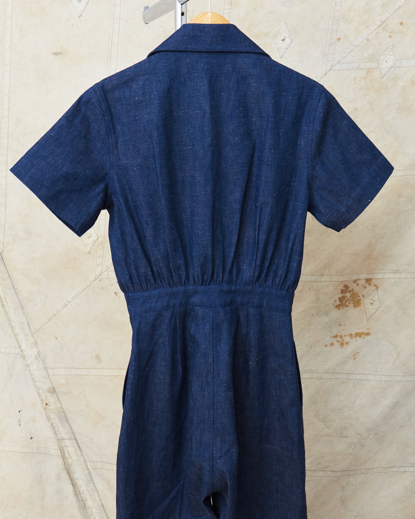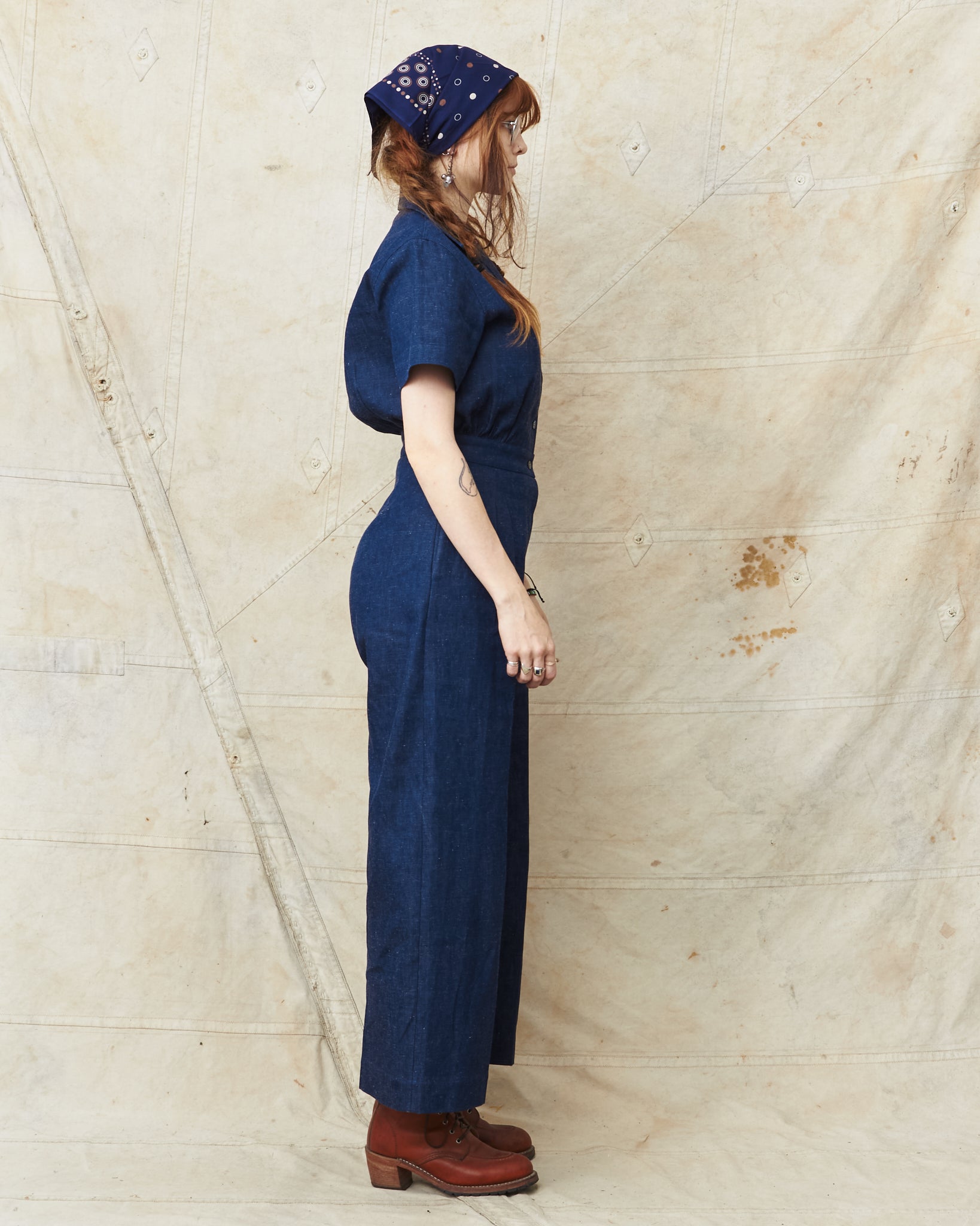 This is a Jumpsuit that is part of Bryceland's women's wear line called The Emmeline. We ordered a few of this amazing piece of garment and it does not disappoint. It is made out of 100% cotton Jelt Denim, the fabric has a beautiful texture and it has a nice slub to it. With wear this fabric will keep getting more and more beauty.