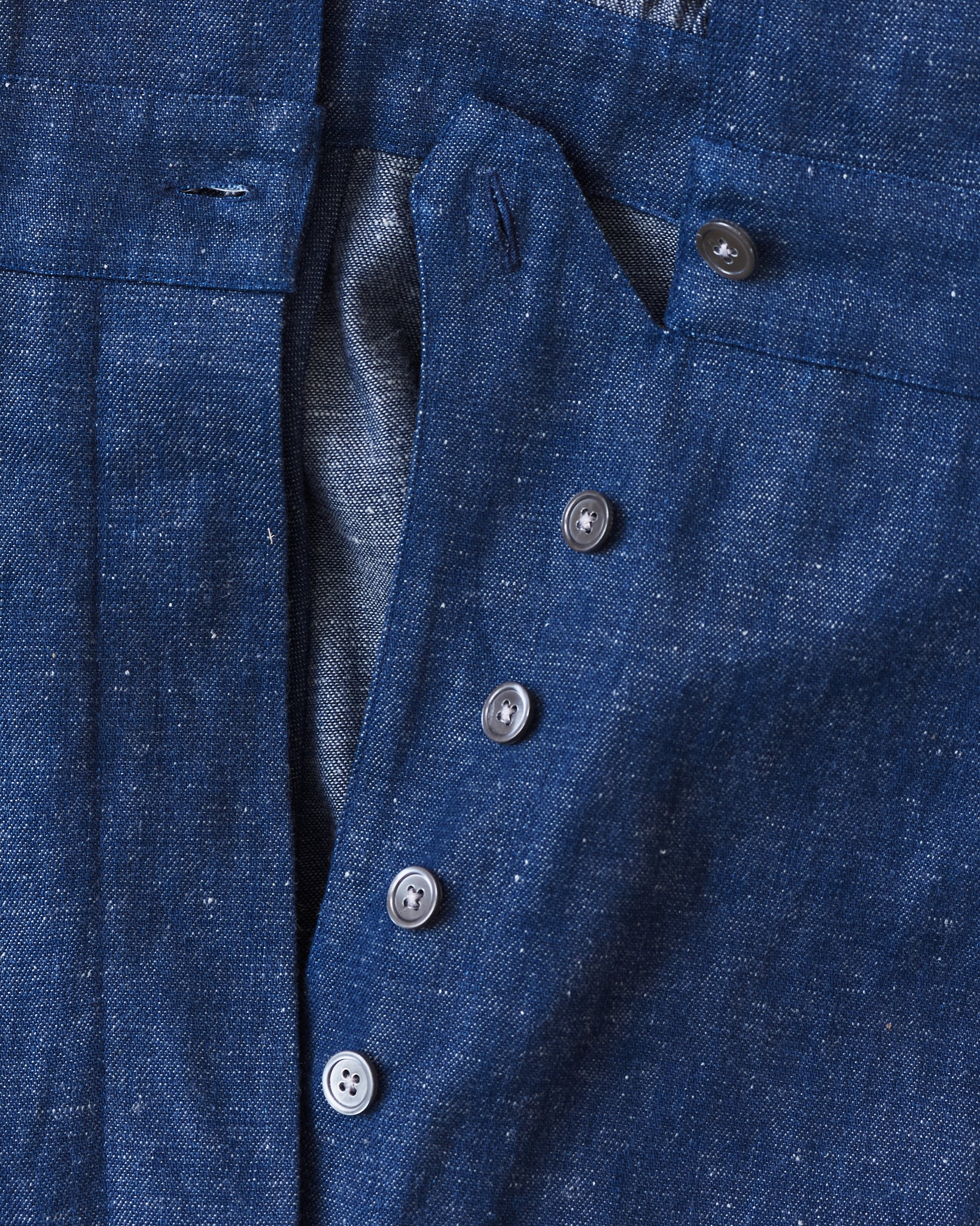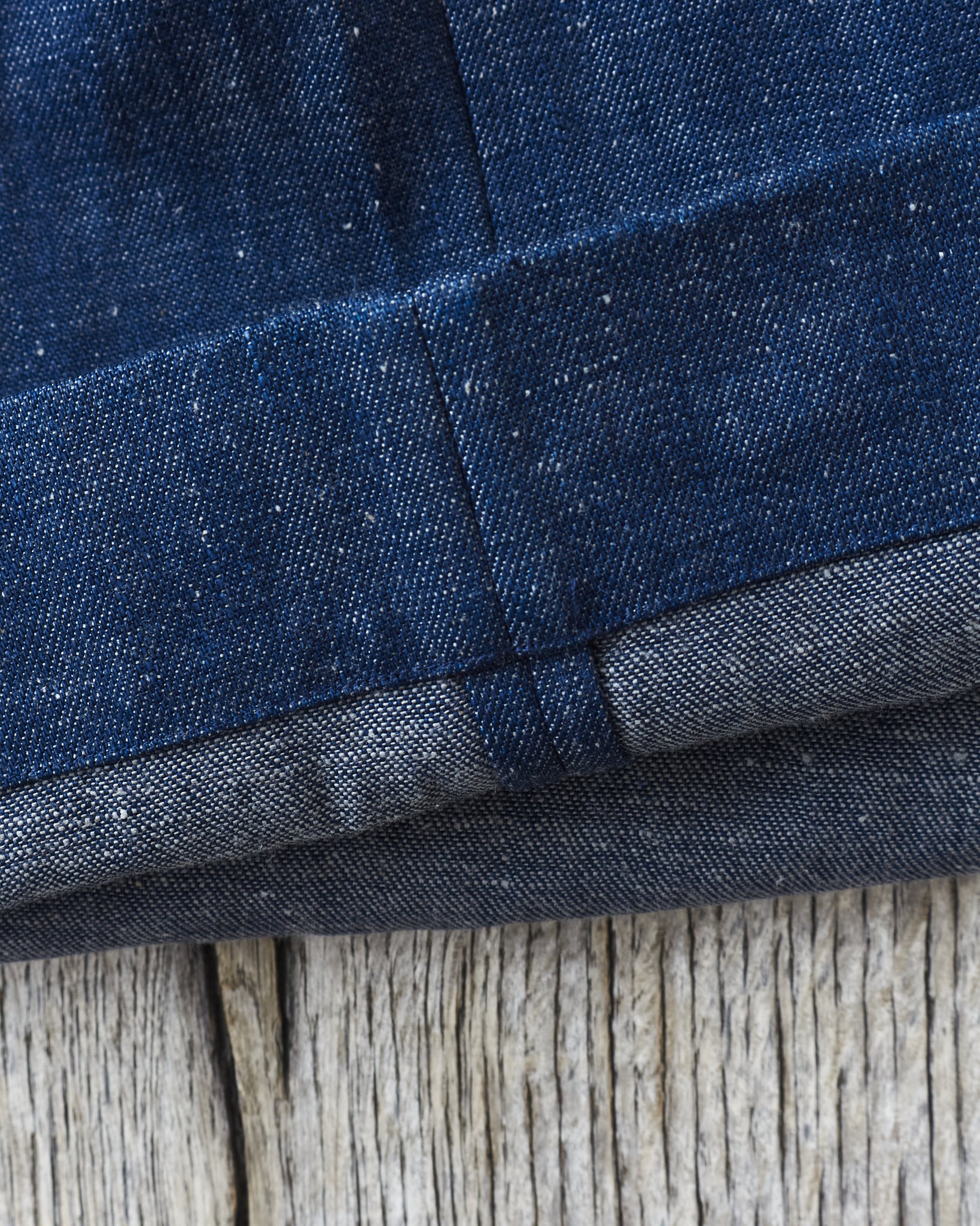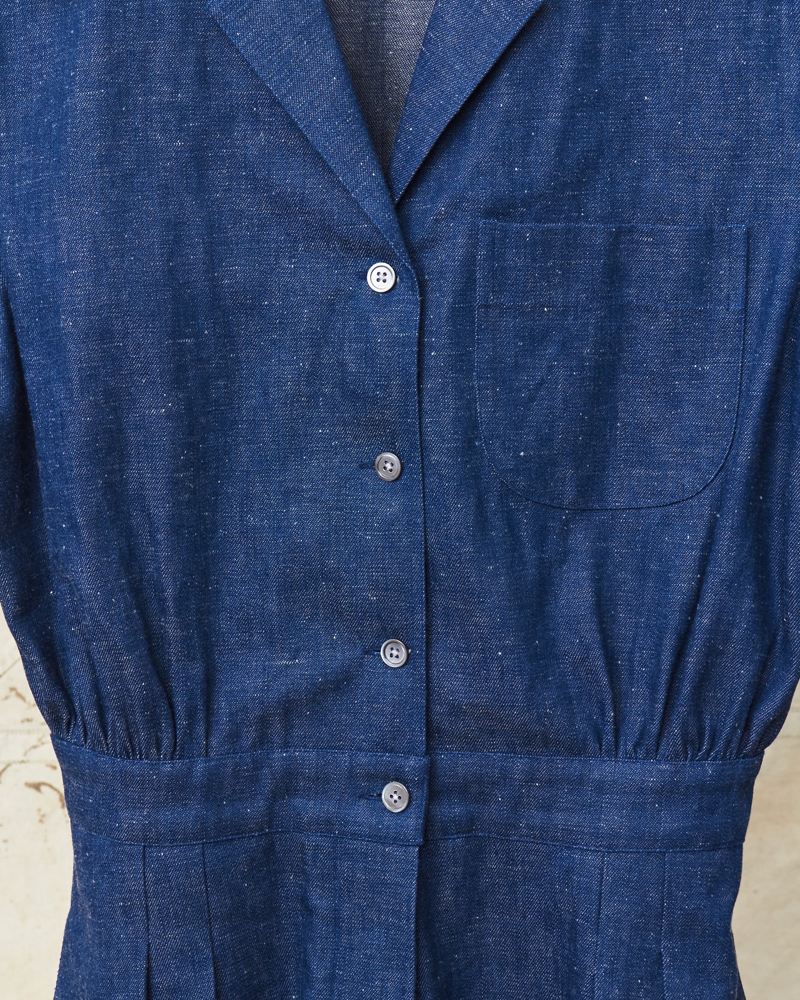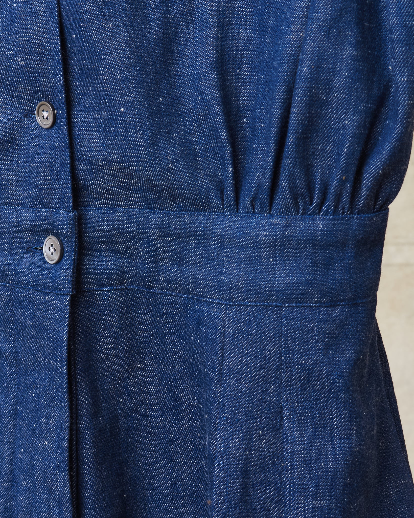 This is a Jumpsuit that is part of Bryceland's women's wear line called The Emmeline. We ordered a few of this amazing piece of garment and it does not disappoint. It is made out of 100% cotton Jelt Denim, the fabric has a beautiful texture and it has a nice slub to it. With wear this fabric will keep getting more and more beauty.