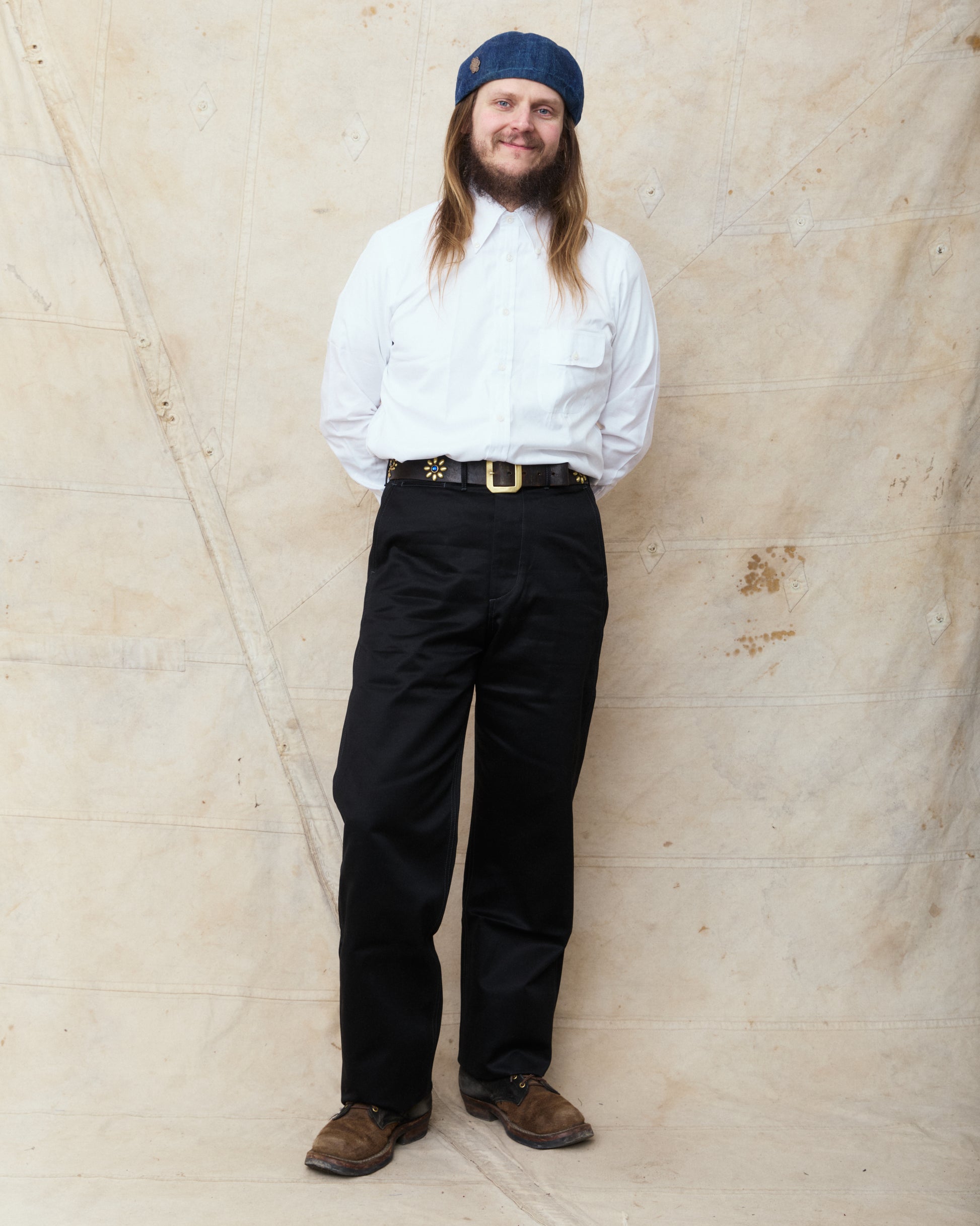 Douglas is 180 cm tall, weigh 85 kilos and wears a size 16. Combining the shirt with pair of Buzz Rickson's William Gibson Chinos, and a pair of White's Semi Dress boots.