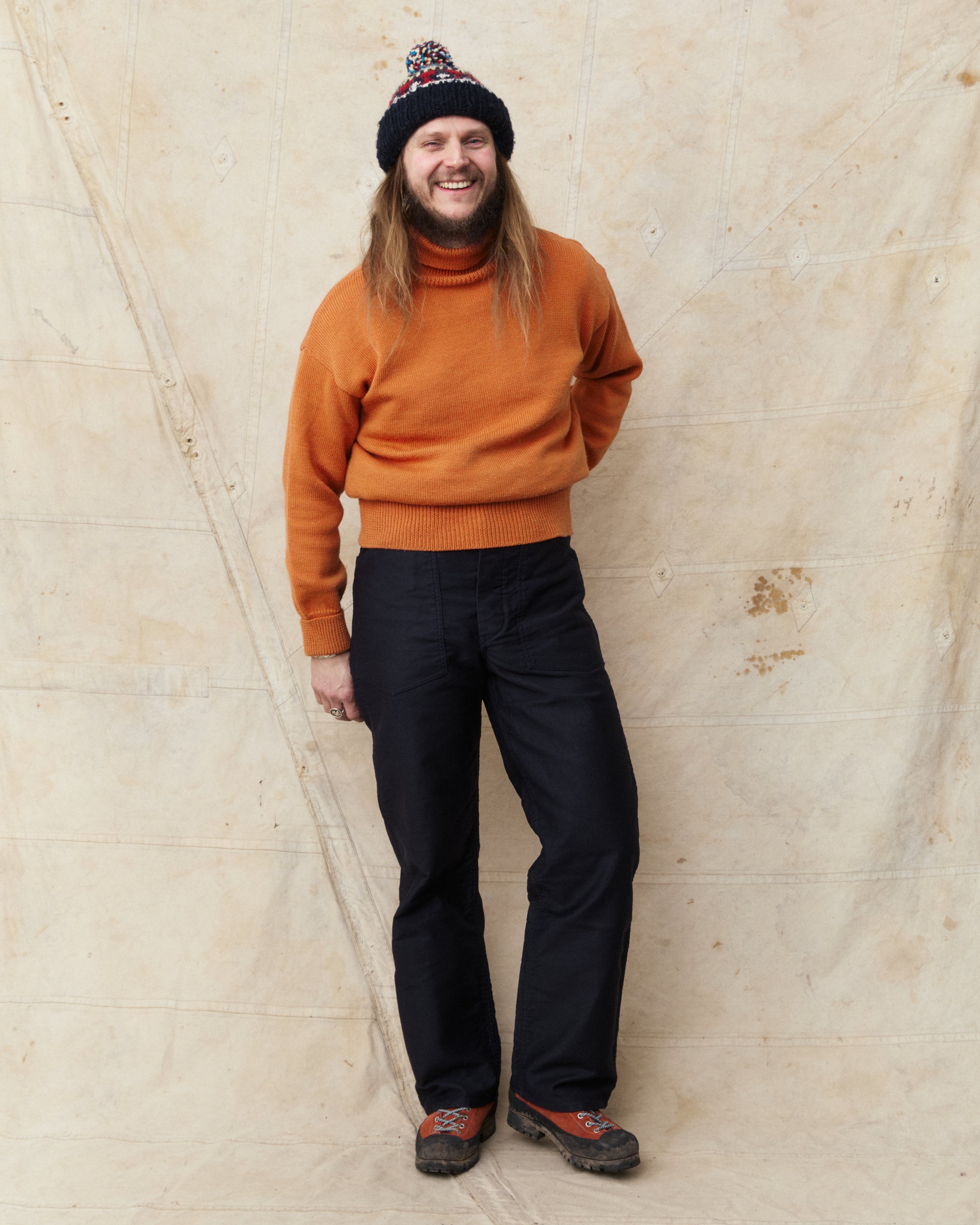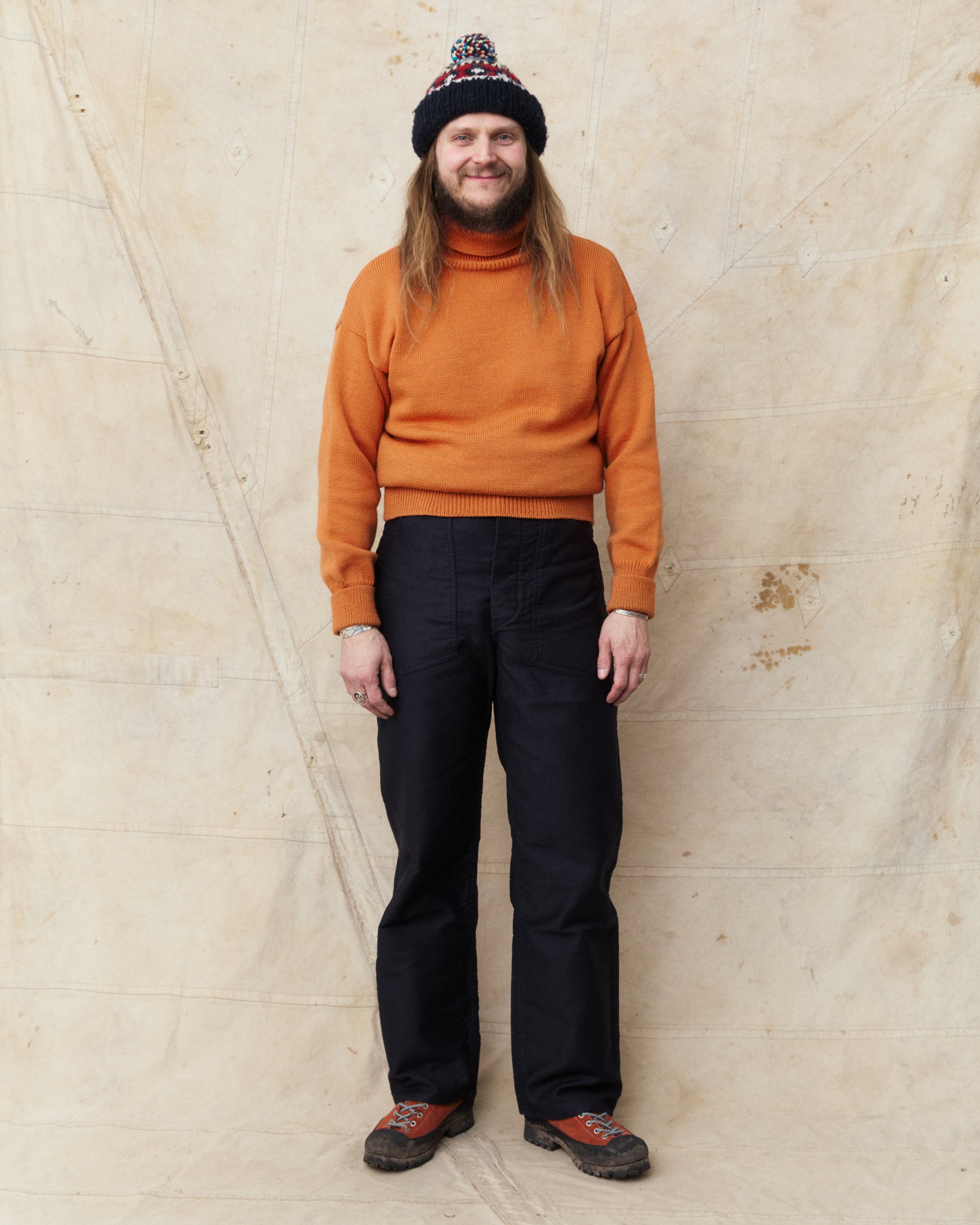 Douglas is 180 cm tall, weigh 85 kilos and wears a size W 34. Combining the pants with a North Sea Clothing Submariner Jumper, and a pair of Big Rock Candy Mountaineering El Cap Suede Boots.