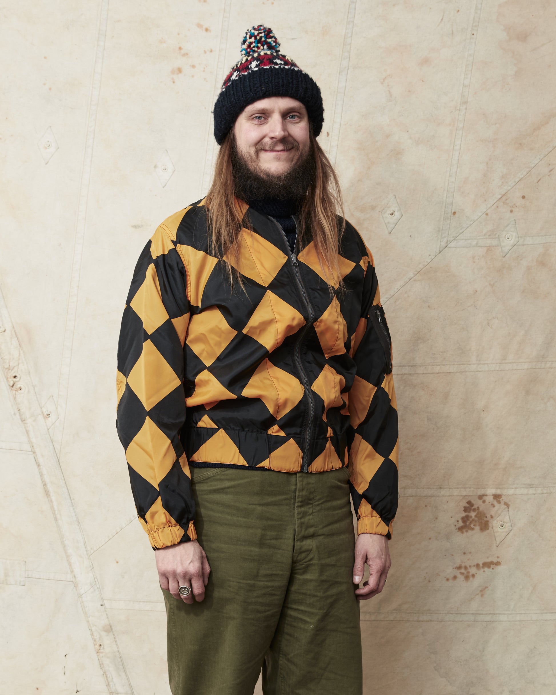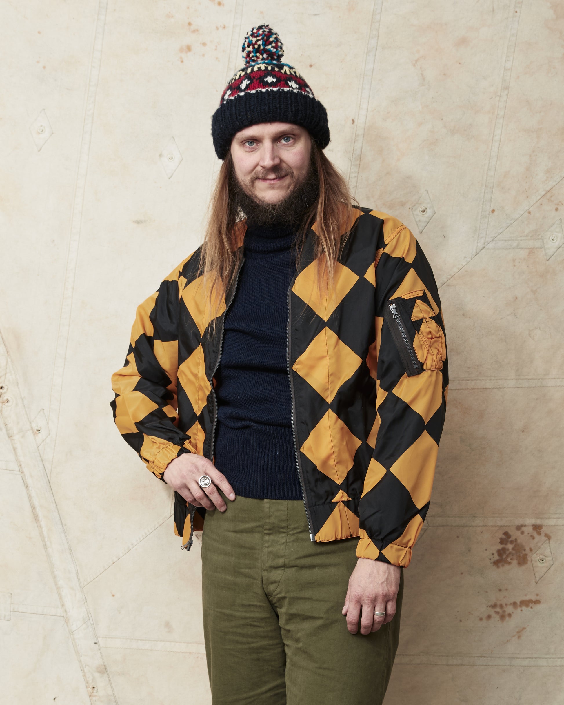 Douglas is 180 cm long with a weigh of 85 kilos and wears a size L. Combining the jacket with a pair of Orslow Herringbone Trousers, White's Semi Dress boots and a North Sea Clothing Submariner Sweater.
