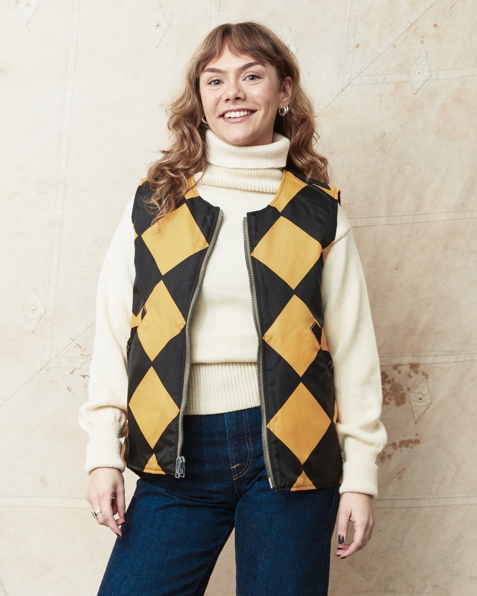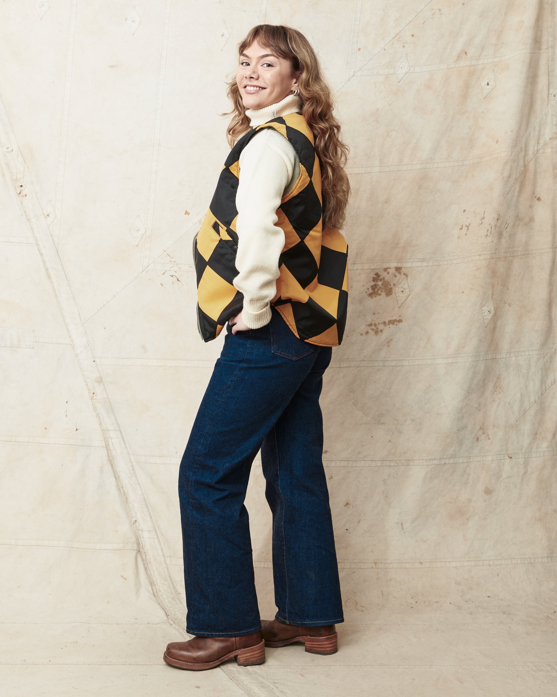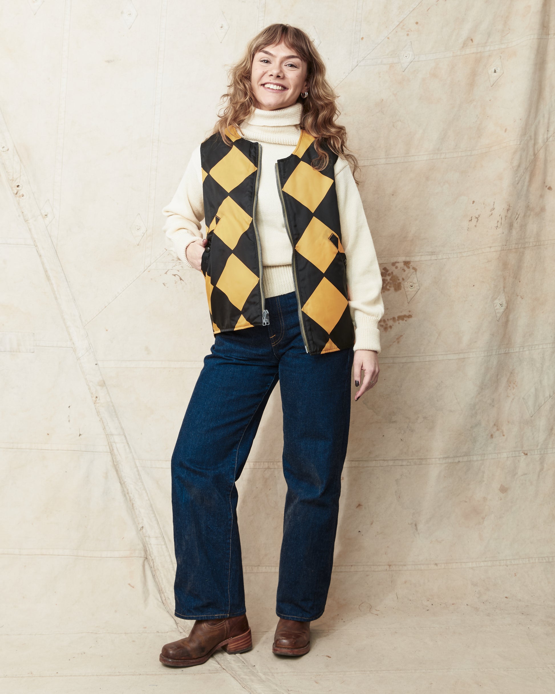 Ebba is 158 cm tall and wears size S. Combining the vest with a pair of, Indigofera Roslyn Jeans and a North Sea Clothing Submariner Sweater.