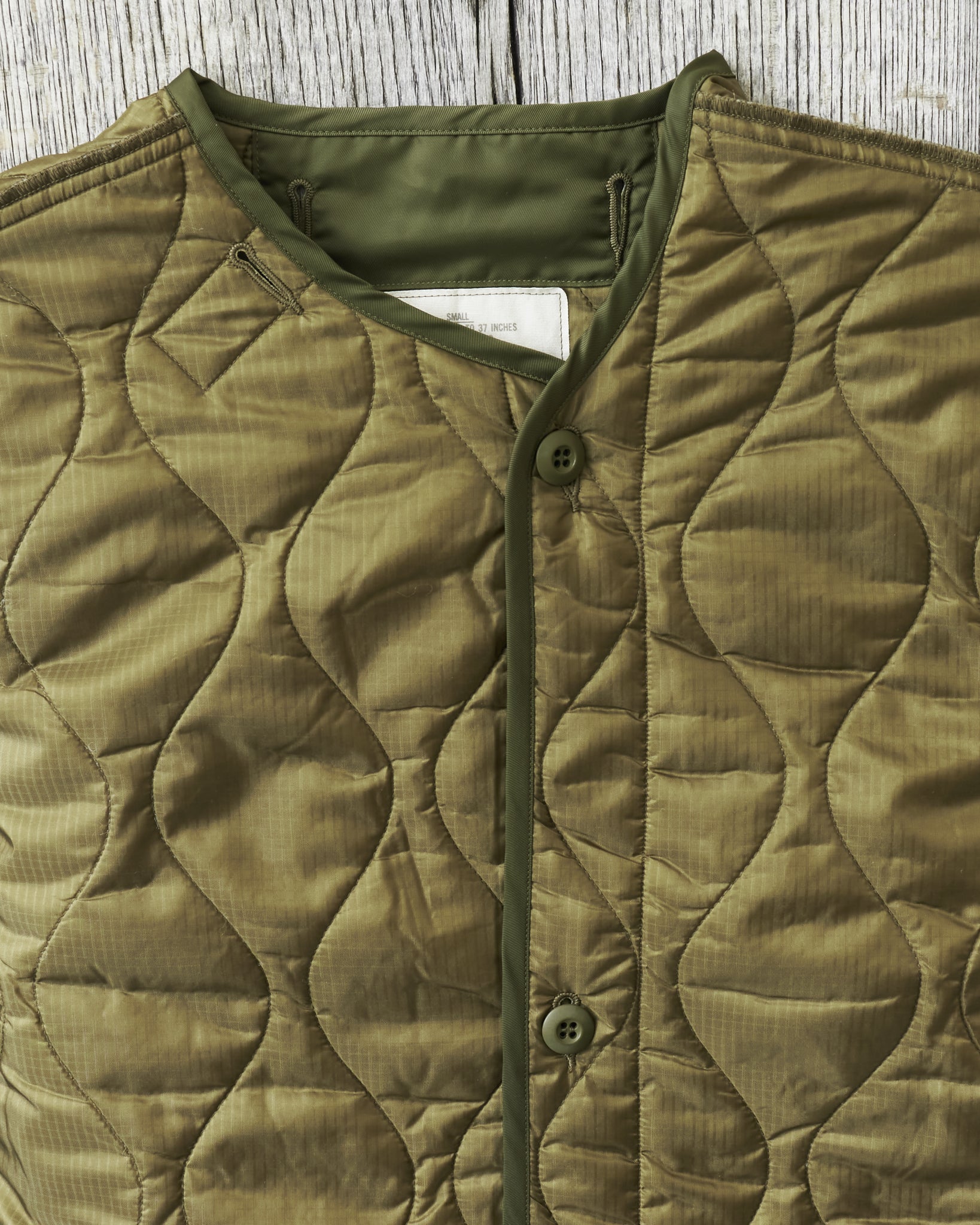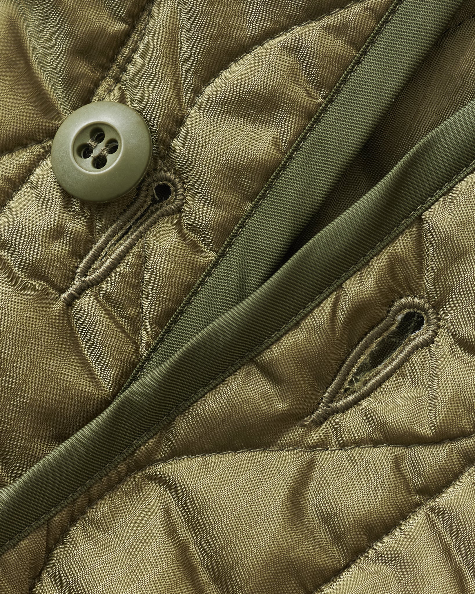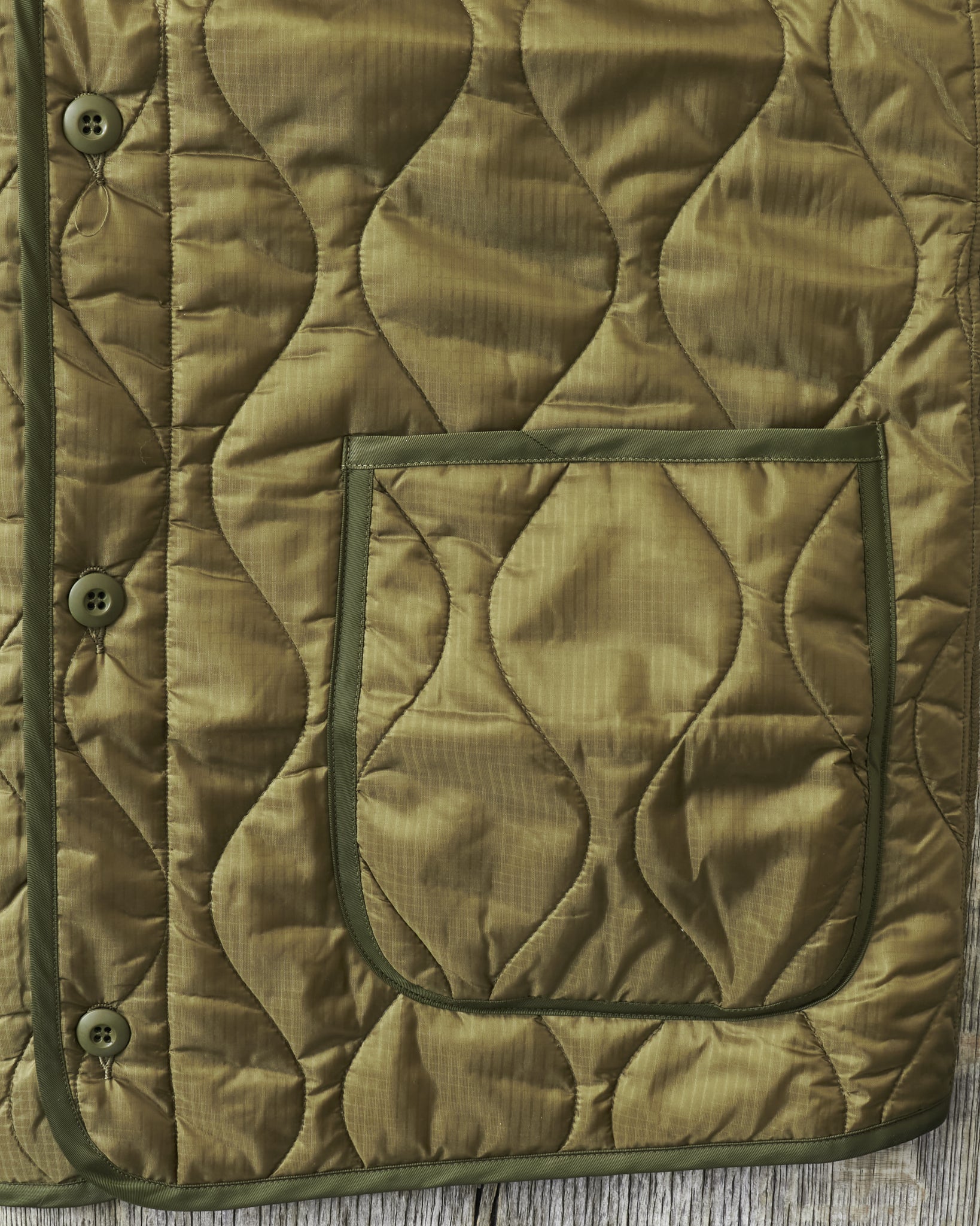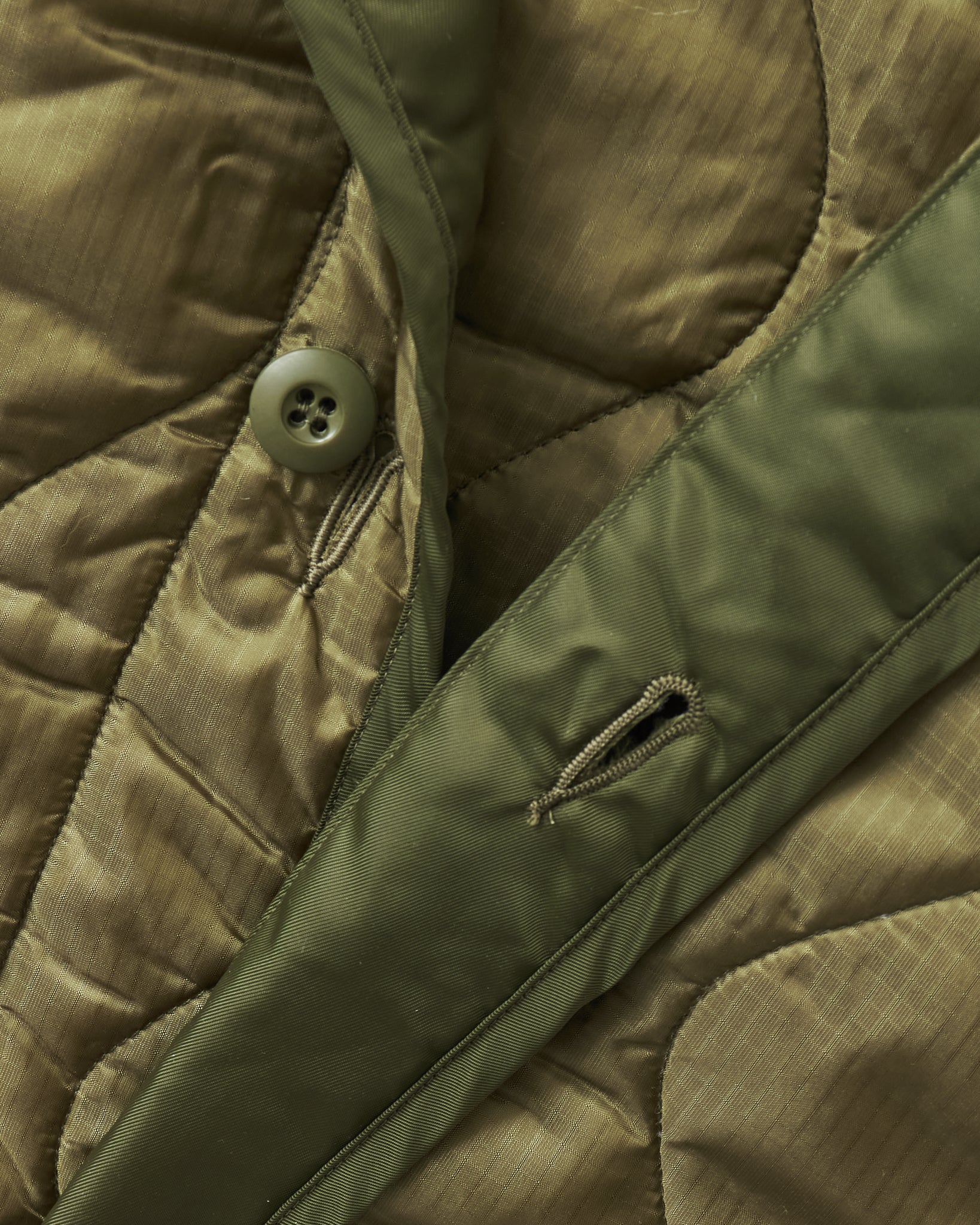 When the M-65 fishtail parka was introduced, a removable liner was also introduced to make the jacket more suitable for colder weather. This version, as same as the original ones, are made in nylon and quilted with polyester padding to prevent the padding from moving around. These liners were not intended to be worn on its own, however, Buzz Rickson's makes these with a button close and two front pockets. Wear it as a liner or a jacket, style it anyway you like!
