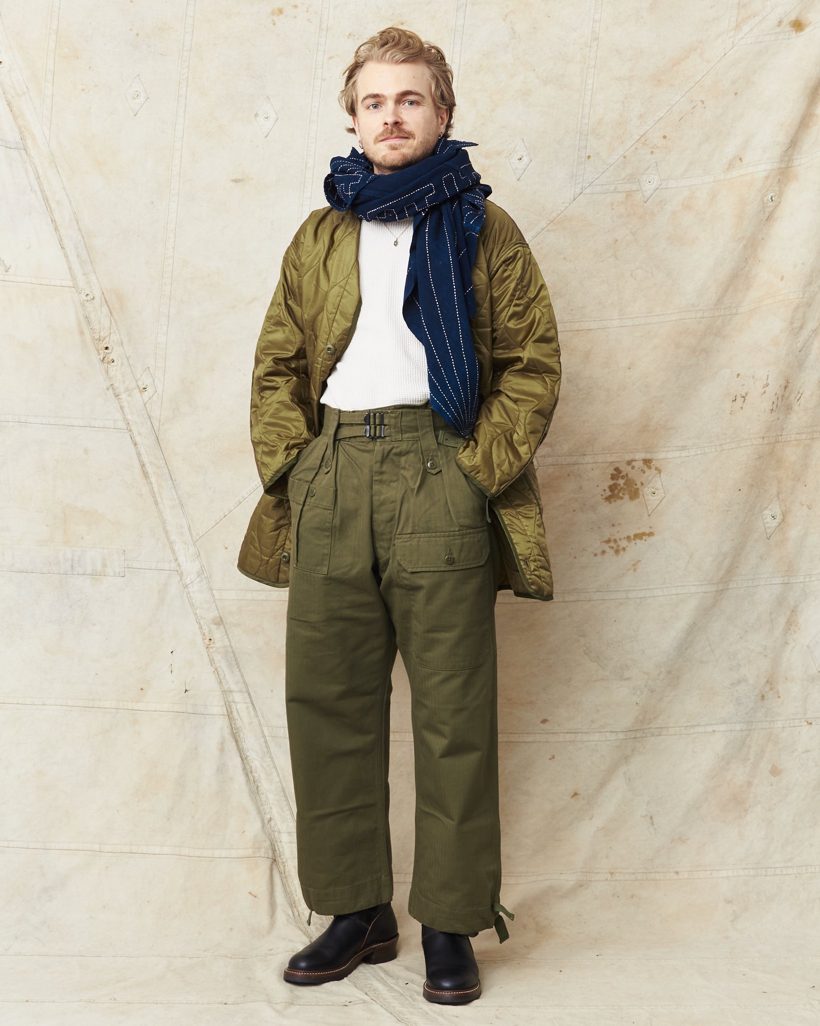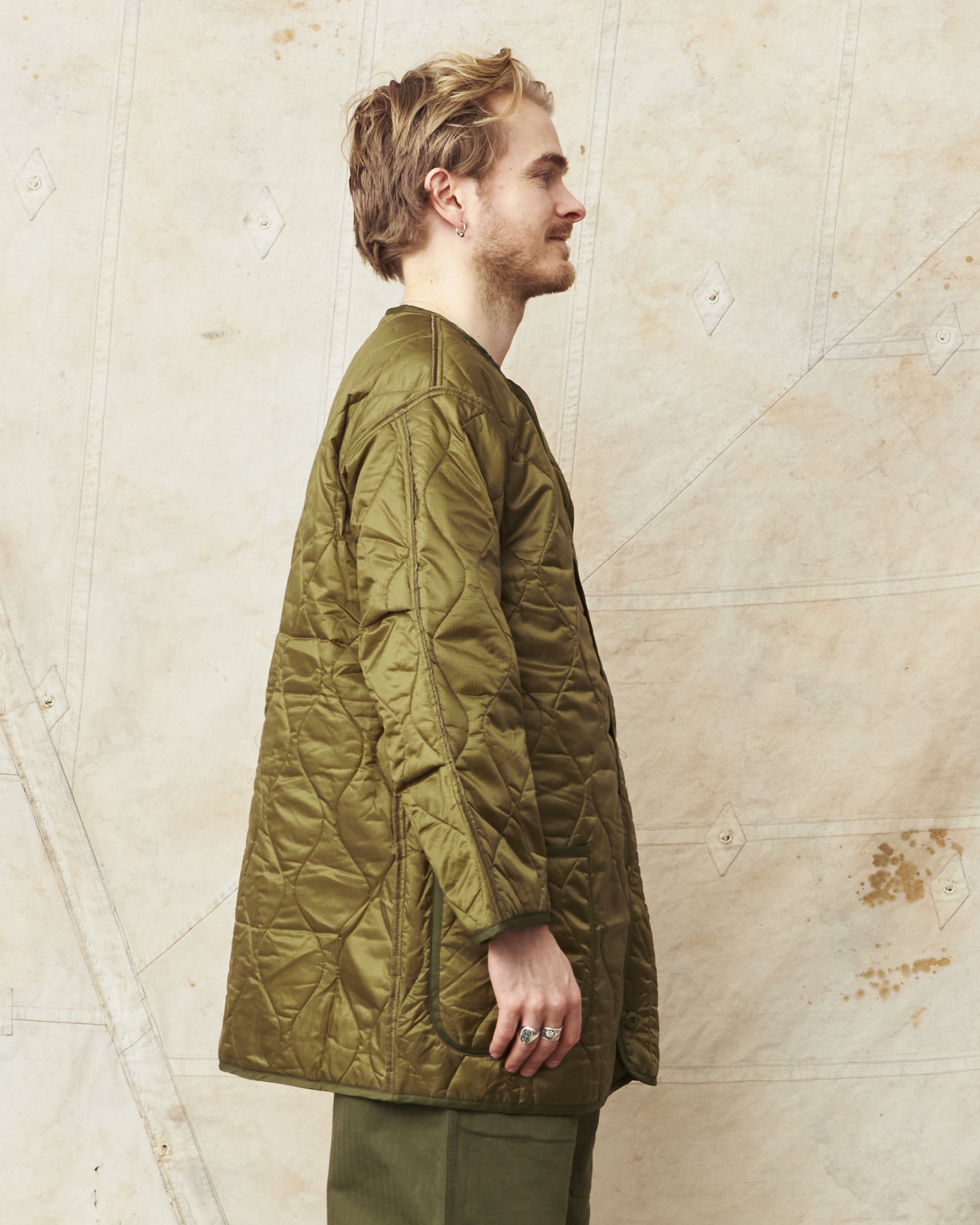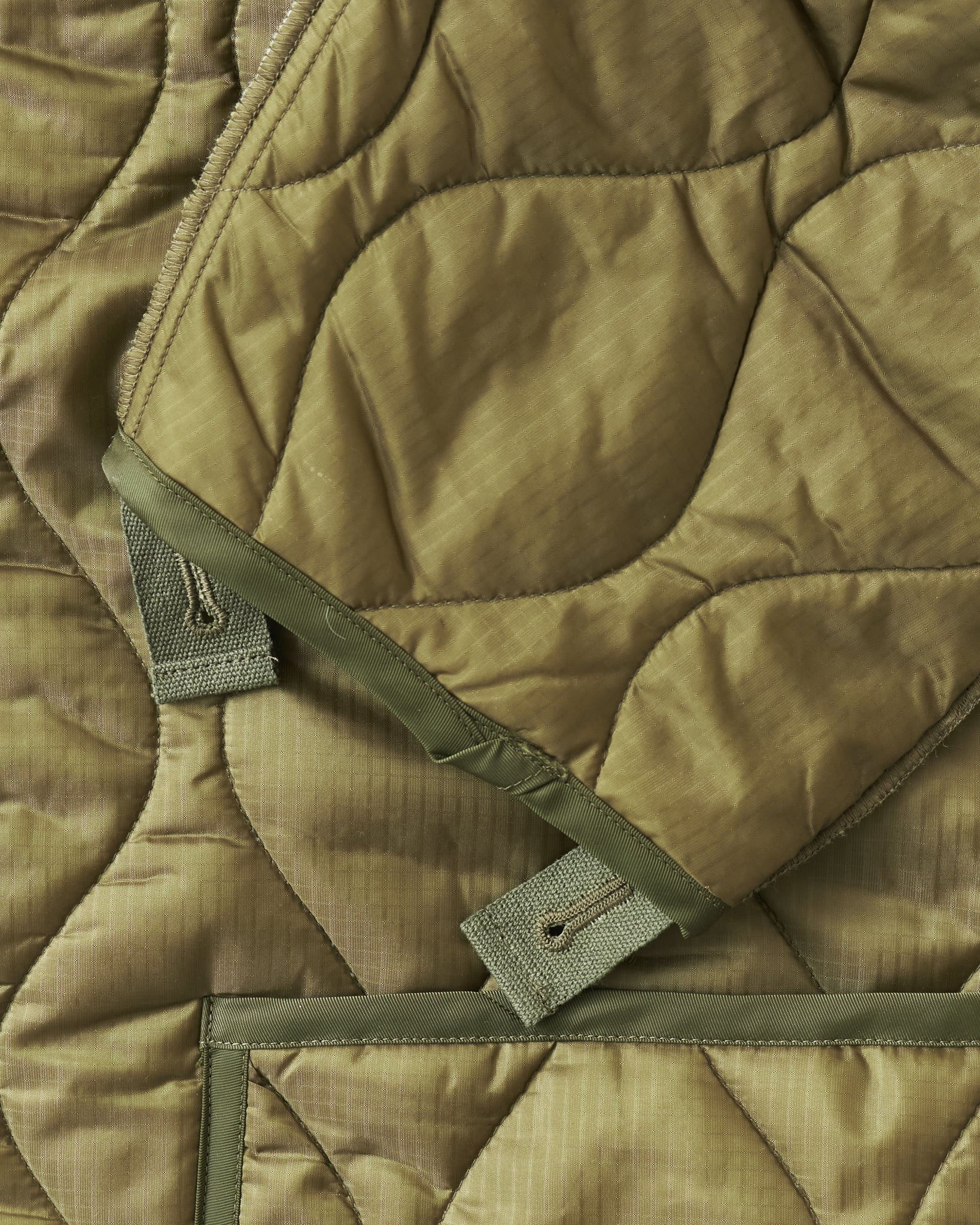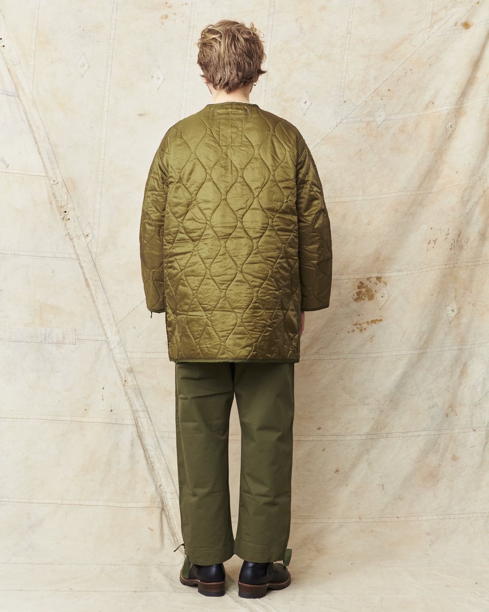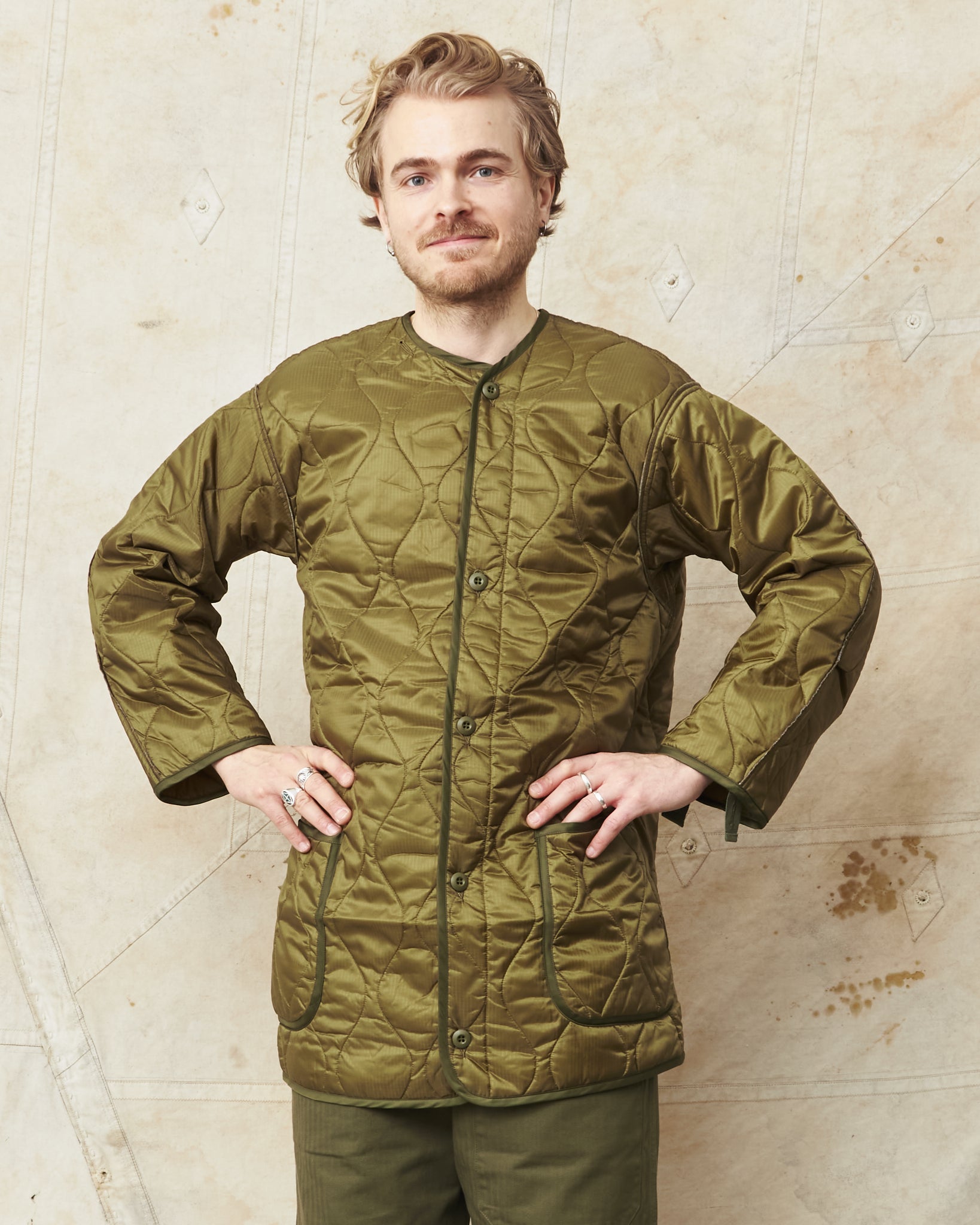 When the M-65 fishtail parka was introduced, a removable liner was also introduced to make the jacket more suitable for colder weather. This version, as same as the original ones, are made in nylon and quilted with polyester padding to prevent the padding from moving around. These liners were not intended to be worn on its own, however, Buzz Rickson's makes these with a button close and two front pockets. Wear it as a liner or a jacket, style it anyway you like!