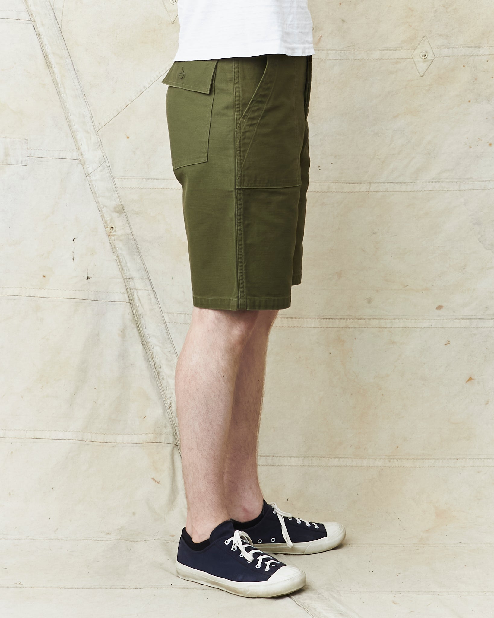 These shorts from Buzz Rickson's is a reproduction of the classic OG 107 field pants but modified into a shorts version. The fabric is a sturdy cotton sateen reproduced as to the standard that was used in these pants back in the 60s. The shorts have two large back pockets, two front patch pockets and side adjusters at each side of the hips. With its high waist and its width in the legs it makes them the perfect pair of shorts for warm summer days!