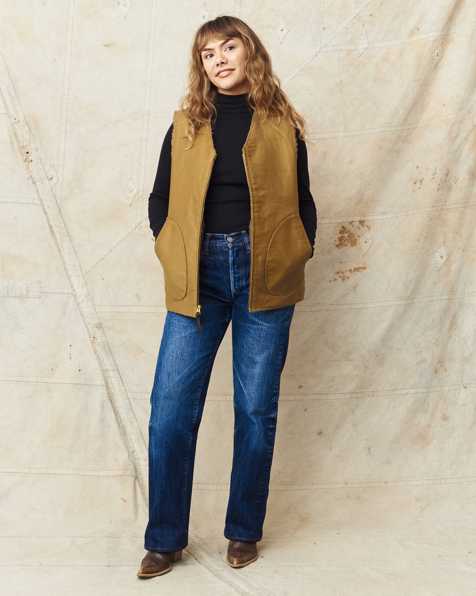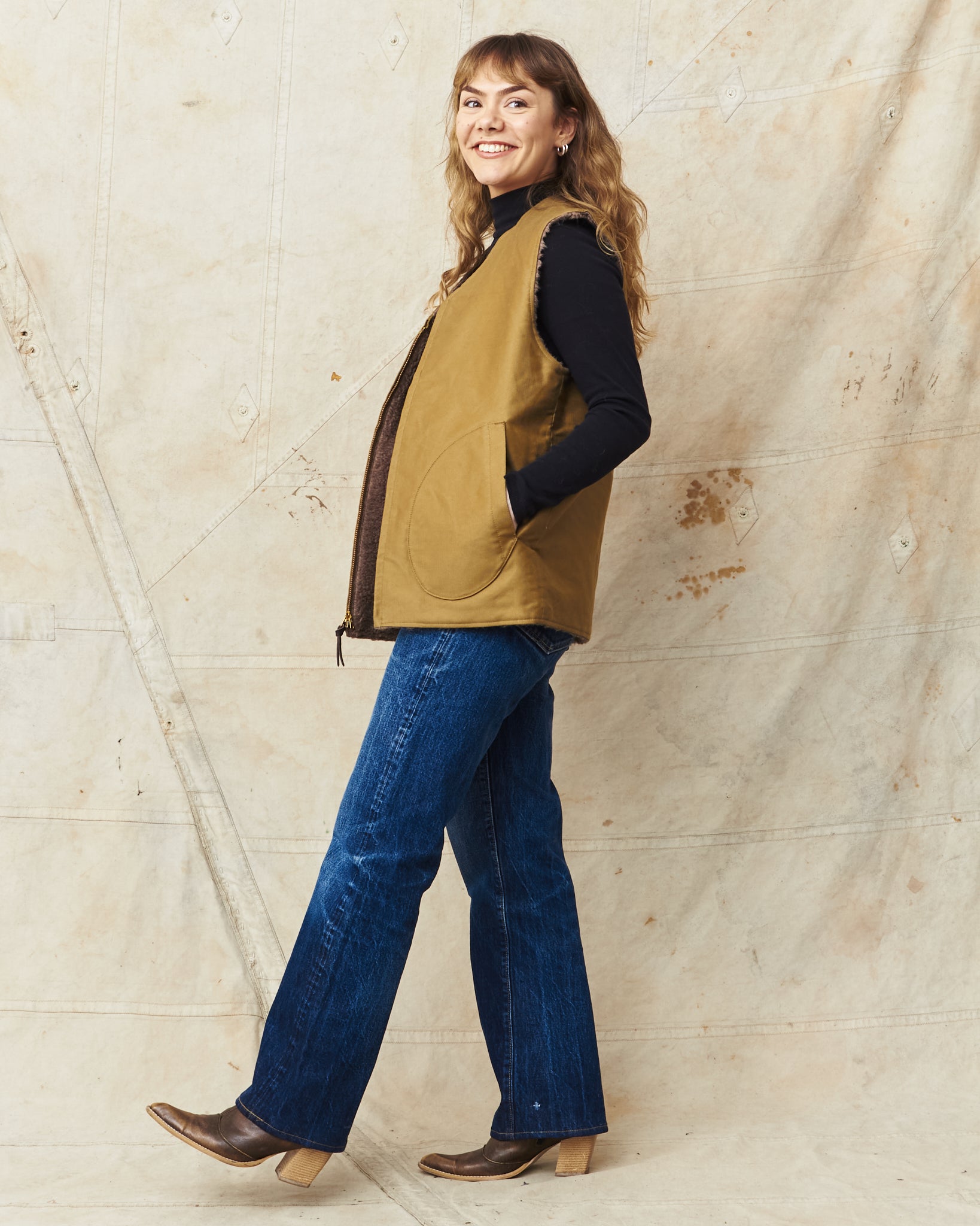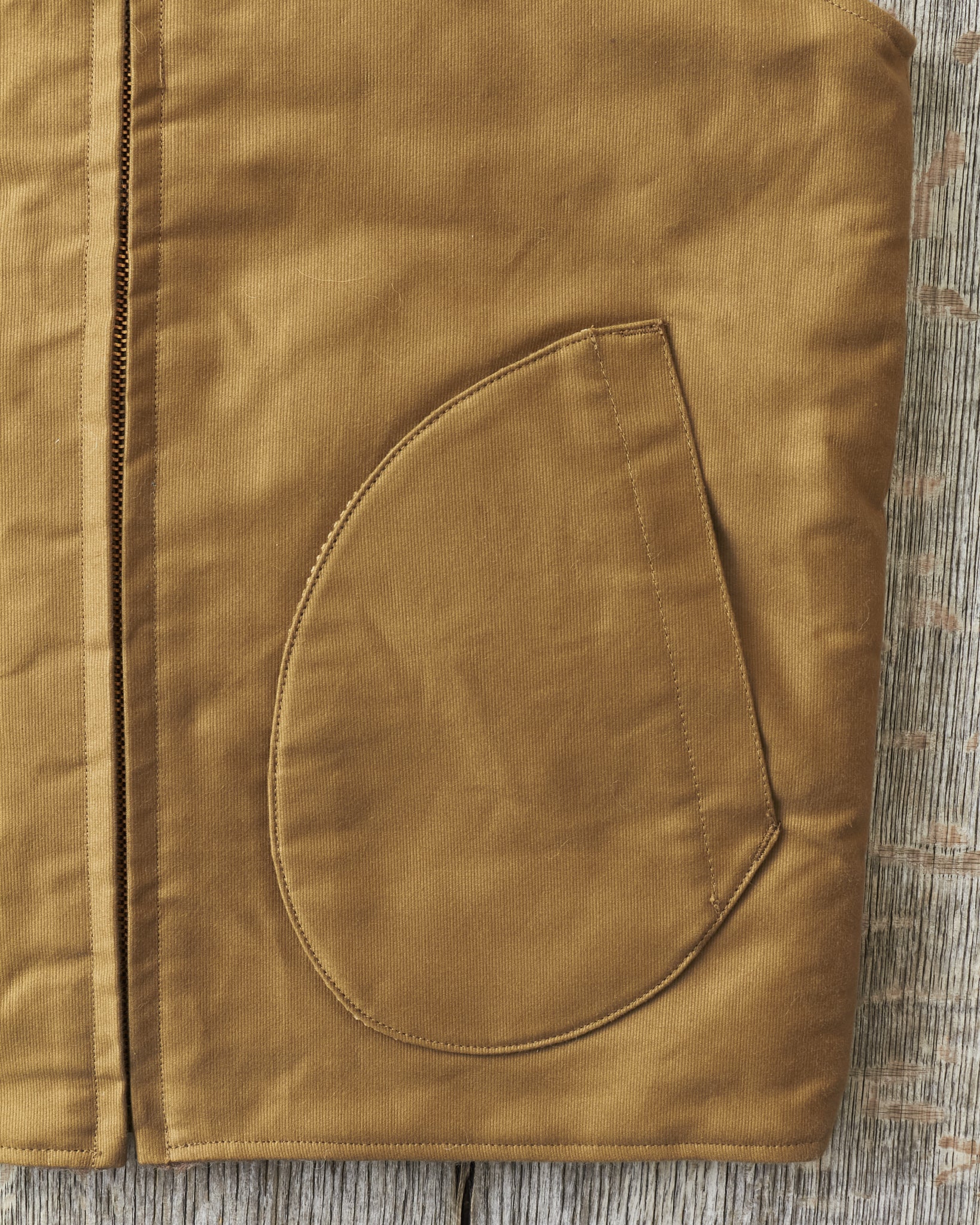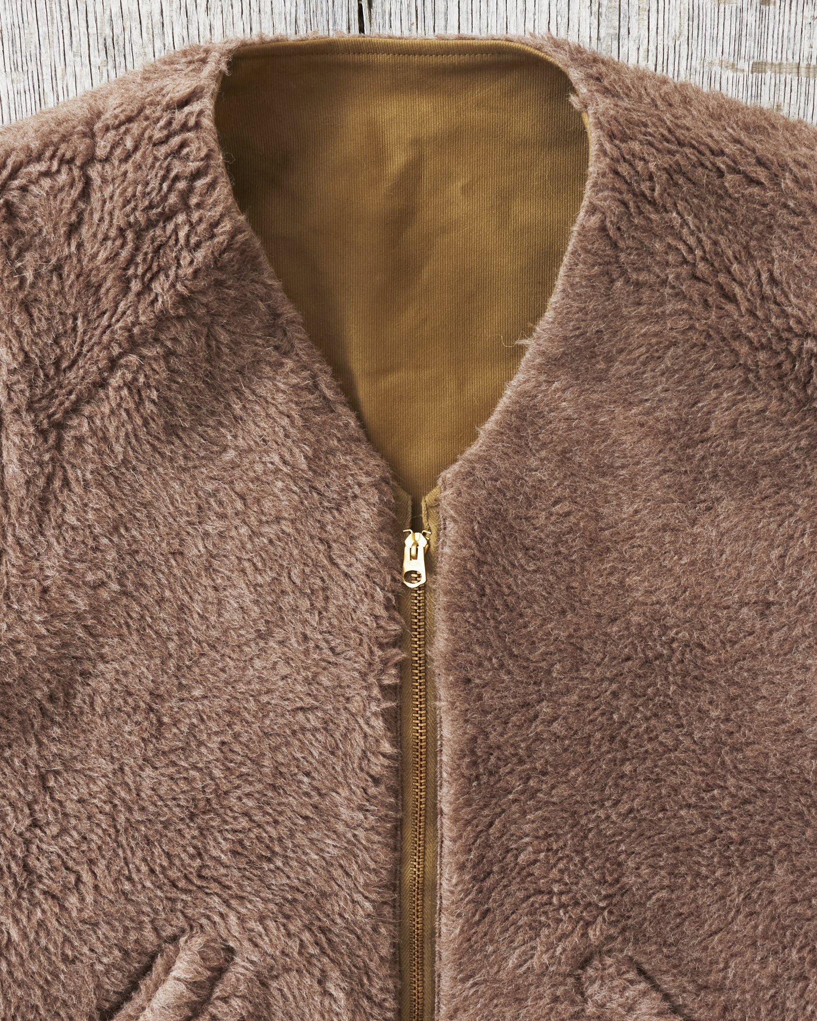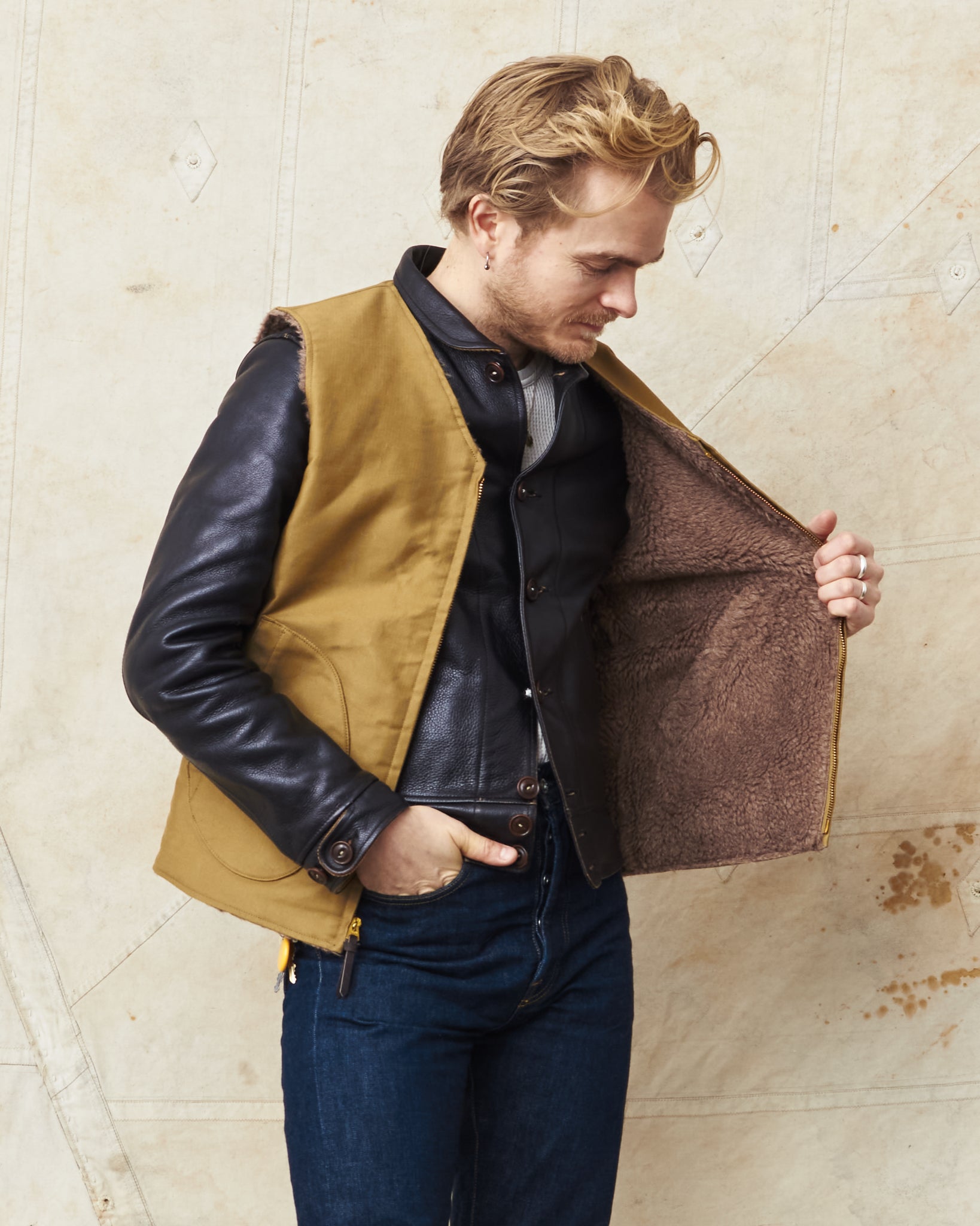 This vest was worn by deck crew in the 1940s. Soldiers on deck exposed to the frigid winds wore this vest as a layered vest to protect themselves from the cold. This vest is an original from Buzz Rickson's that can be worn reversibly, so you can wear it over a thin jacket or leather jacket to keep warm and enjoy your thinner jackets during colder seasons. Both sides comes with two front pockets lined with a sturdy cotton corduroy fabric.