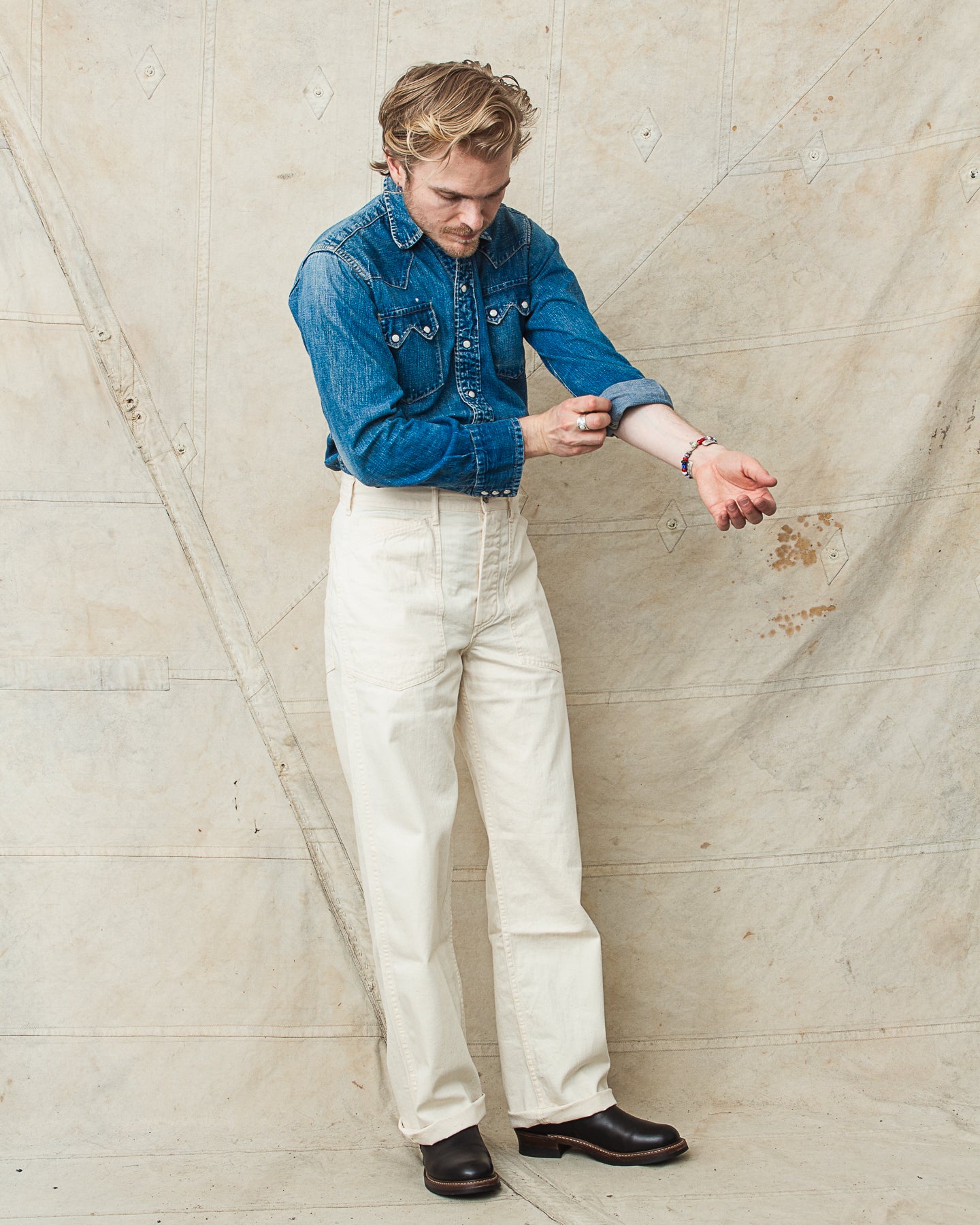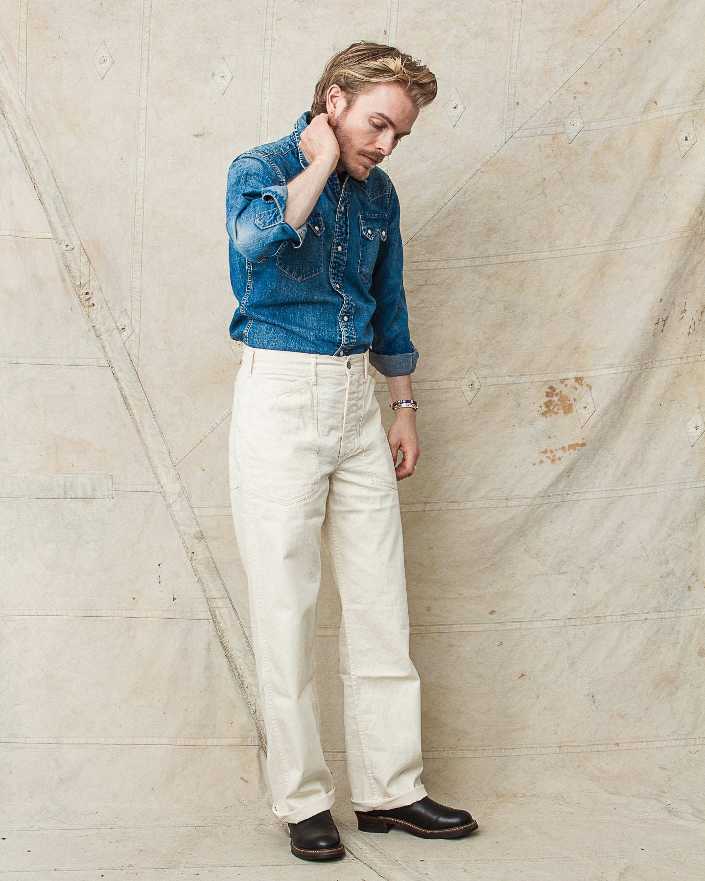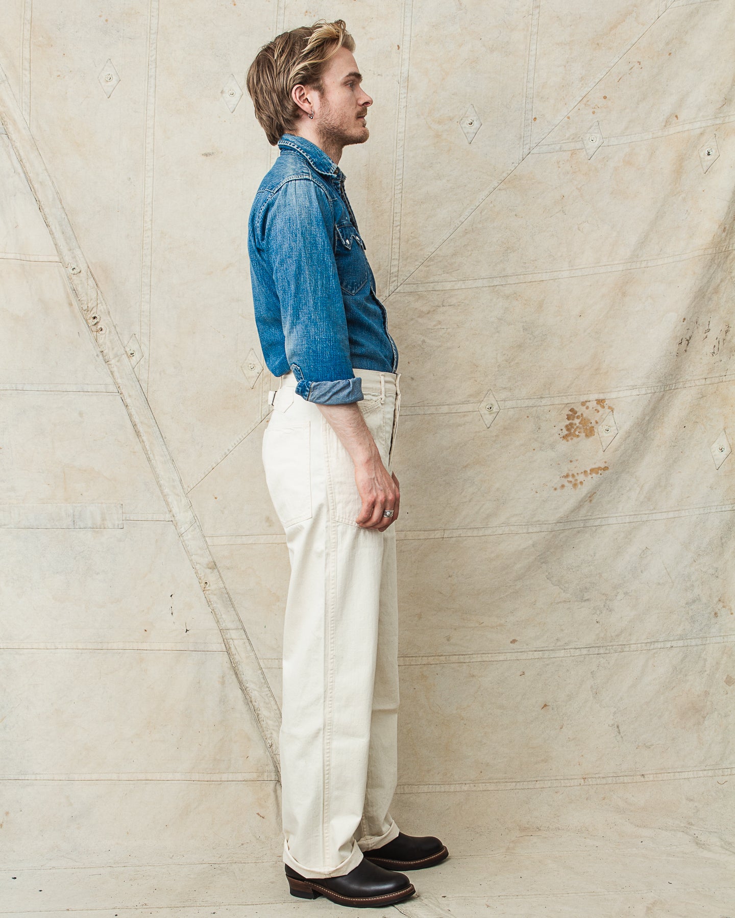 These are Buzz Rickson's reproduction of the pants issued for the US-Army in 1937 as a part of the denim uniform. The original garment came in a 11oz denim fabric, this version however comes in a beautiful and light white cotton twill. Perfect to wear during warm weather.