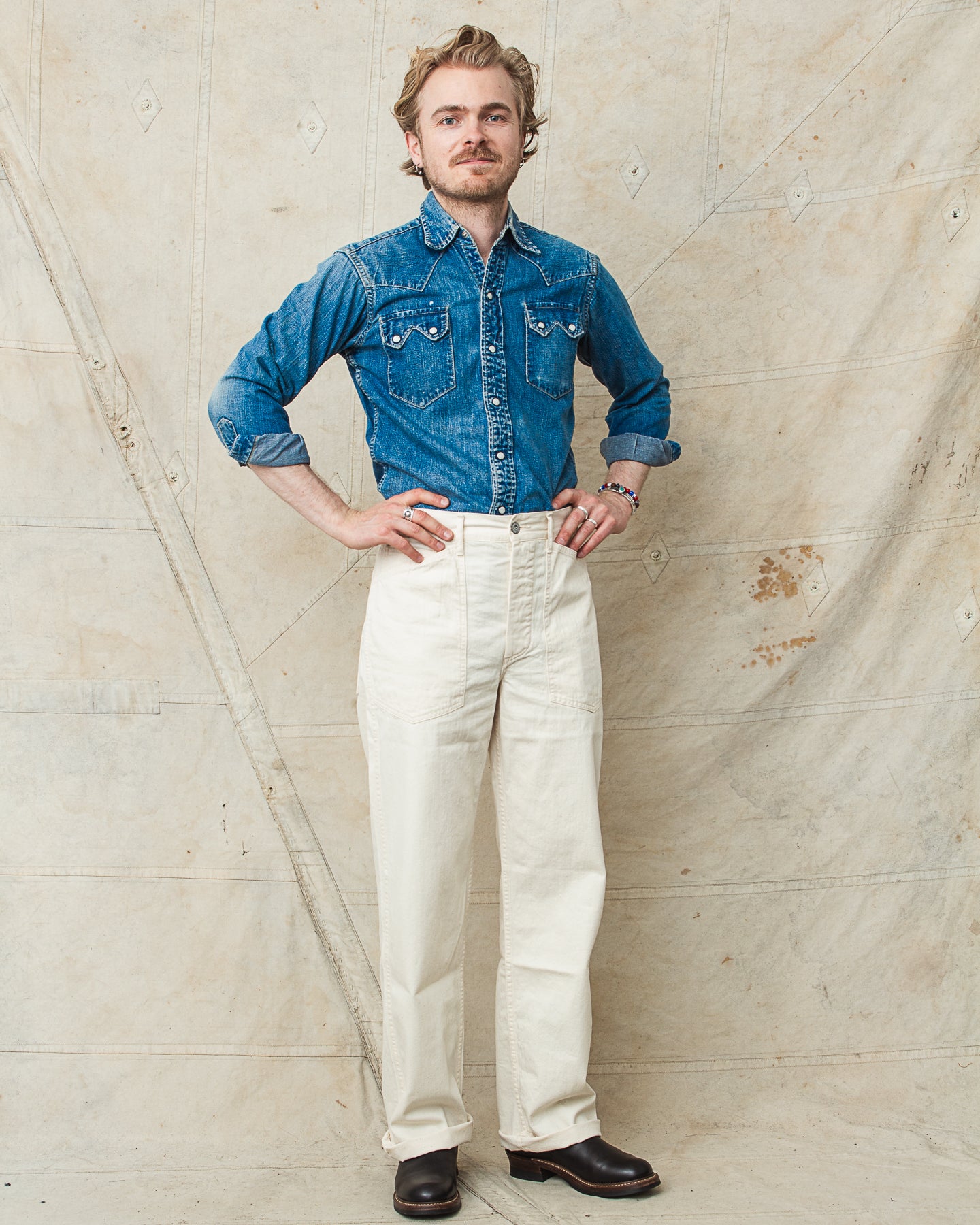- Buzz Rickson's Trousers Working White Twill