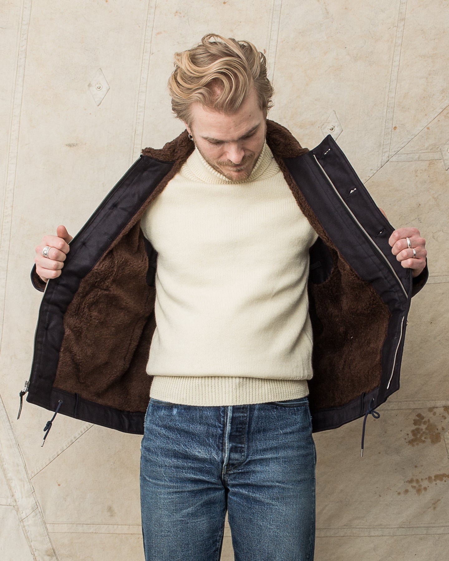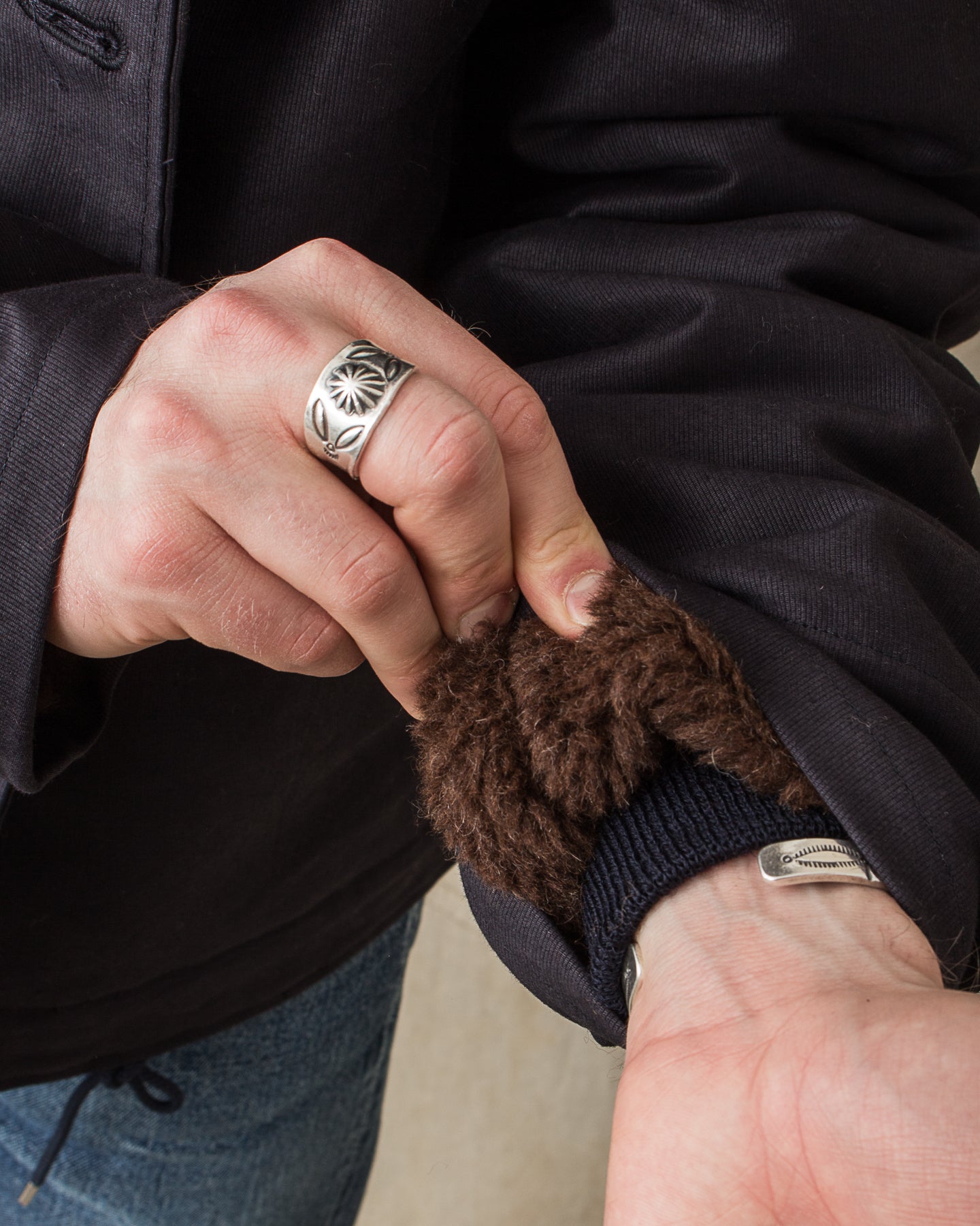 Furthermore, the jacket is also lined with alpaca fleece. Compared with the more commonly used wool fibers from sheep, the alpaca fibre is warmer and more lightweight, two characteristics suitable and sought after when making durable clothing.
