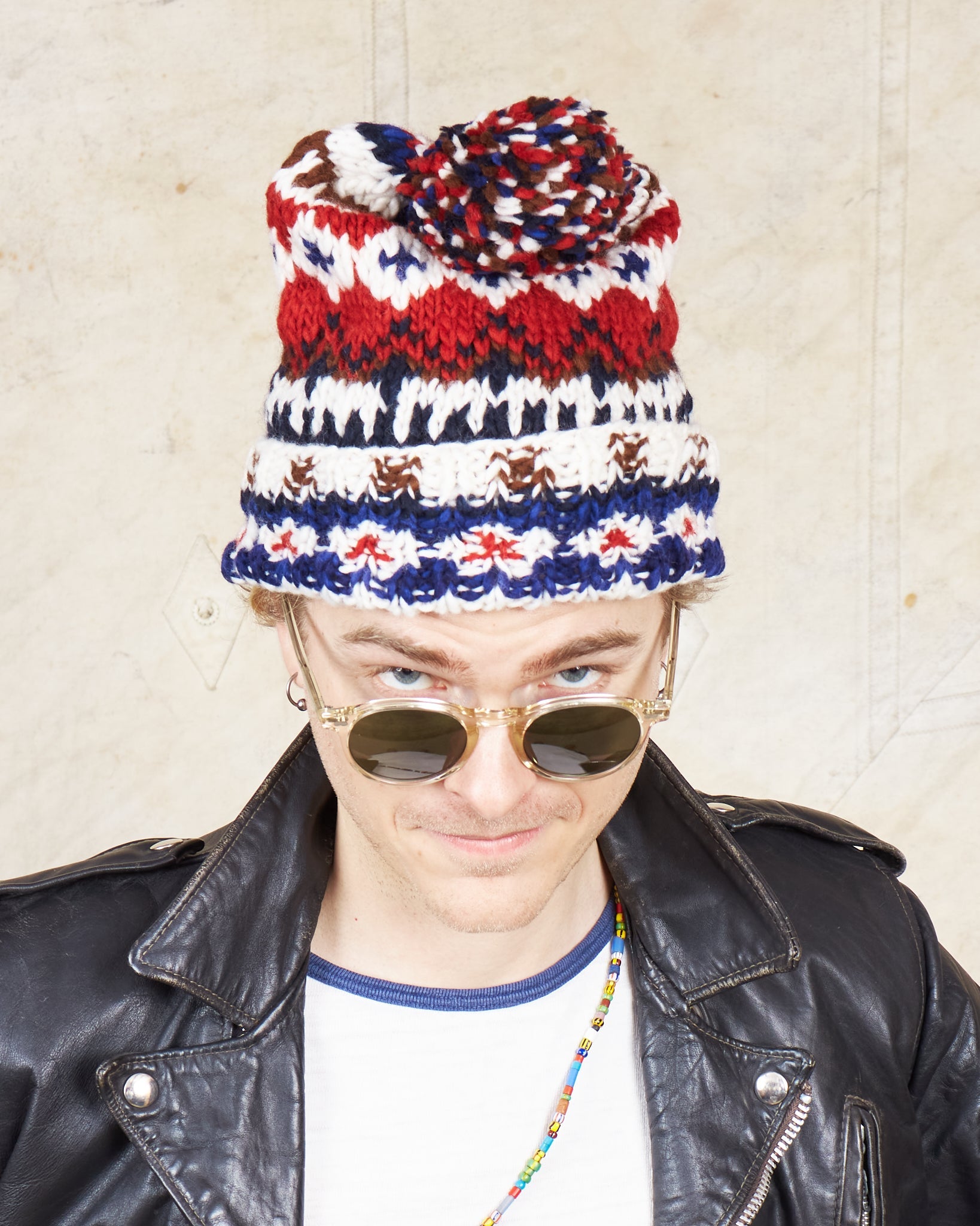 - Chamula Double Cuff Wool Cap Fair Isle Ivory #3