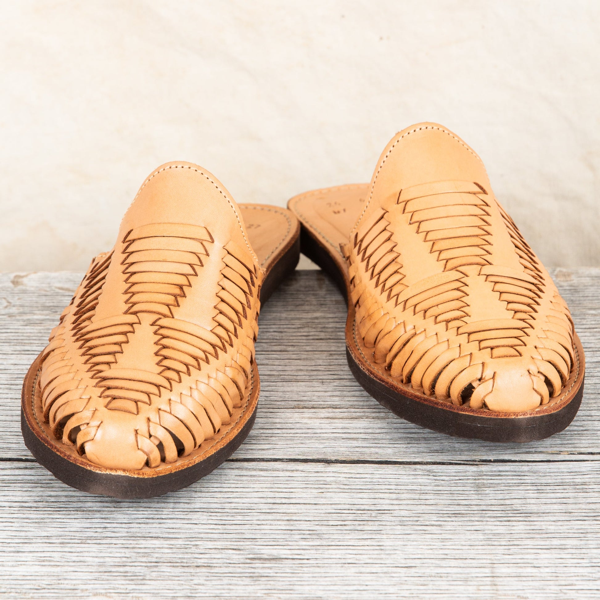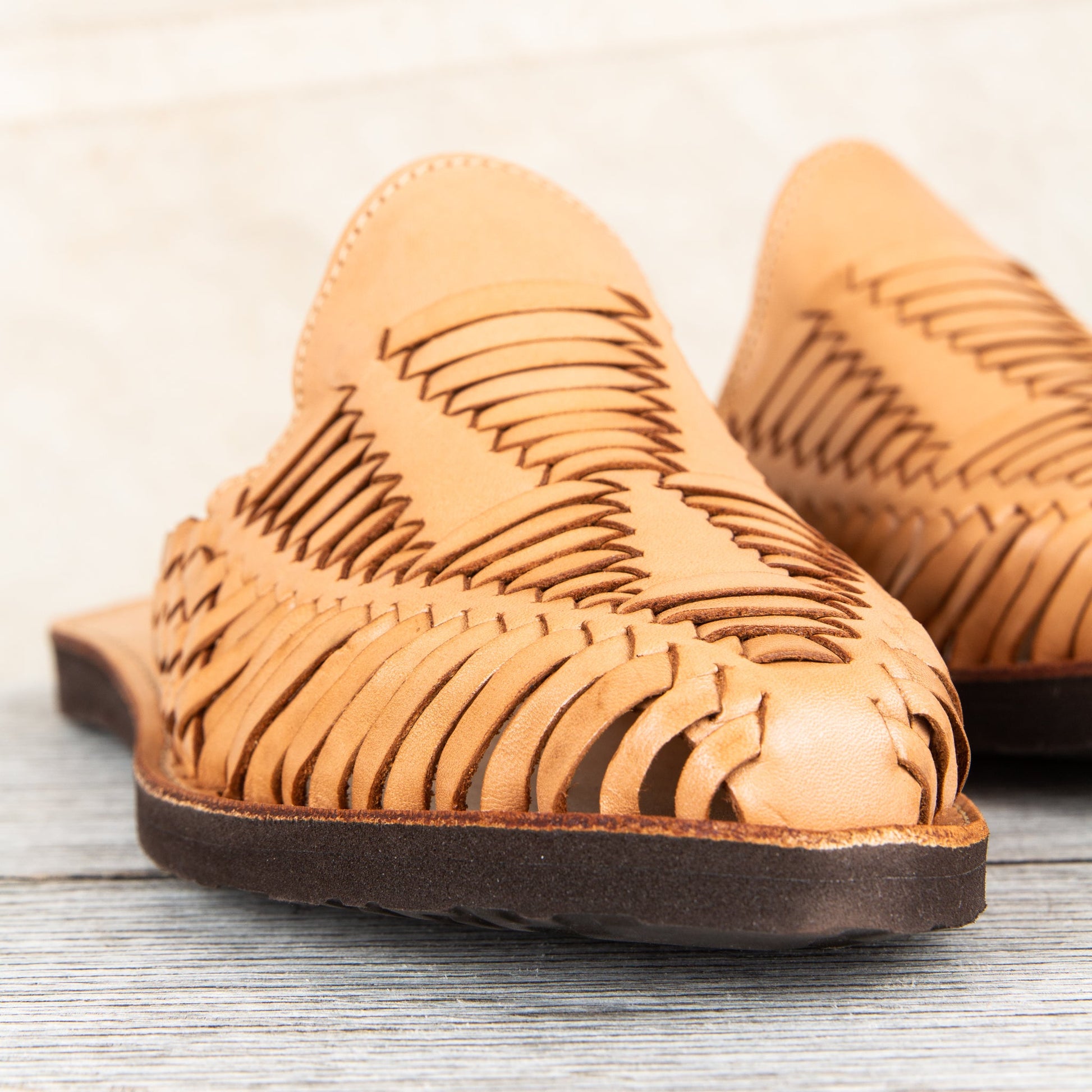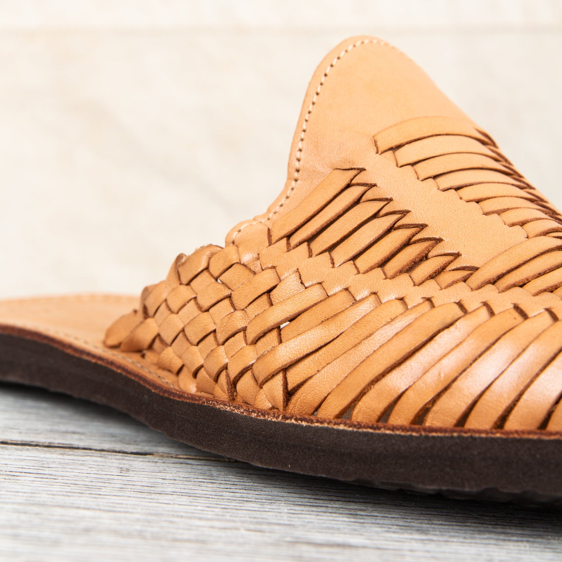 Huarache is the name of a traditional sandal making crafts originating from Mexico, Originally these sandals wear made of all-leather and later designs included woven string soles and occasionally thin wooden soles. Today these shoes are made in a traditional way but with rubber soles for durability. For a Mexican leather sandal to be considered a traditional huaraches they need to be handmade, and have a woven-leather form in the upper.