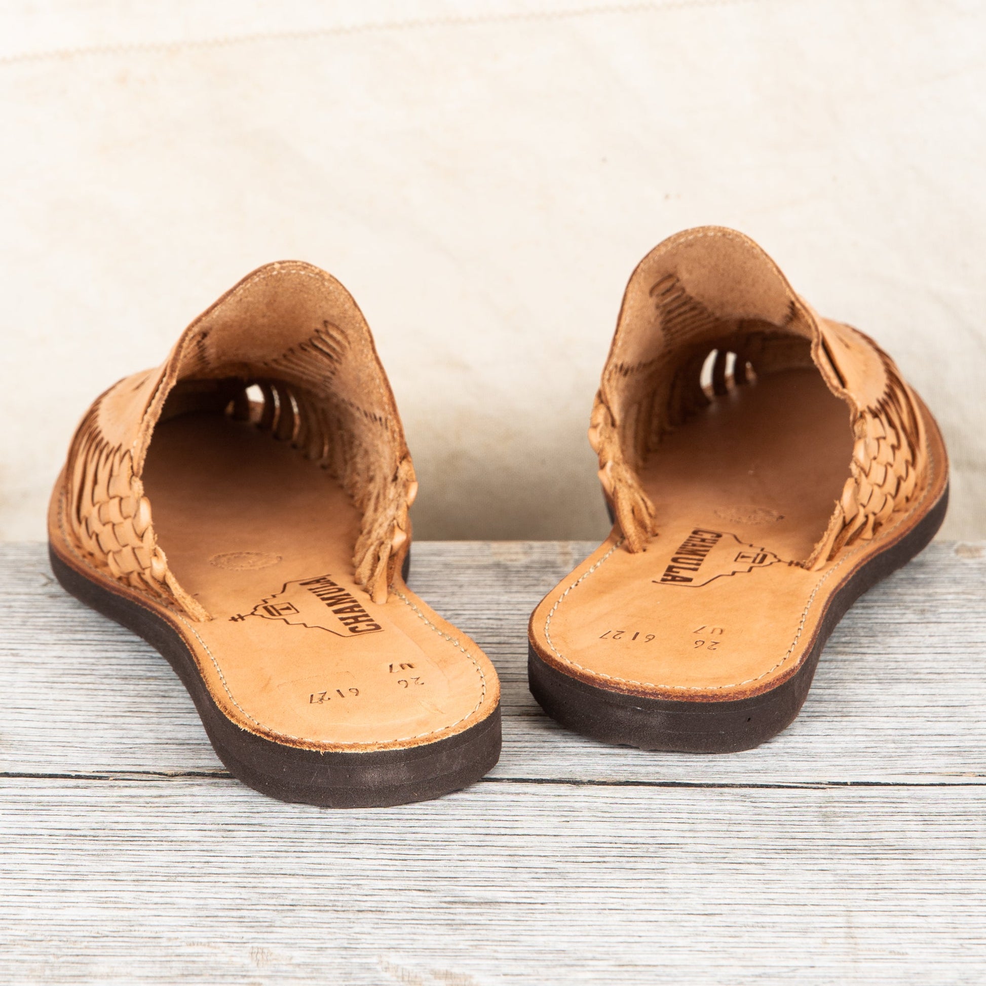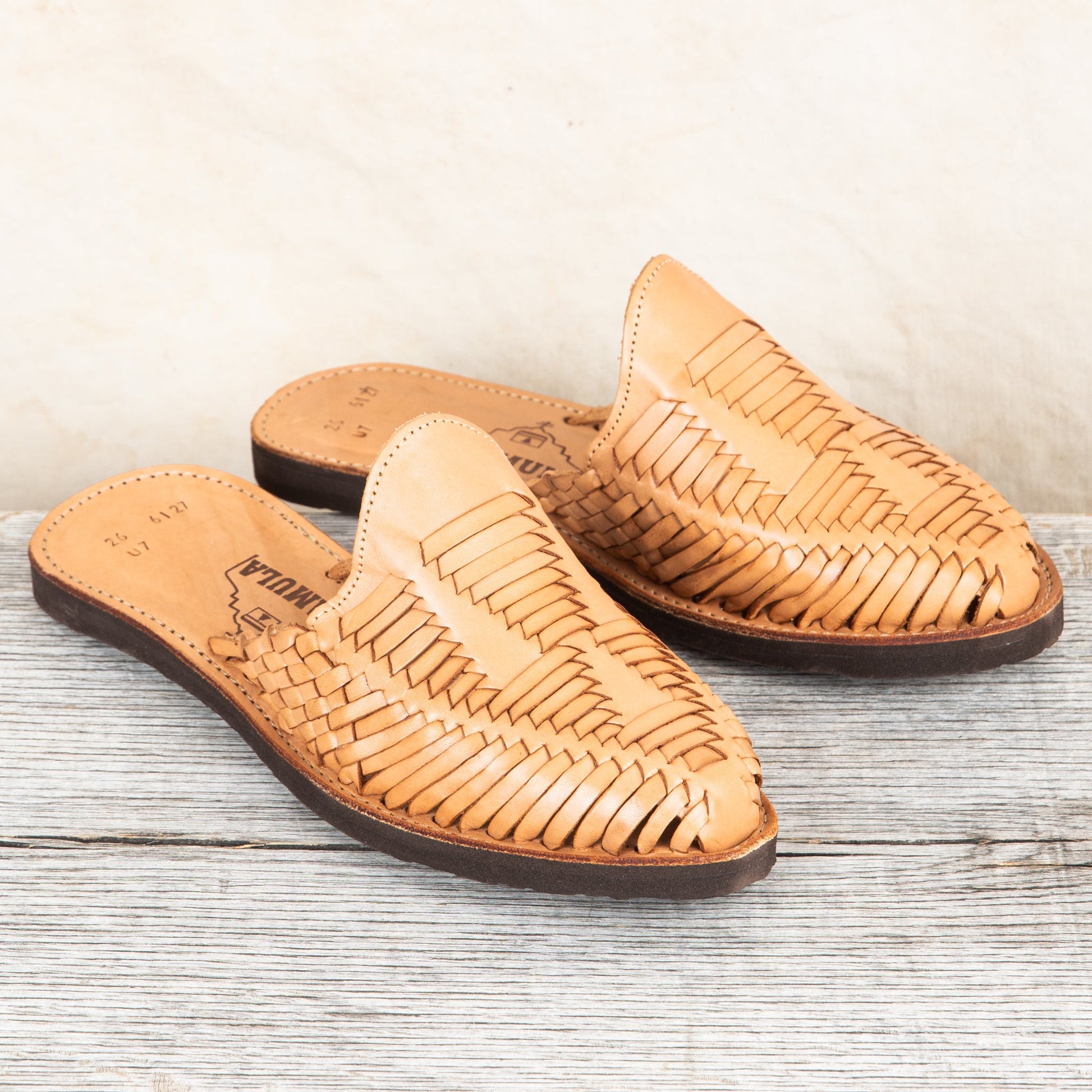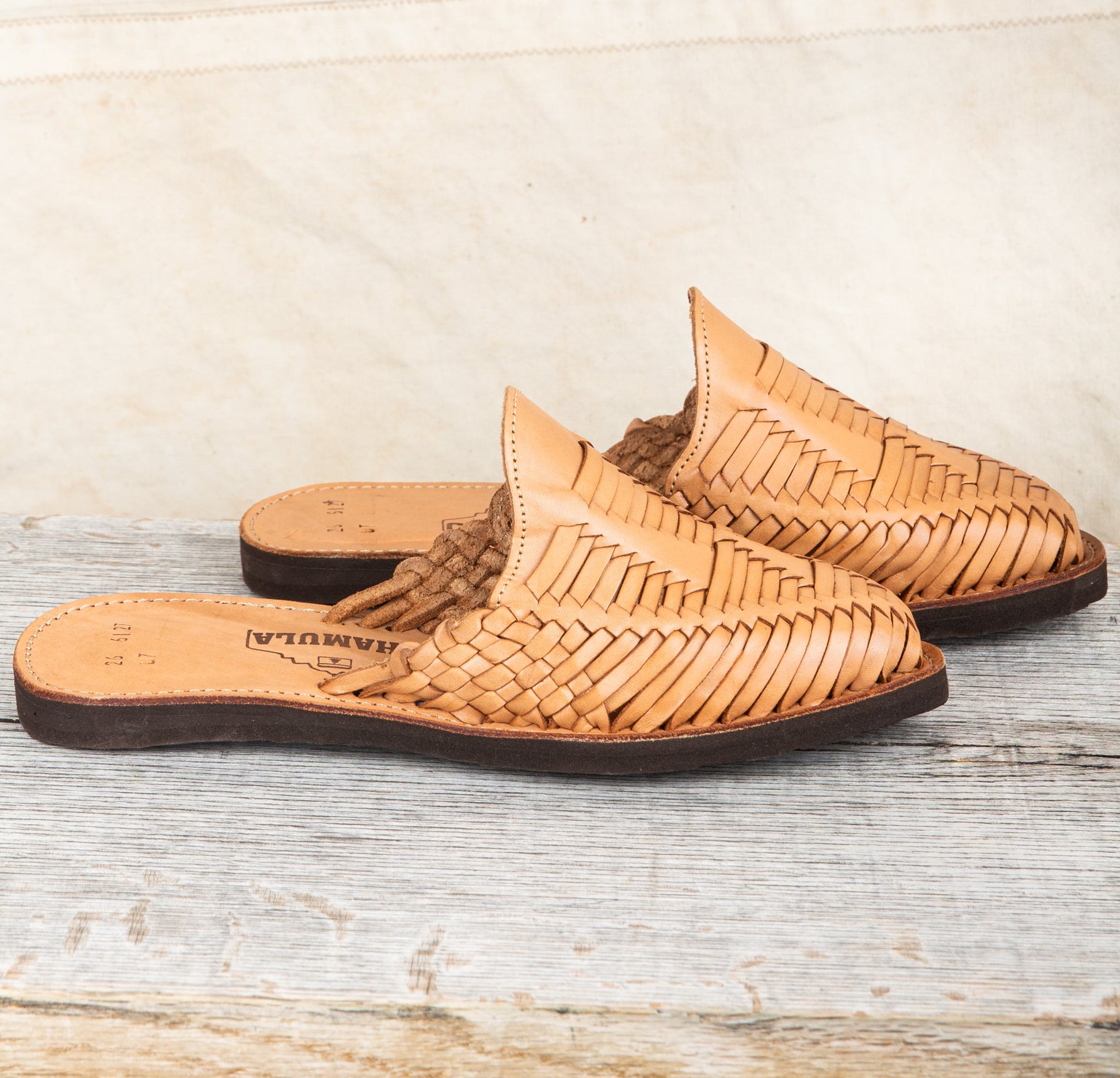 Huarache is the name of a traditional sandal making crafts originating from Mexico, Originally these sandals wear made of all-leather and later designs included woven string soles and occasionally thin wooden soles. Today these shoes are made in a traditional way but with rubber soles for durability. For a Mexican leather sandal to be considered a traditional huaraches they need to be handmade, and have a woven-leather form in the upper.