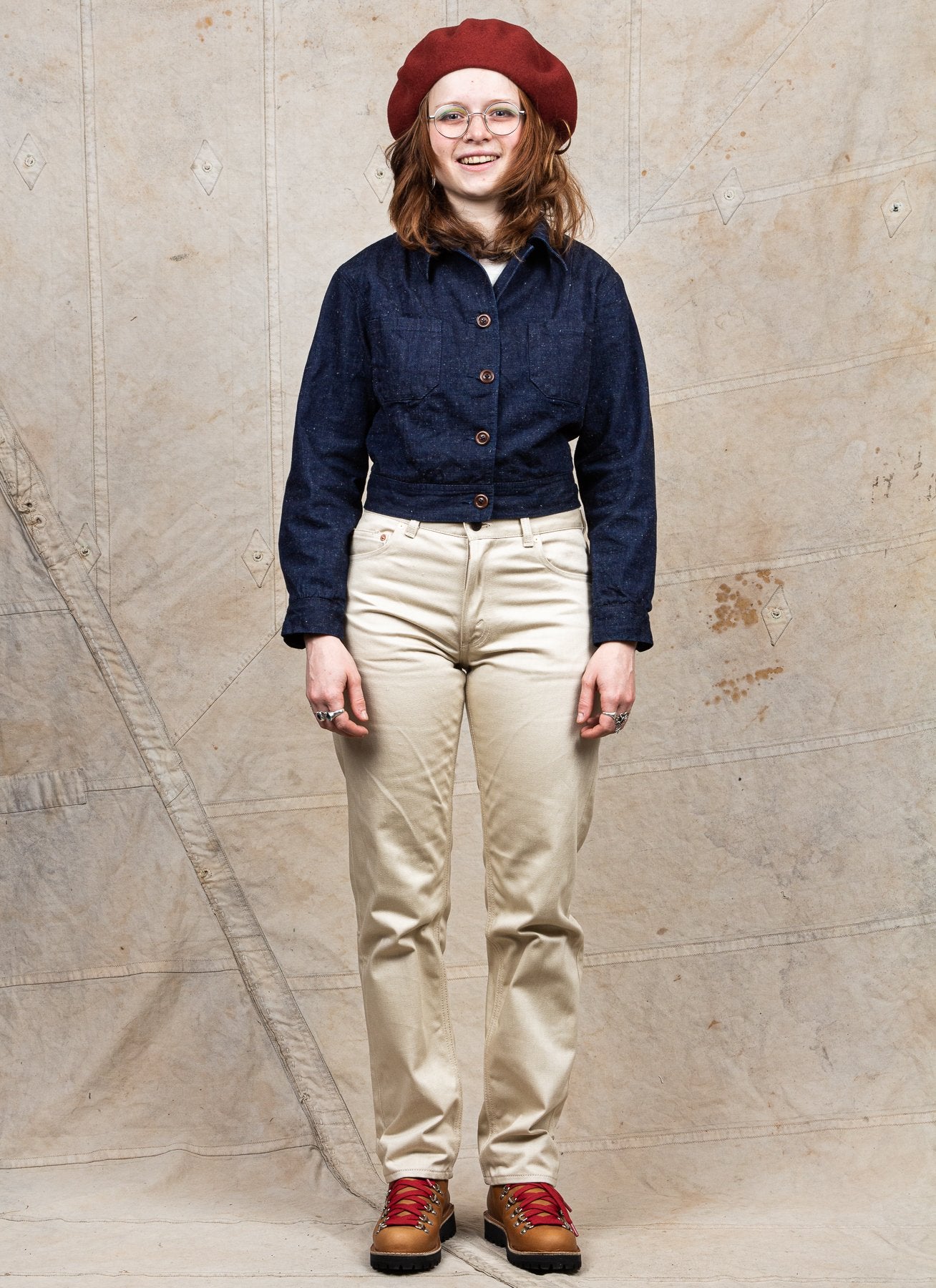 This jacket is the third denim garment made by Blue Highway Clothing. After releasing two models of men's jeans earlier, we felt it was time for a women's garment. Since 2007 we have had a Levi's ladies jacket from the mid 50's in our archive and it is this jacket that has been the model and the inspiration for our jacket. The fit is cut short and will be at its best worn with a pair of high waist pants. The shoulders and the sleeves are wider for comfort and movement.