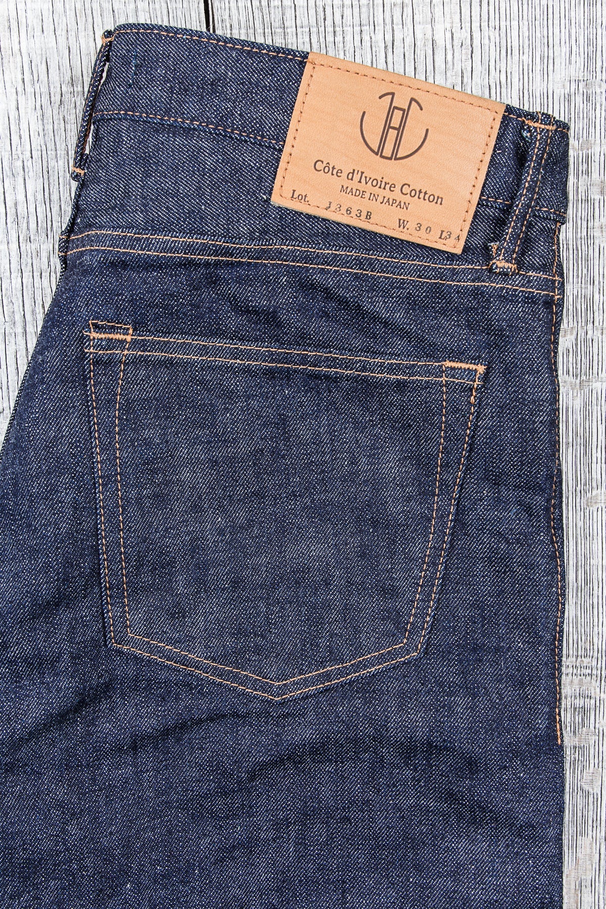 Japan blue's own line of denim is all about the material. These jeans are made from Texas cotton denim woven in Japan on a vintage shuttle loom, resulting in a fabric that reminds of the old western style denim.