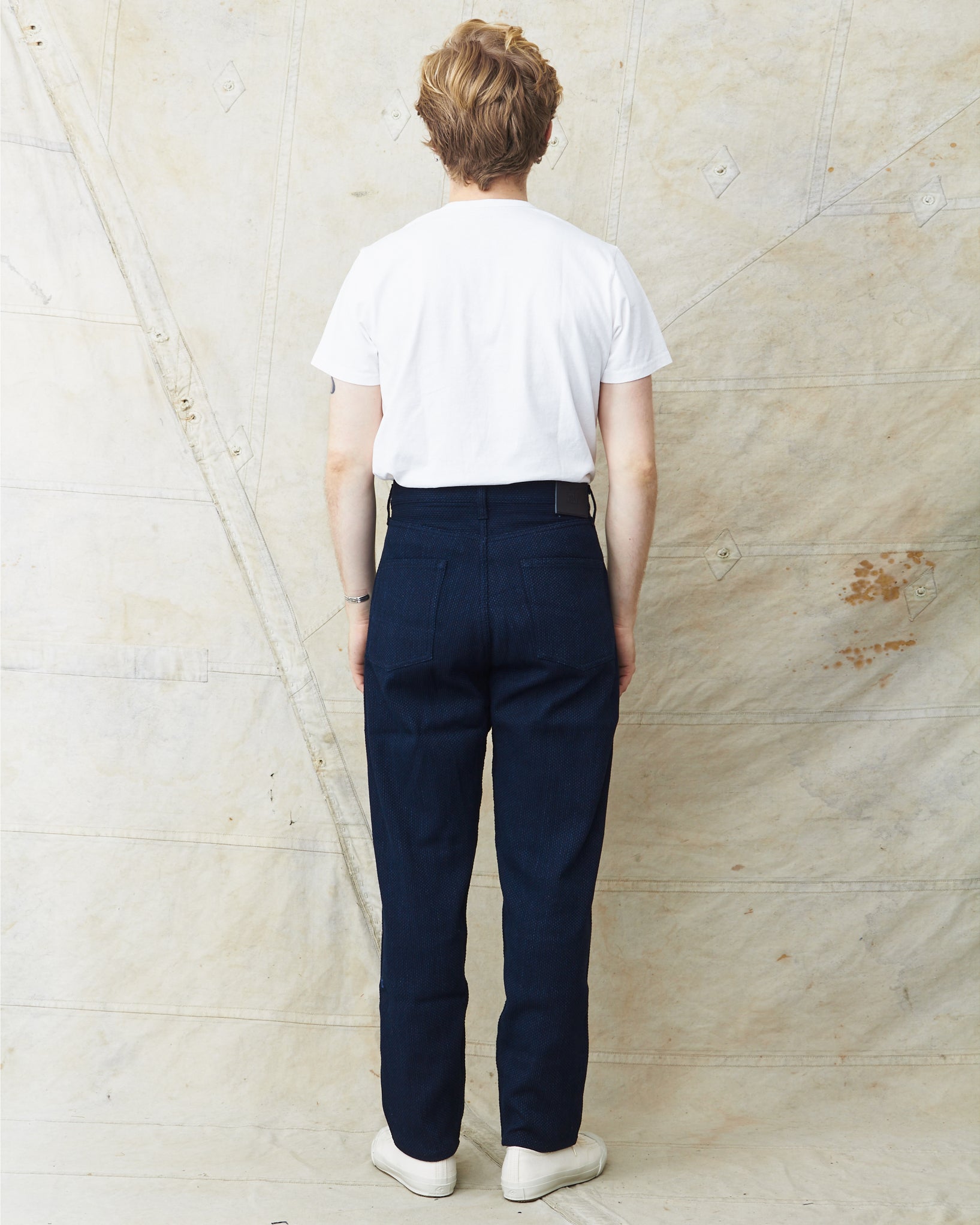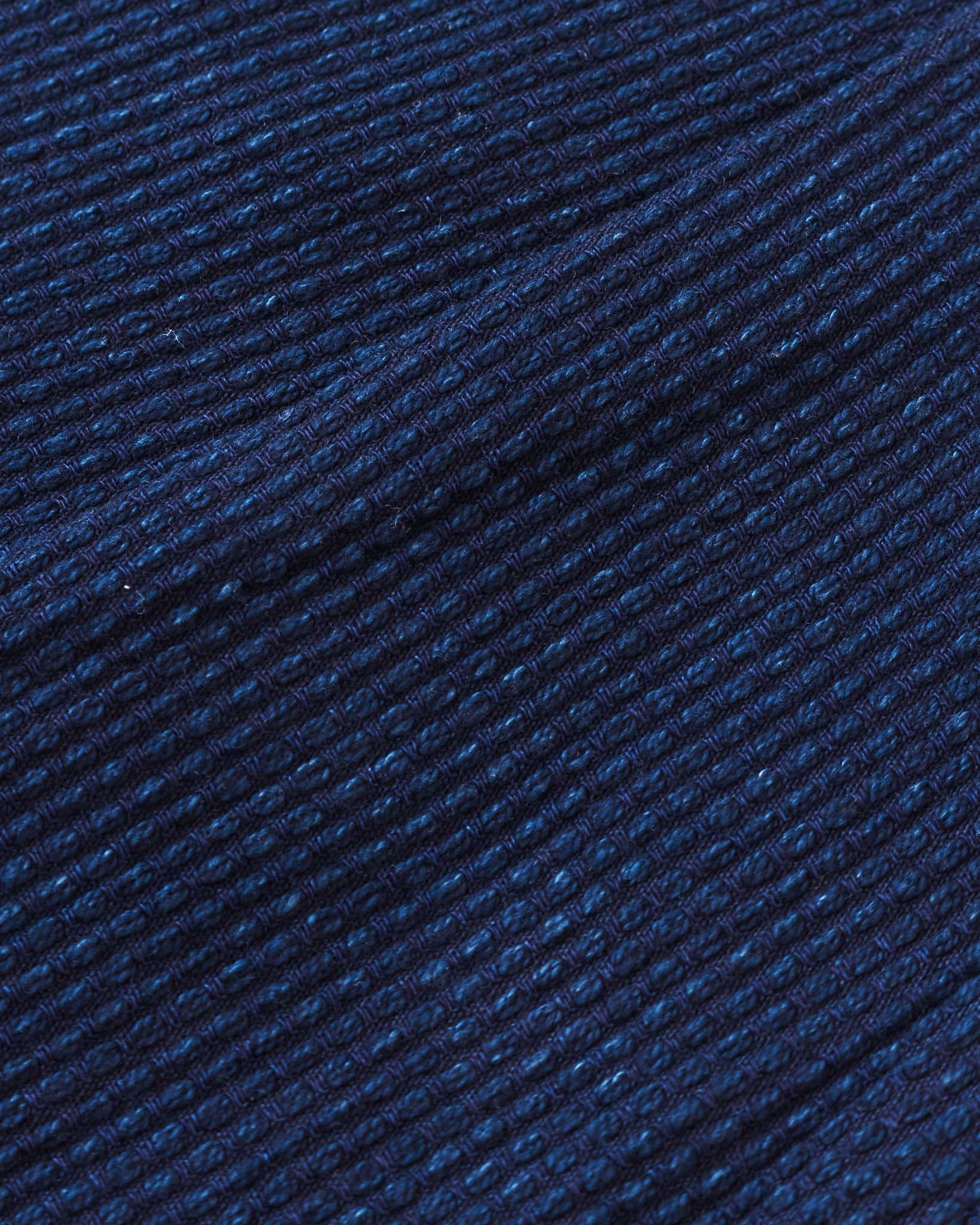 The fabric used in these pants is a Japanese double indigo sashiko fabric. Traditionally this kind of fabric has been used to make sturdy and durable garments such as budo clothes and clothes for Japanese firemen. The beautiful texture of the fabric is achieved by a thicker thread that has bean woven in to the fabric, adding sturdiness and texture. With time and wear the fabric will come to life in a beautiful way and the texture will come to life even more as the fabric fades.