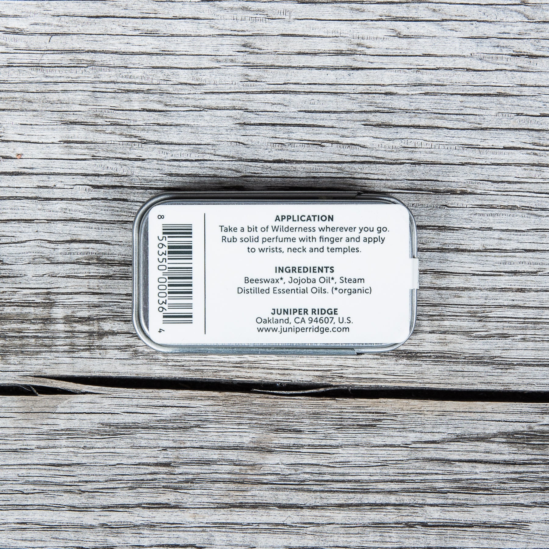 Take a bit of wilderness wherever you go! Rub solid perfume with your finger and apply to wrist, neck and temples.- Juniper Ridge Organic Solid Perfume Cascade Forest 5oz- Ingredients- Beeswax- organic jojoba oil- steam-distilled essential oils- 15 ml- Made in USA