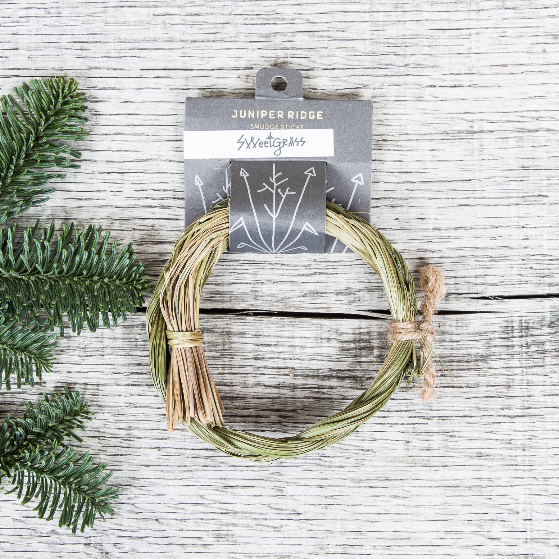 Wildcrafted dried Sweetgrass (Hierochloe odorata) wrapped in organic cotton string. No hidden ingredients. No charcoal or perfume.