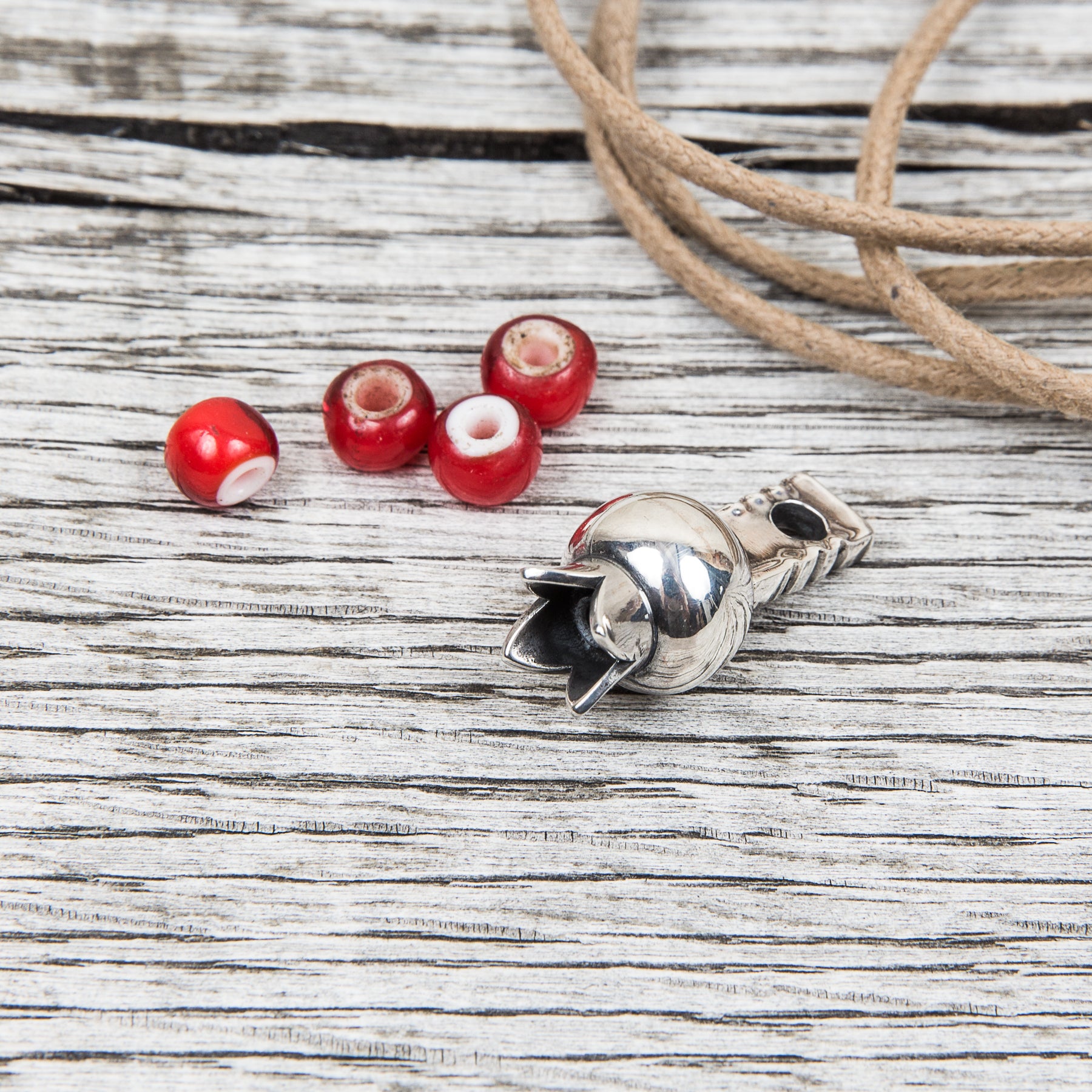 The squash or "pumpkin flower", symbolizes prosperity of descendants and a good harvest. Use it to customize a leather strap or together with other ornaments or beads on a silver chain.