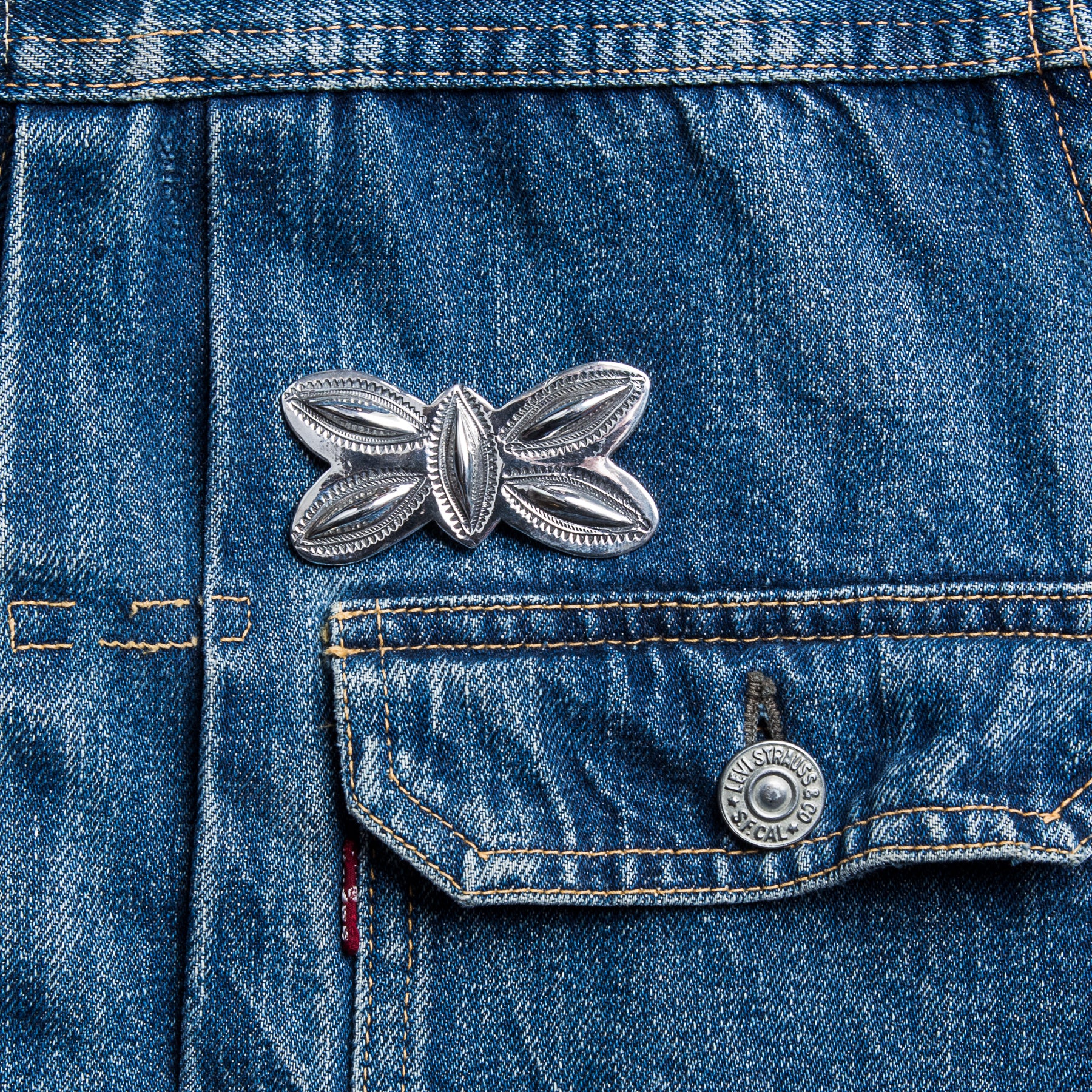 Butterfly silver brooch made by hand in Japan by Larry Smith. Inspired by Native American jewelry from the so called "Fred Harvey era" dating back to the early 20th century.