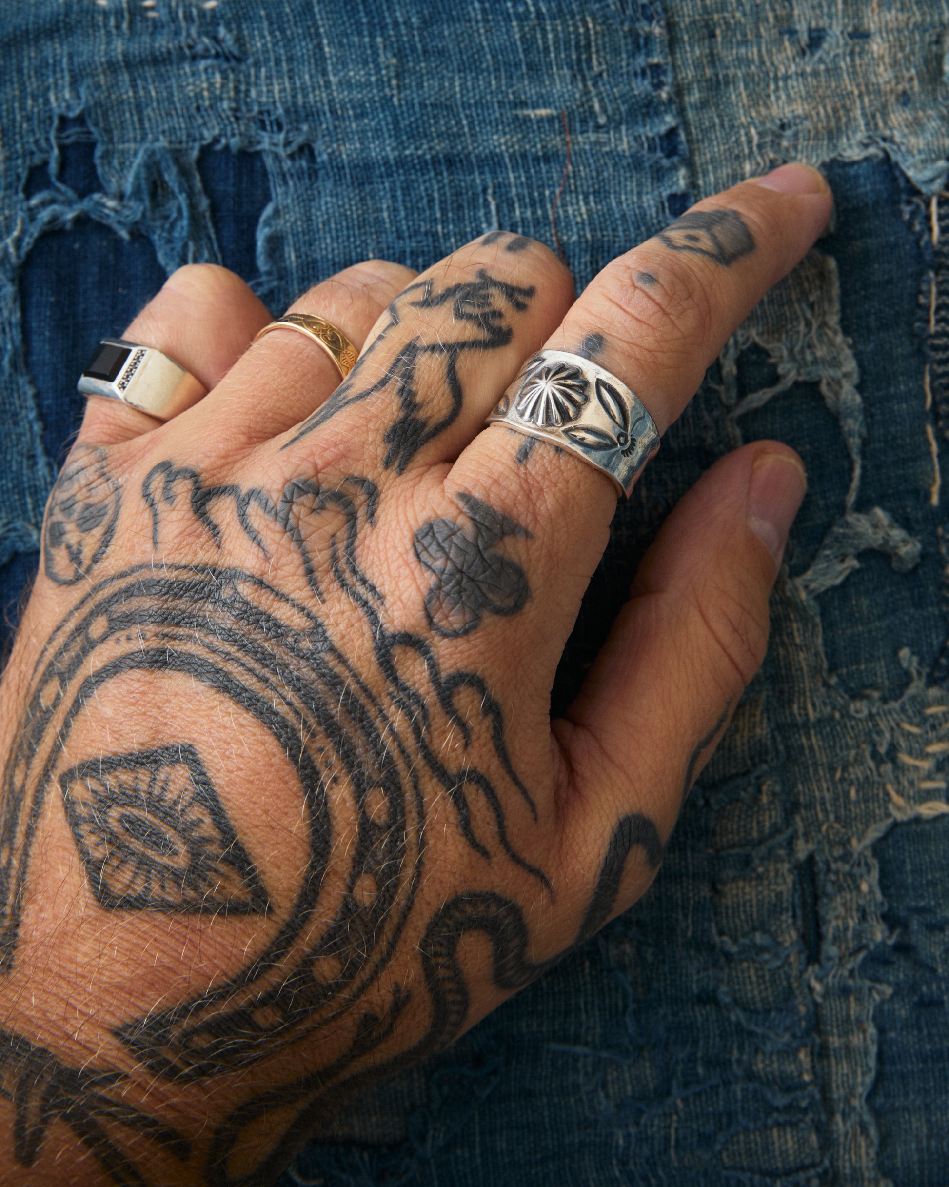 Silver ring made by hand in Japan by Larry Smith. Inspired by Native American jewelry from the so called "Fred Harvey era" dating back to the early 20th century.