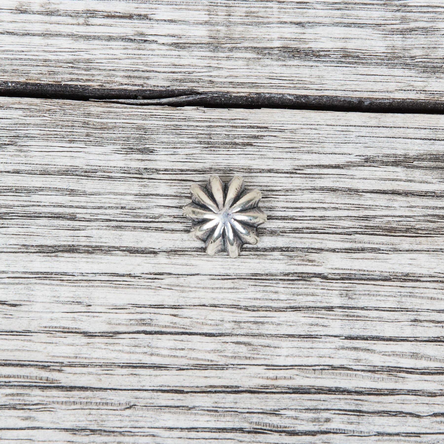 Silver concha button made by hand in Japan by Larry Smith. A perfect detail to replace a lost button on your favorite shirt! Inspired by Native American jewelry from the so called "Fred Harvey era" dating back to the early 20th century.