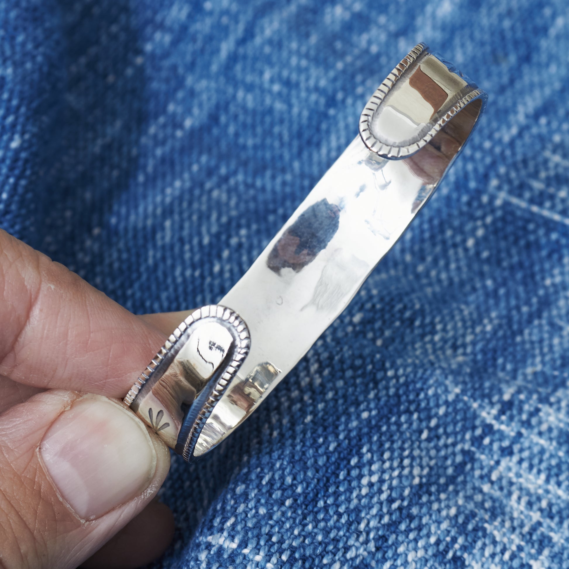 Silver bracelet handmade by Larry Smith in Japan. Inspired by Native American jewelry from the so called "Fred Harvey era" dating back to the early 20th century.