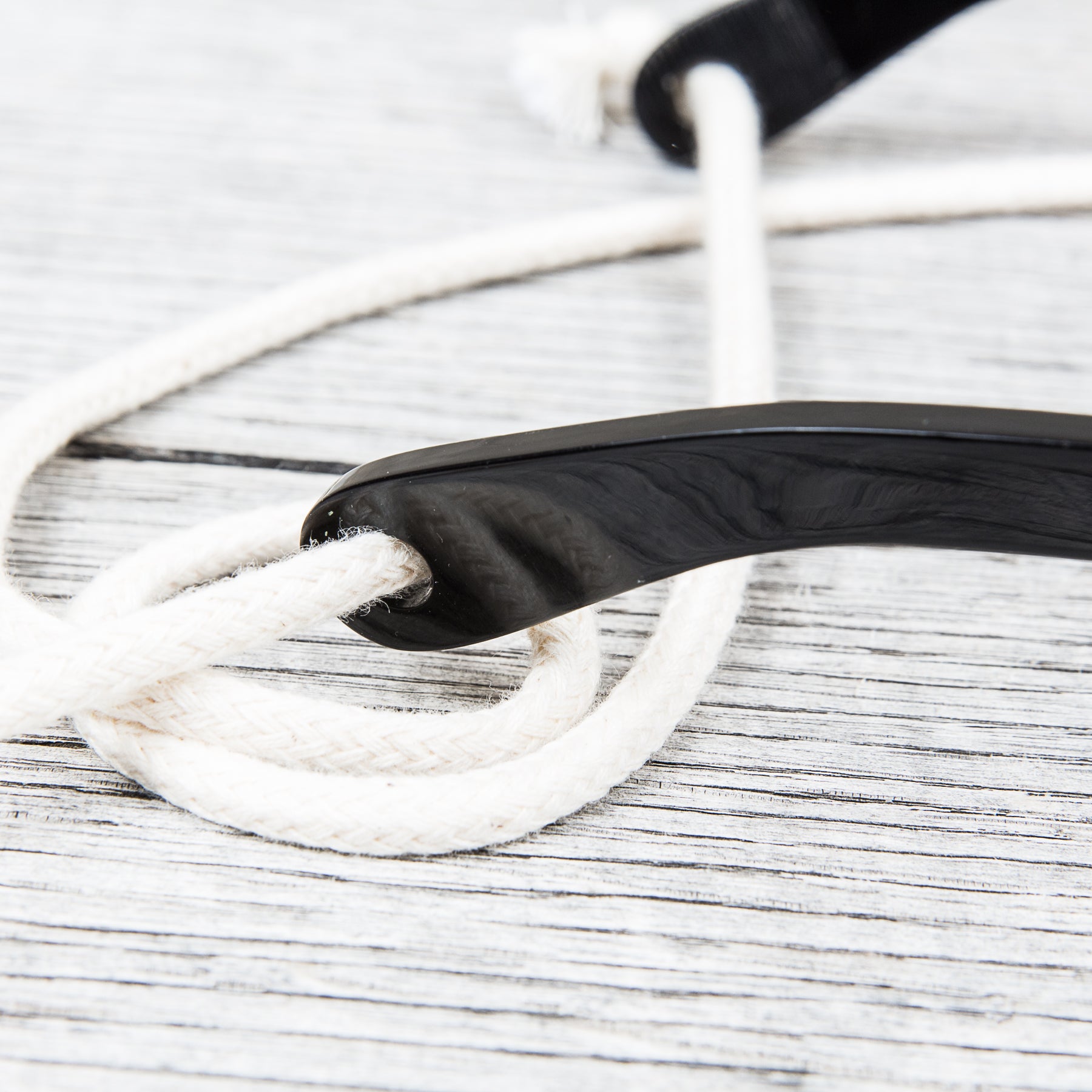 The hinges are deadstock 1940s swiss-made 7 chewier hinges and the quality of these are second to none. Compared to weaker ones with less chewier commonly used by other brands today that might break or deform after being used for a while, these hinges will stay steady after years of use. The earpieces have a signature drilled hole that holds a thick cotton neck cord when delivered. The neck cord is easy to untie if one prefer to wear the glasses without it.
