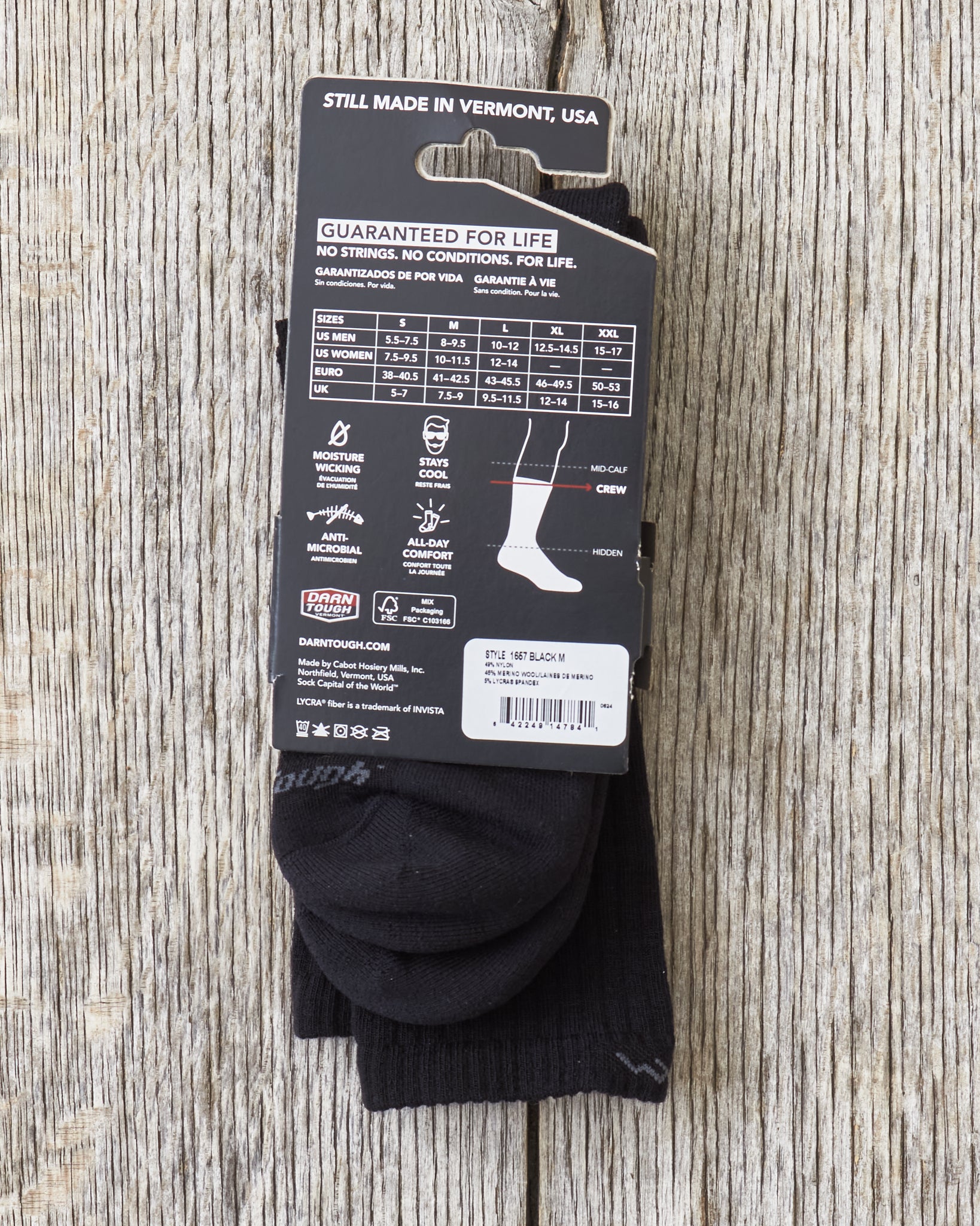 All Darn Tough socks are made in Vermont, USA and through the years they have become experts in providing quality wool socks to be worn during activities such as running, biking, skiing, hiking and hunting. The US Army is perhaps their biggest customer, maybe because they are super comfortable to wear and made to last longer than you'd possibly expect when it comes to wool socks.