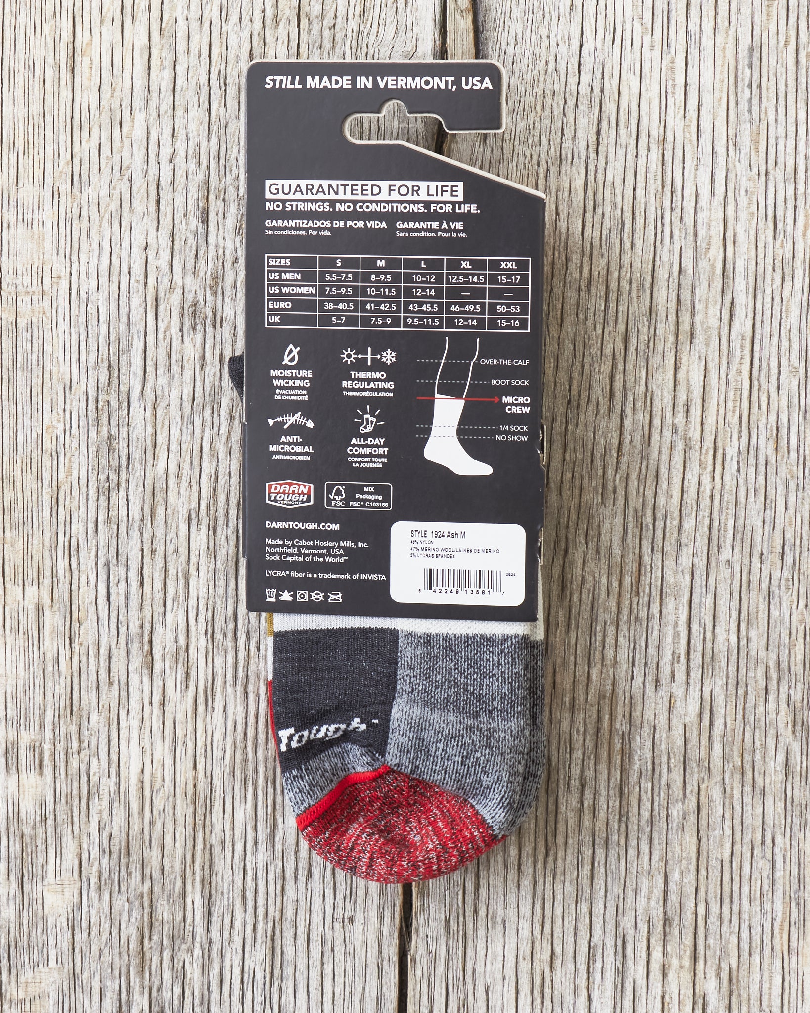 Darn Tough 1924 Ash Wool Socks Hiker Micro Crew Sock Lightweight Cushion