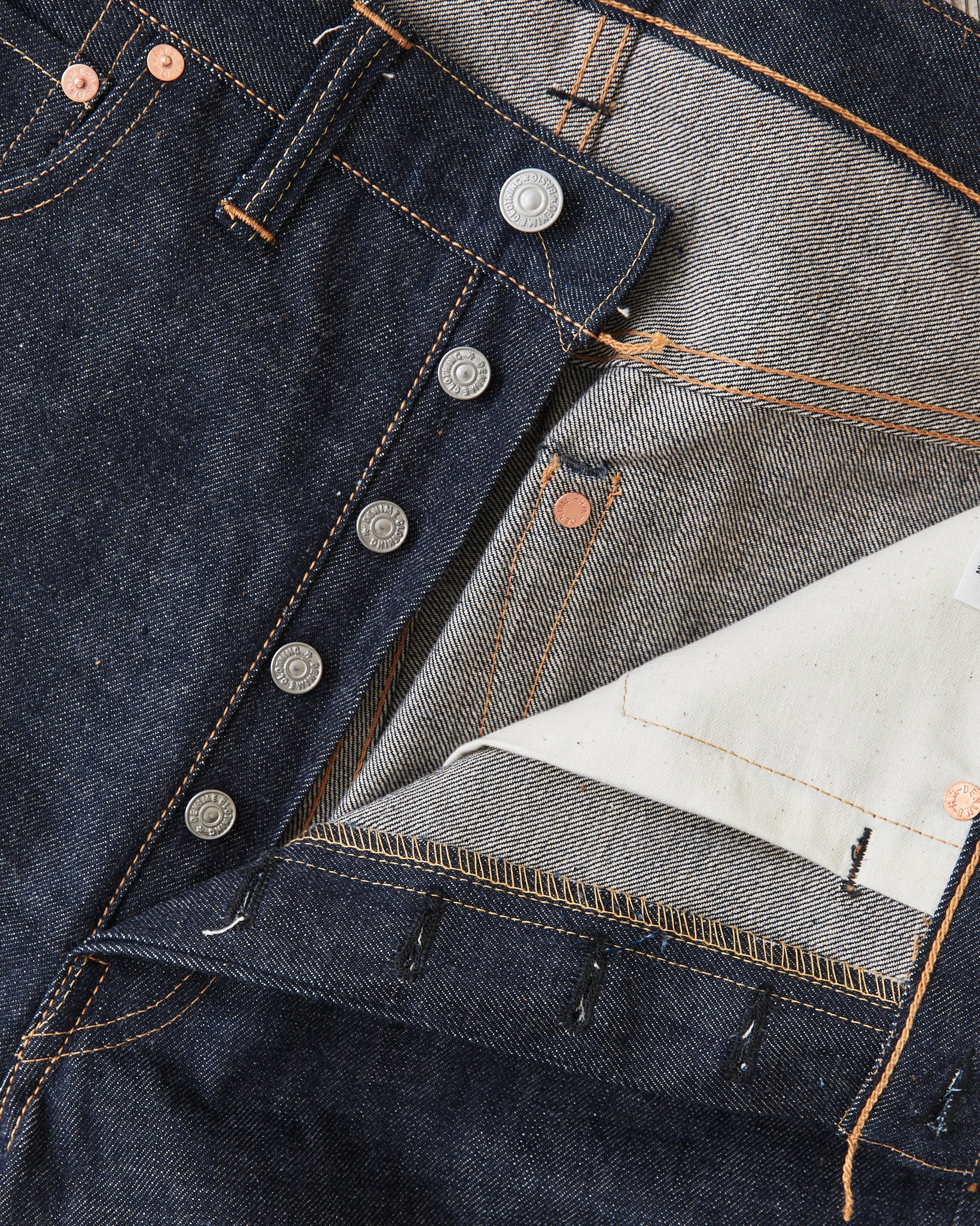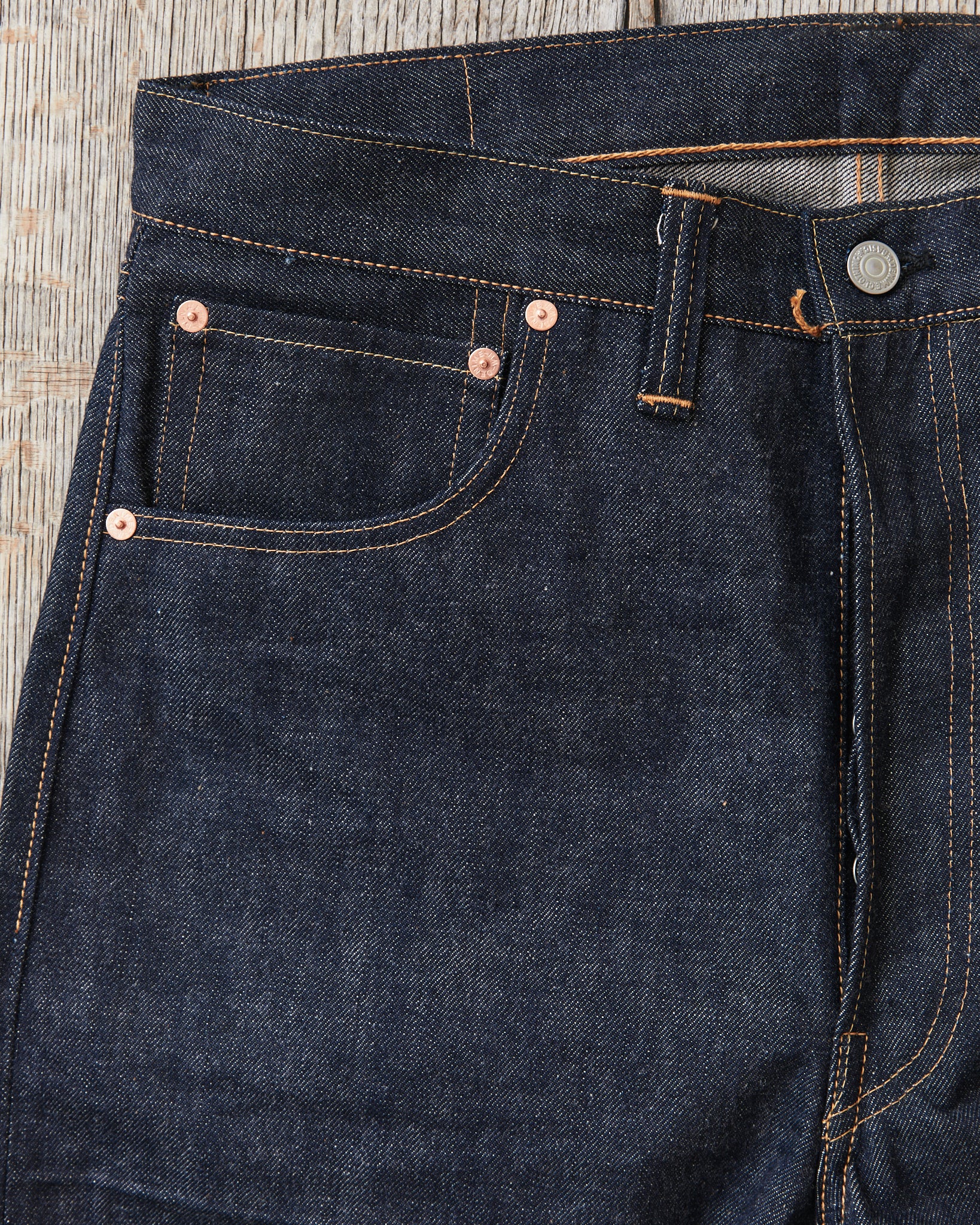 These jeans are made in Japan by Warehouse & Co. Warehouse is known for making some of the best vintage replica garments in the world and their attention to details when it comes to material and manufacturing techniques makes it hard to tell the difference if you compare a Warehouse garment with an actual vintage piece.