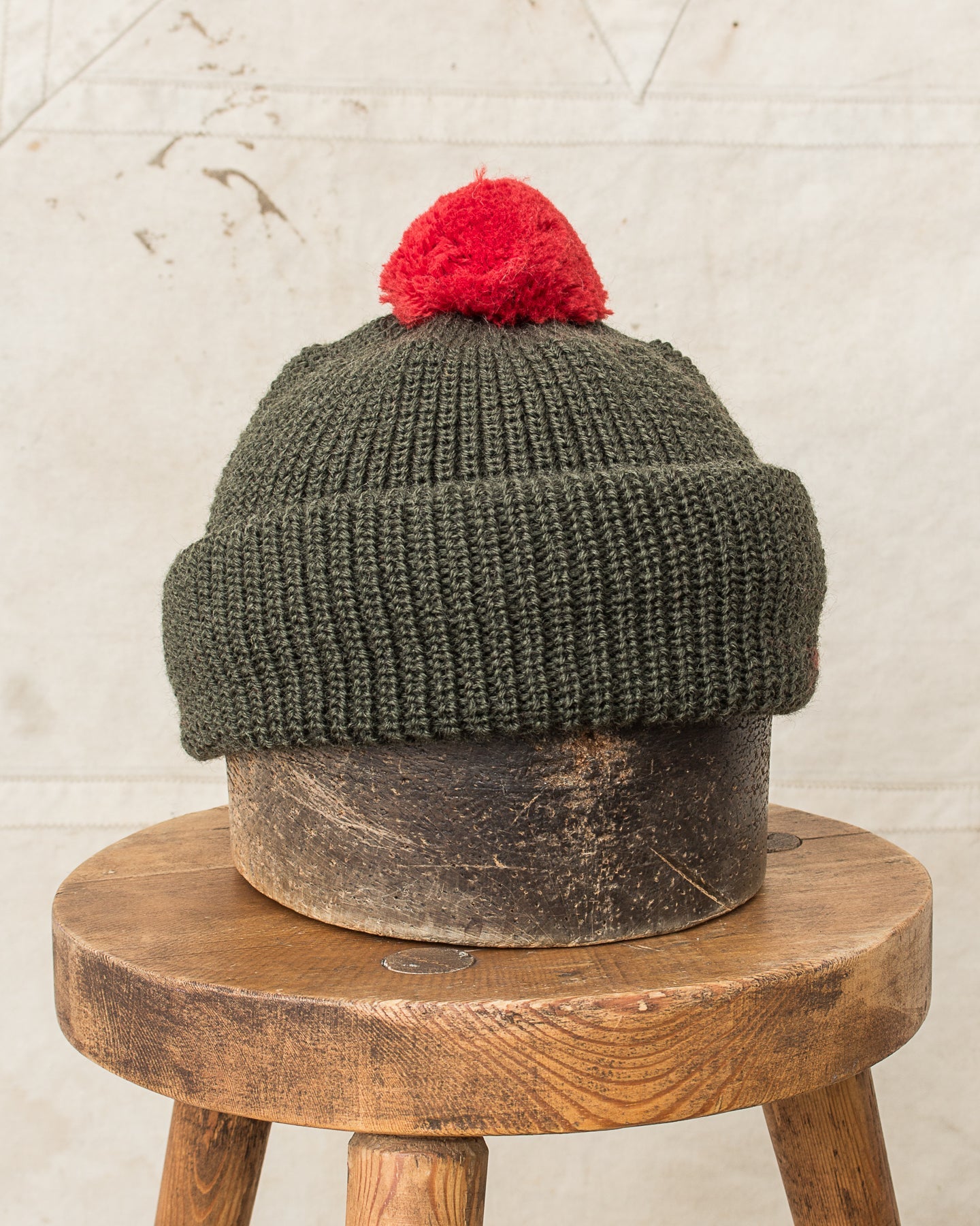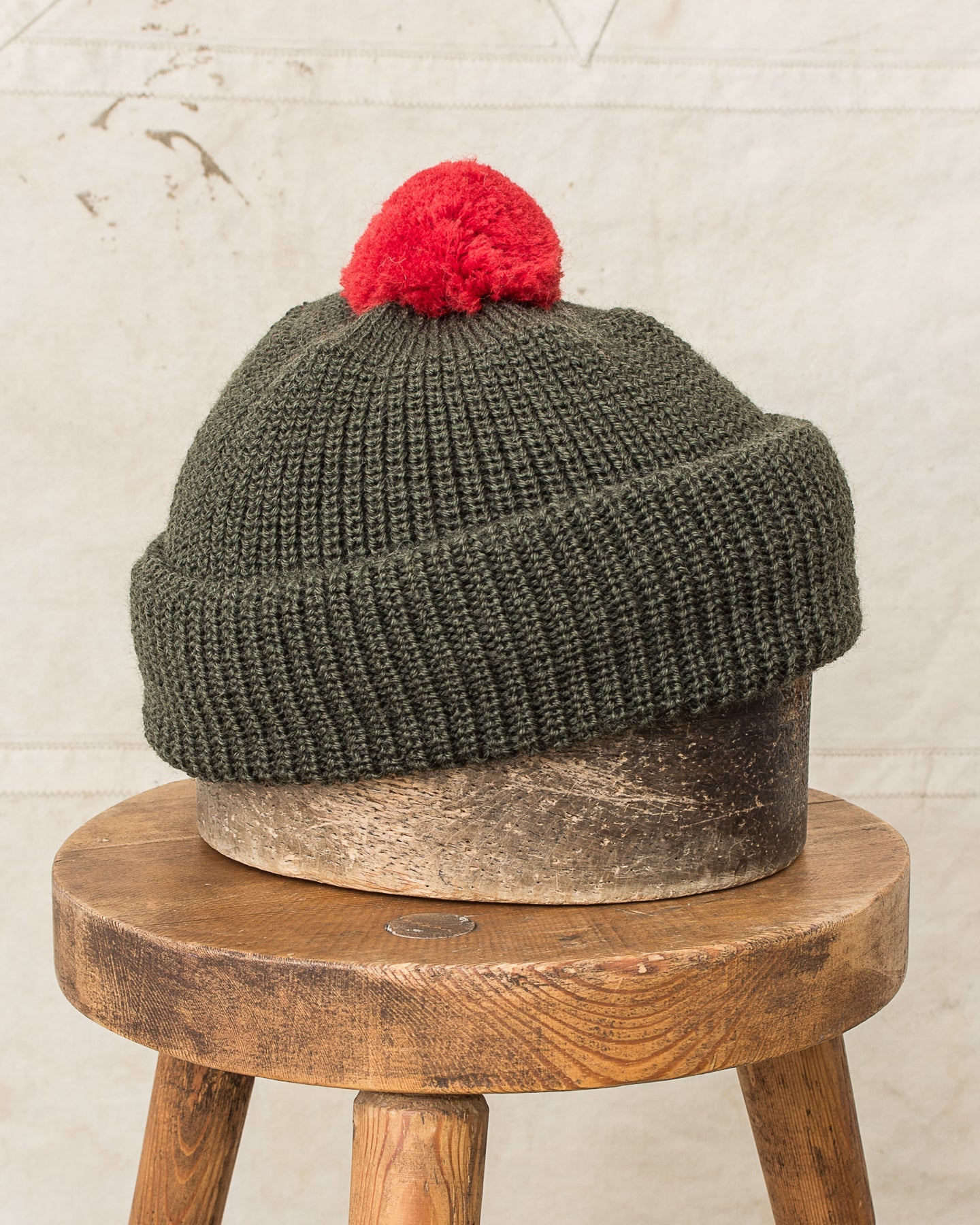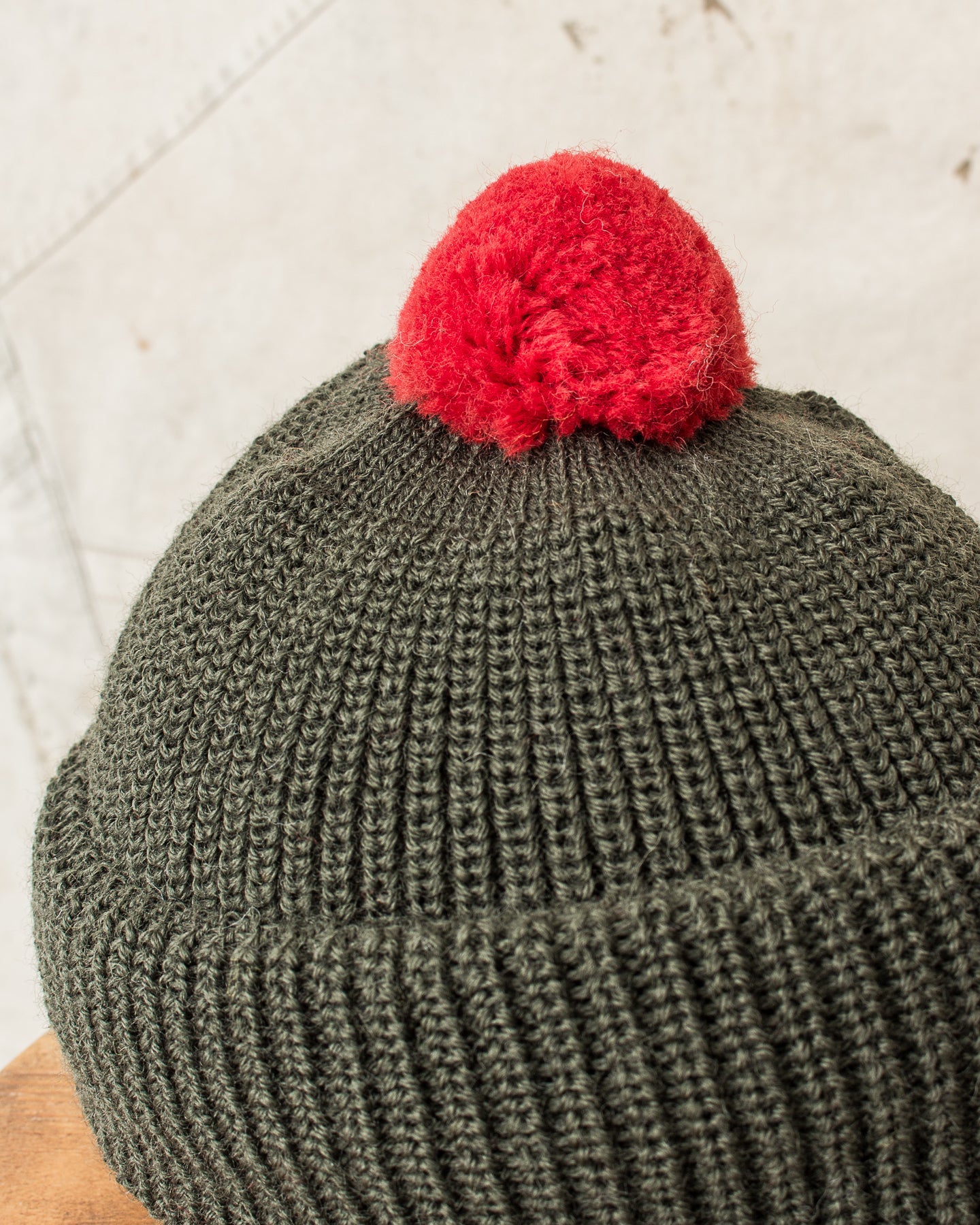 Heimat Mechanics Bobble Wool Hat Military Green / Safety Red