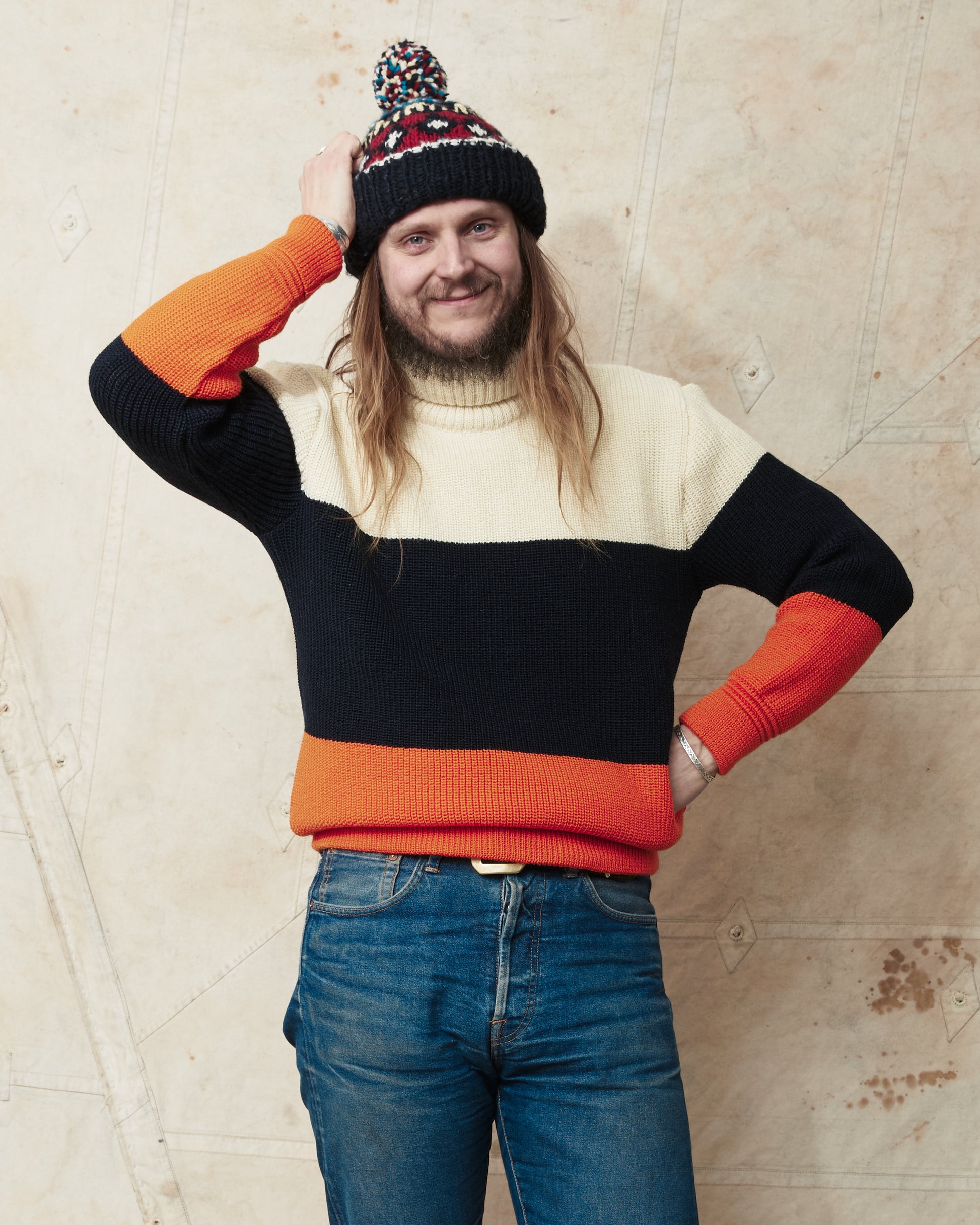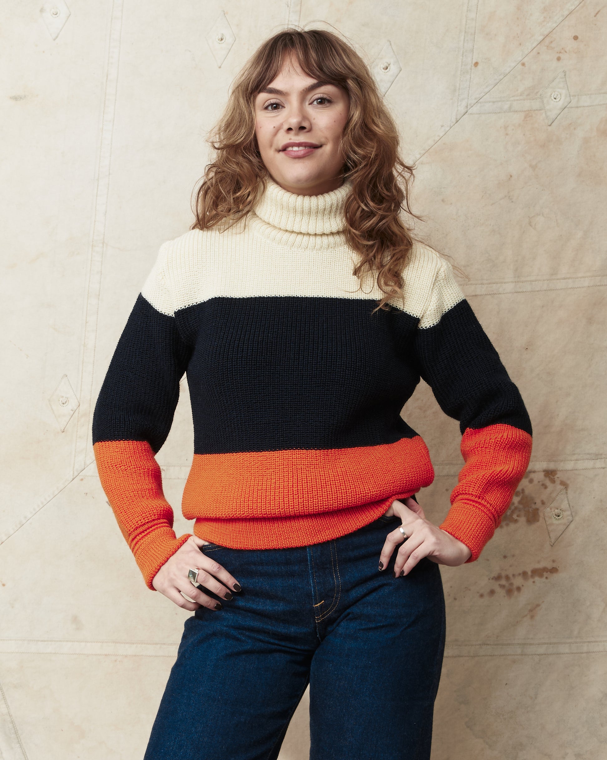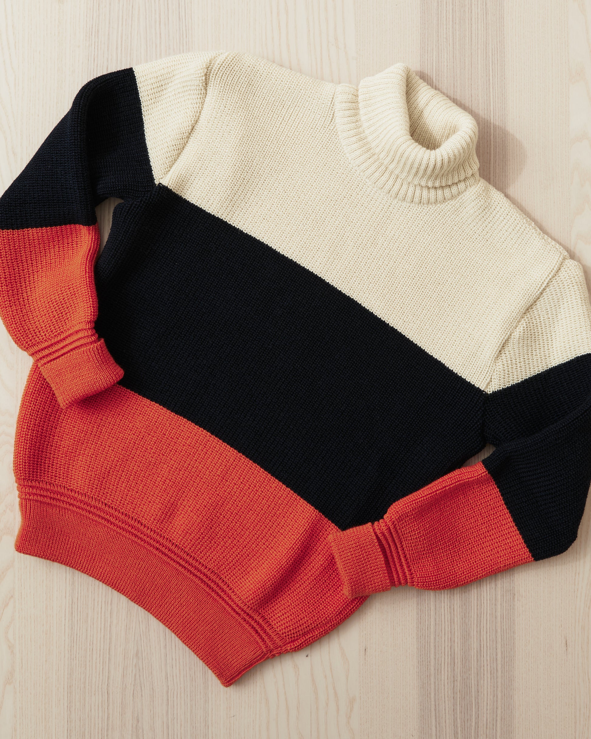 - Heimat Signal Rollneck Wool Sweater Seashell / Ink / Rescue Orange