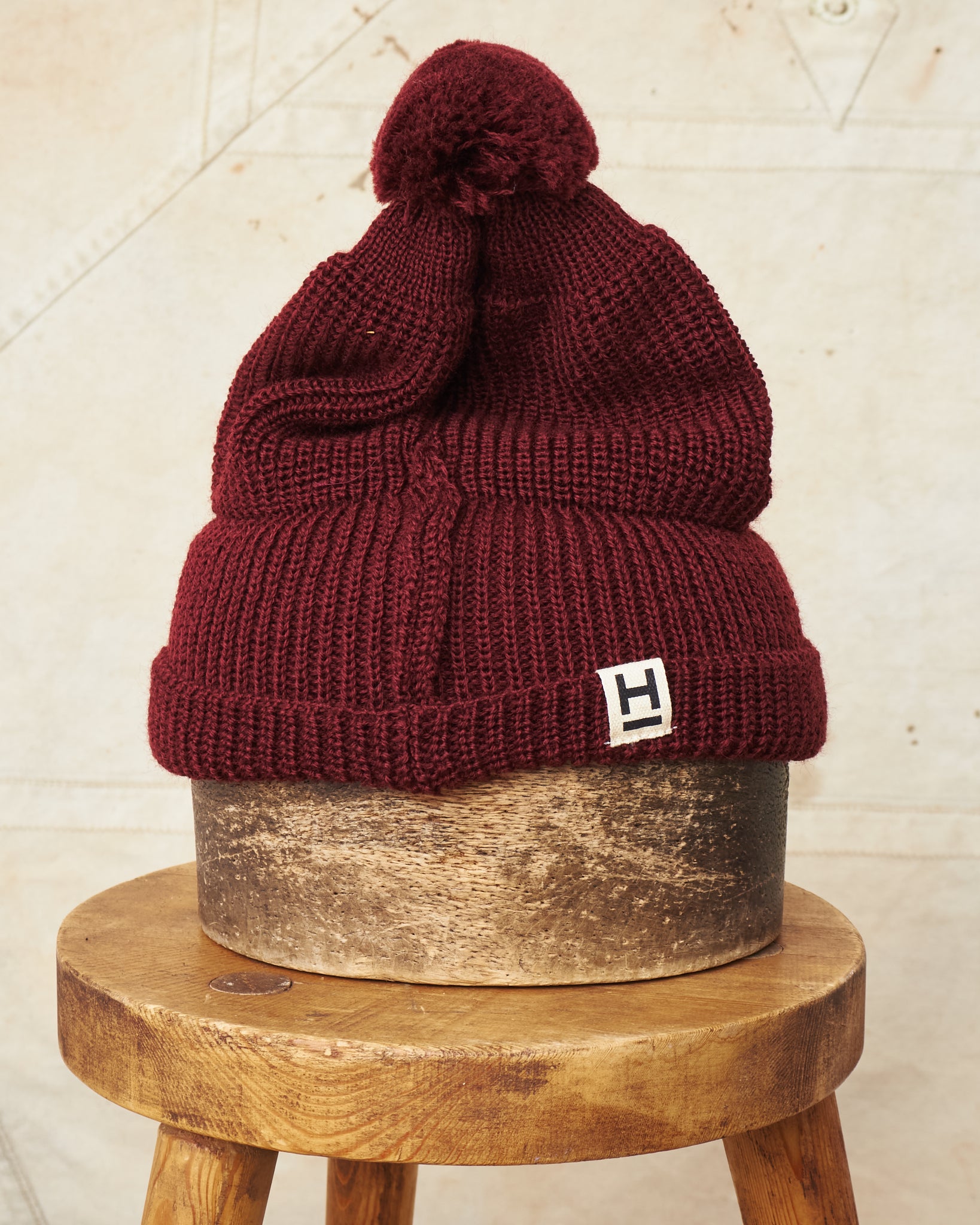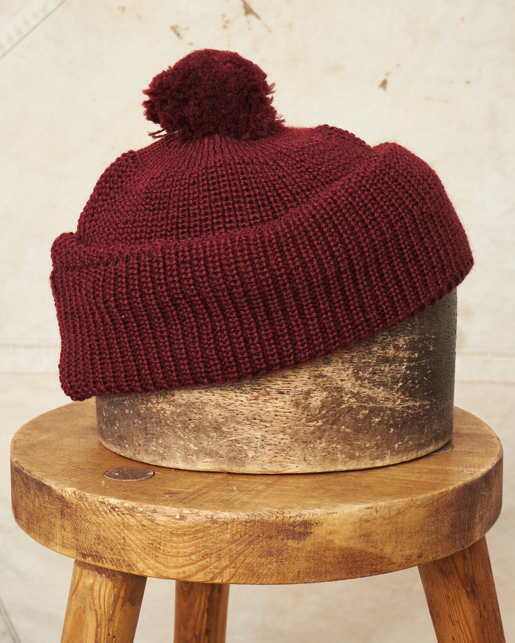 - Heimat Wool U Boat Bobble Hat Burgundy