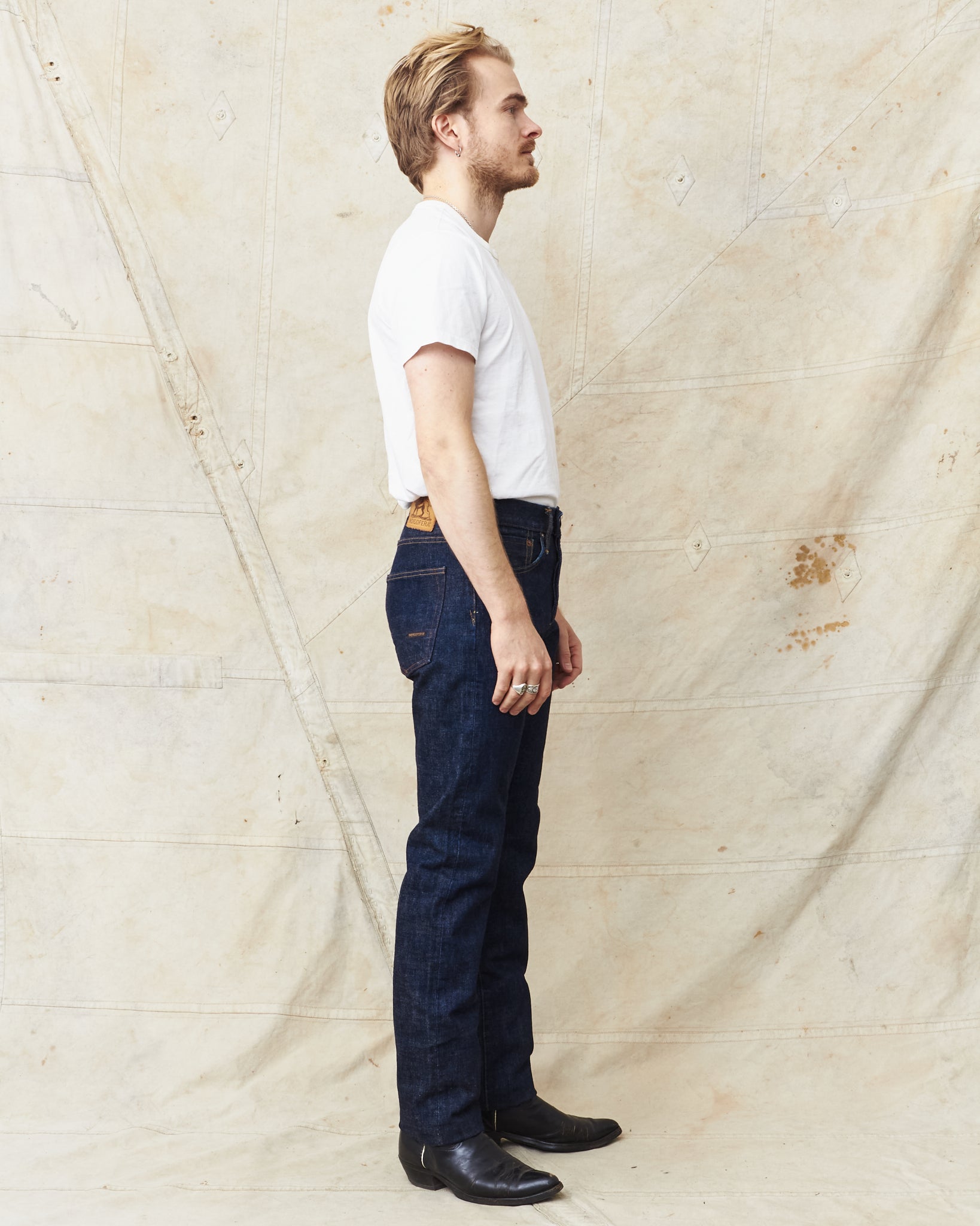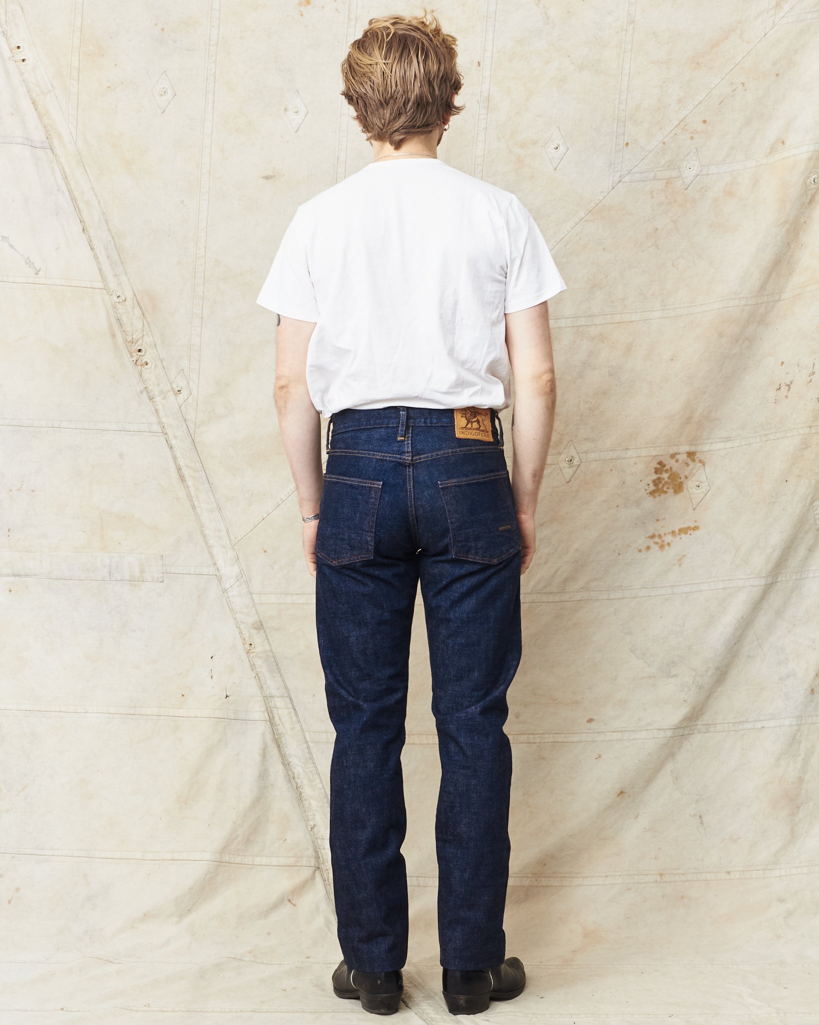 This version of Buck is sewn in a thick 18 oz selvedge fabric, rinsed and is comfortable to wear from start. The fabric oozes quality and has a very fine deep blue color.