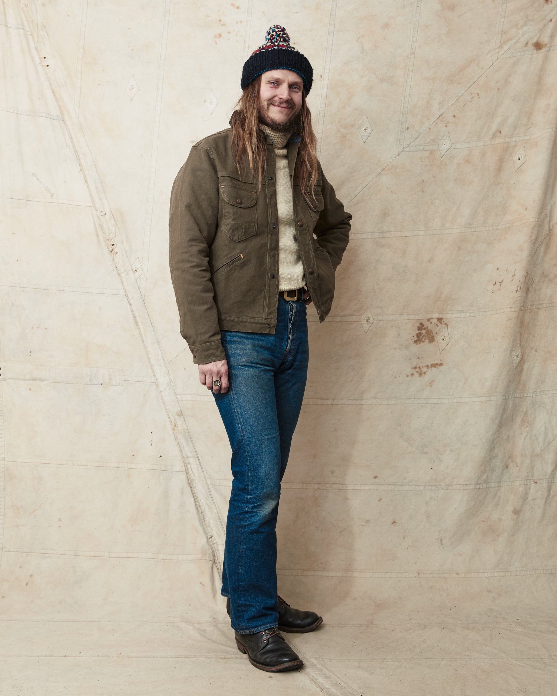 Douglas is 180 cm tall and weights 85 kg and wears a size M. Combining the jacket with a pair of well loved Indigofera Wyatt jeans, White's Semi Dress boots and a North Sea Clothing Submariner Sweater