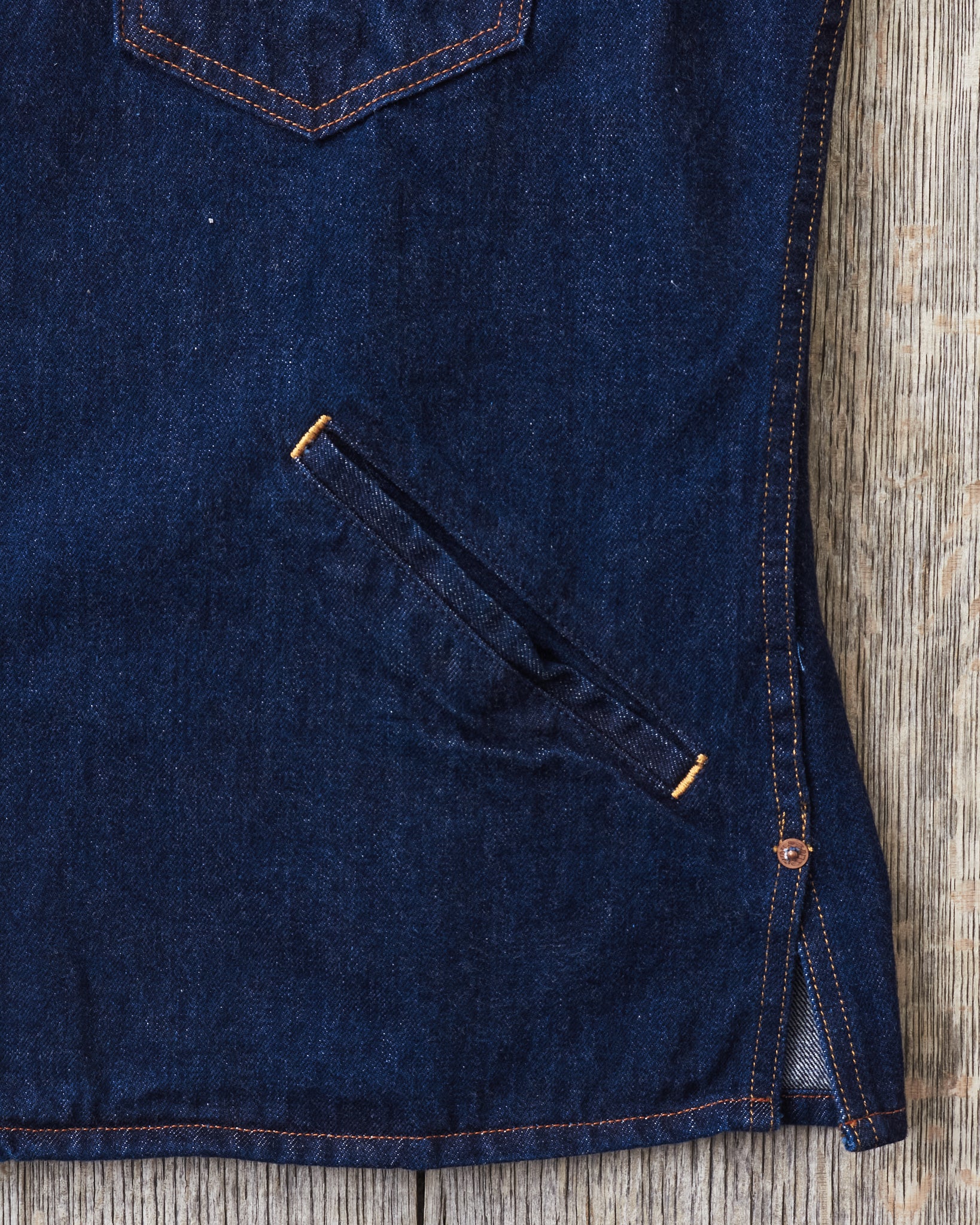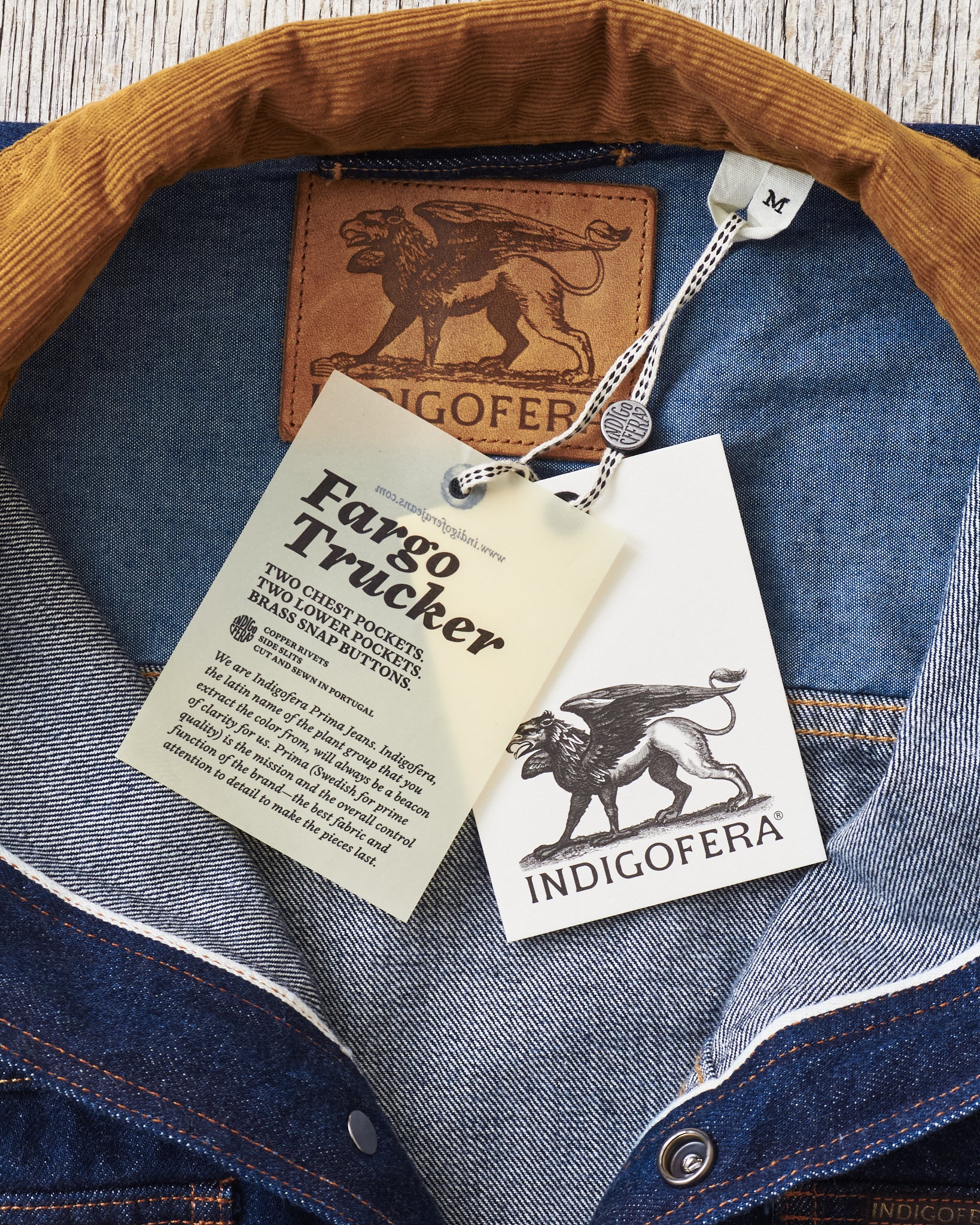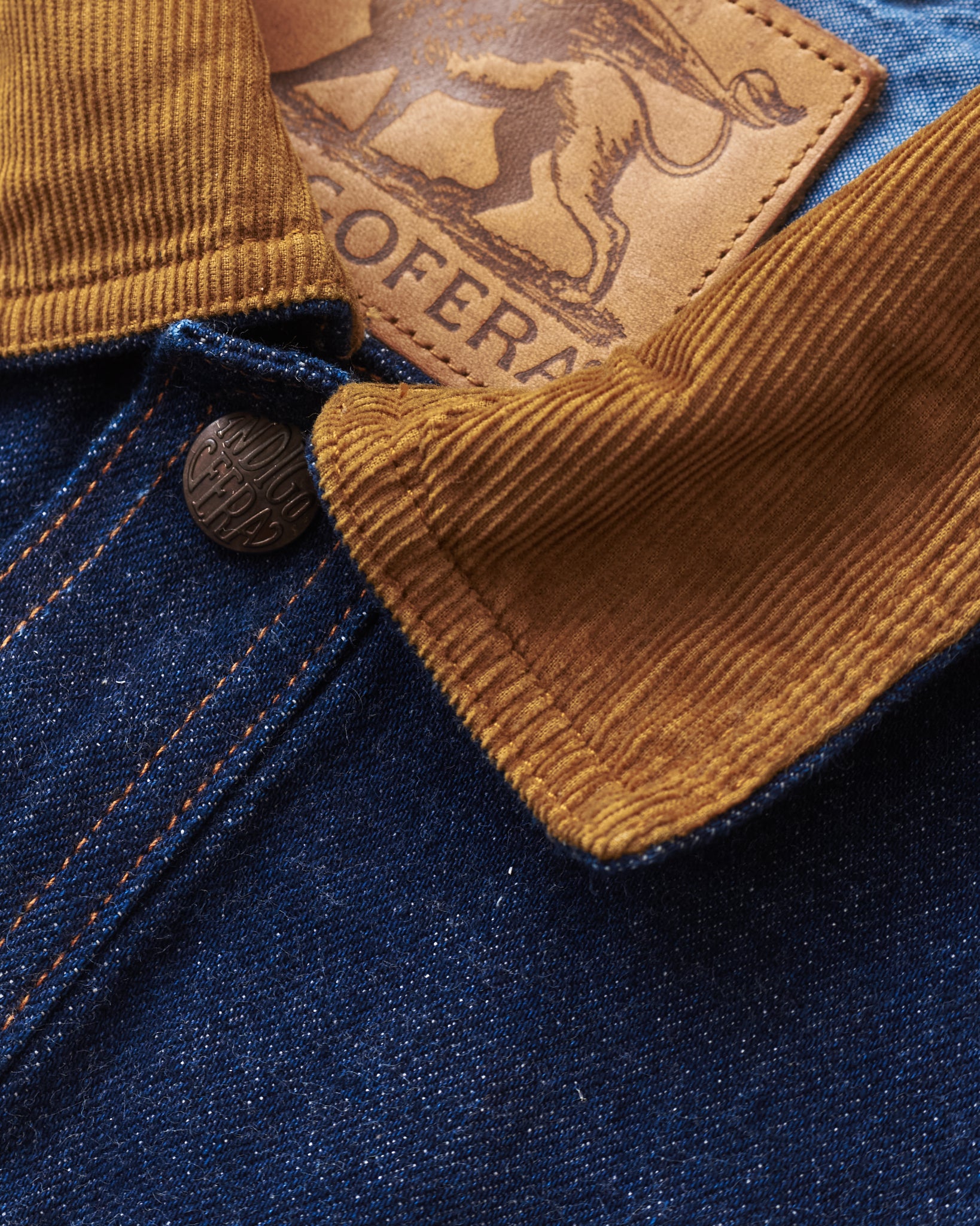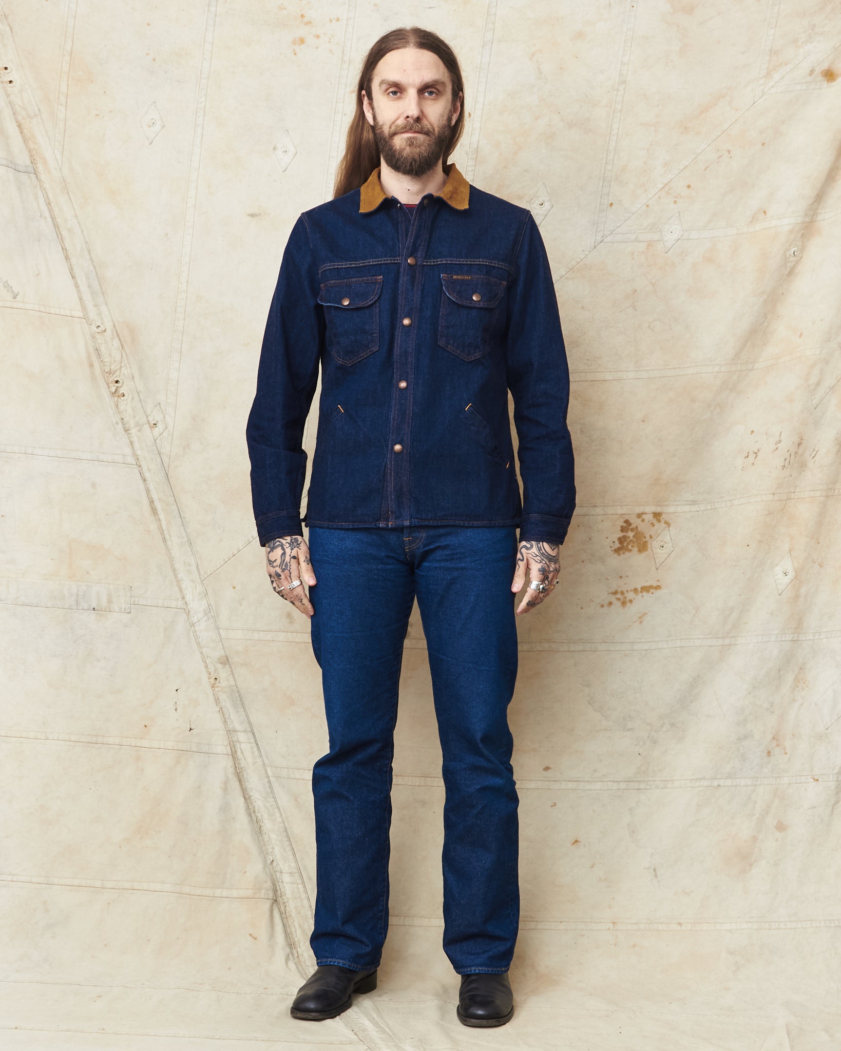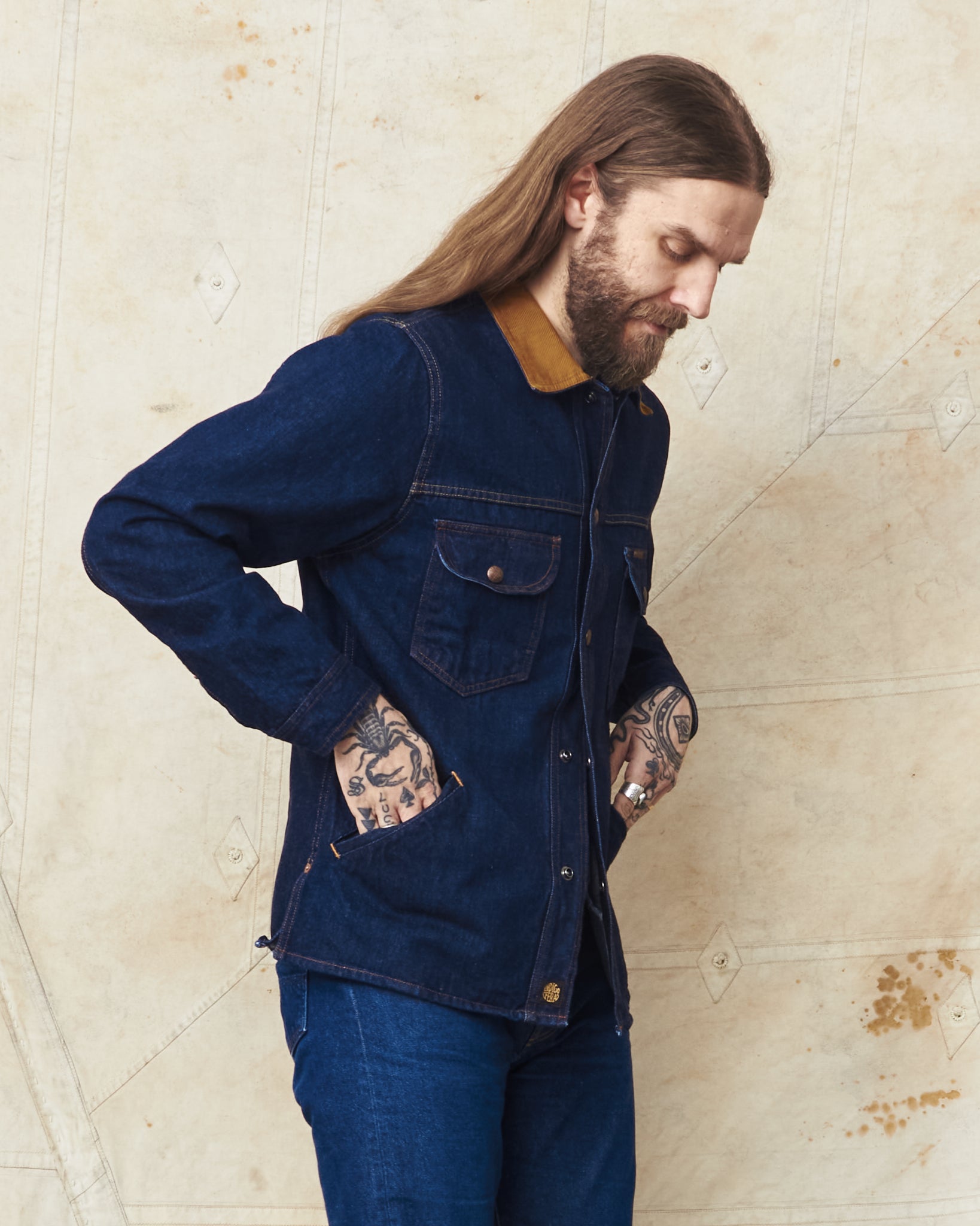This version of the Fargo shirt is made in a 70's Style Selvedge Denim, that has been rinsed. The denim and the has a 70's feeling and for those who like that look will love this jacket. The collar has also been adorned with corduroy.