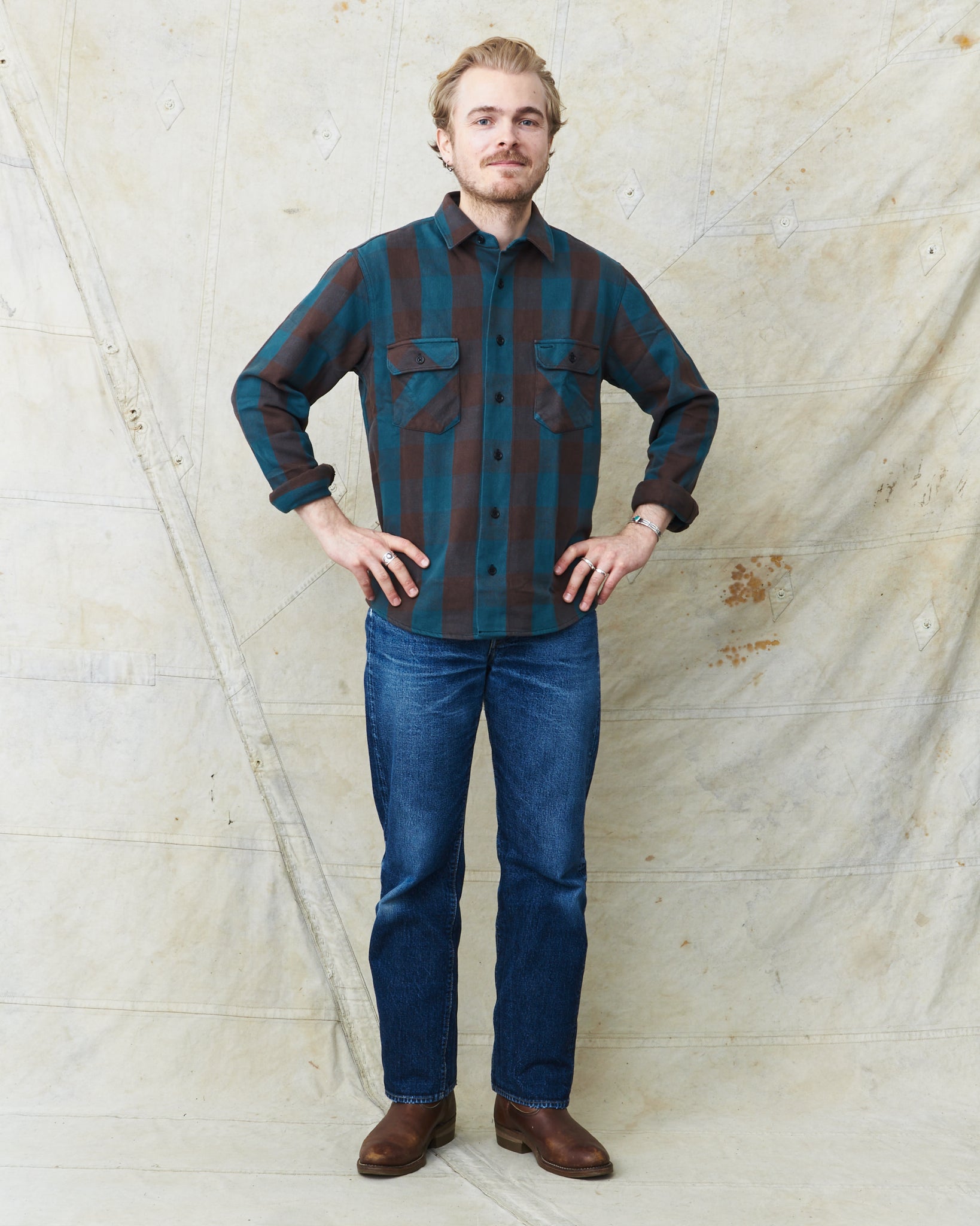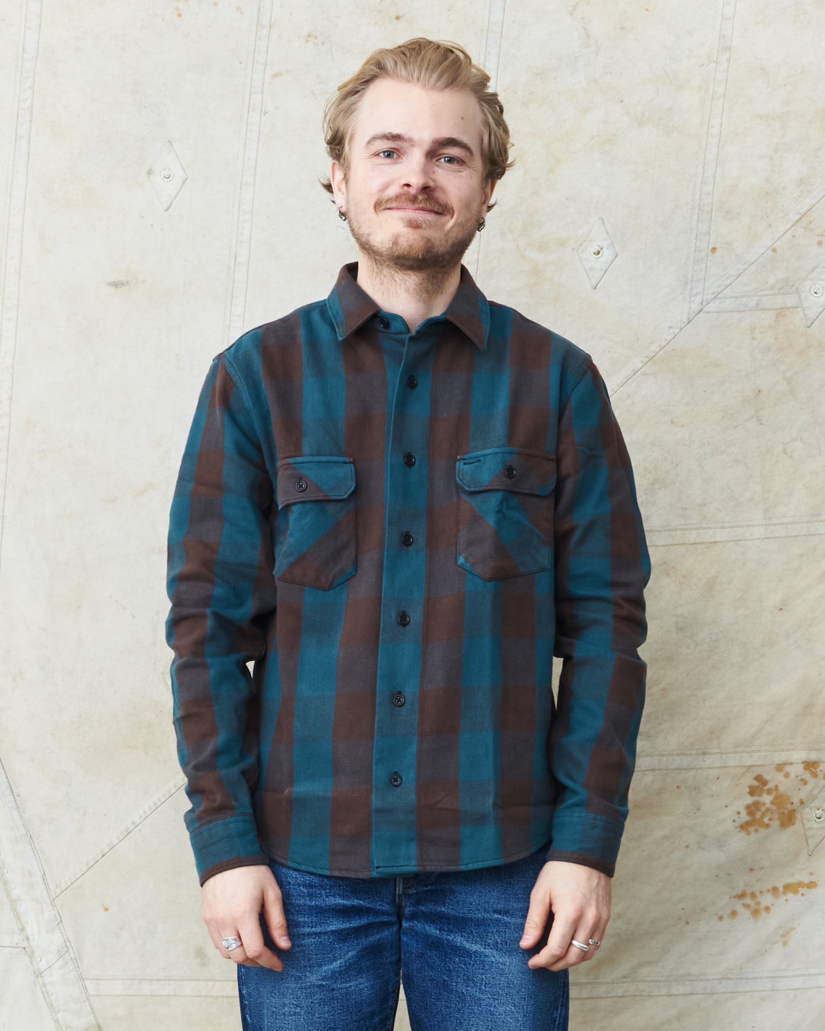 - Indigofera Norris Flannel Shirt Petrol / Brown