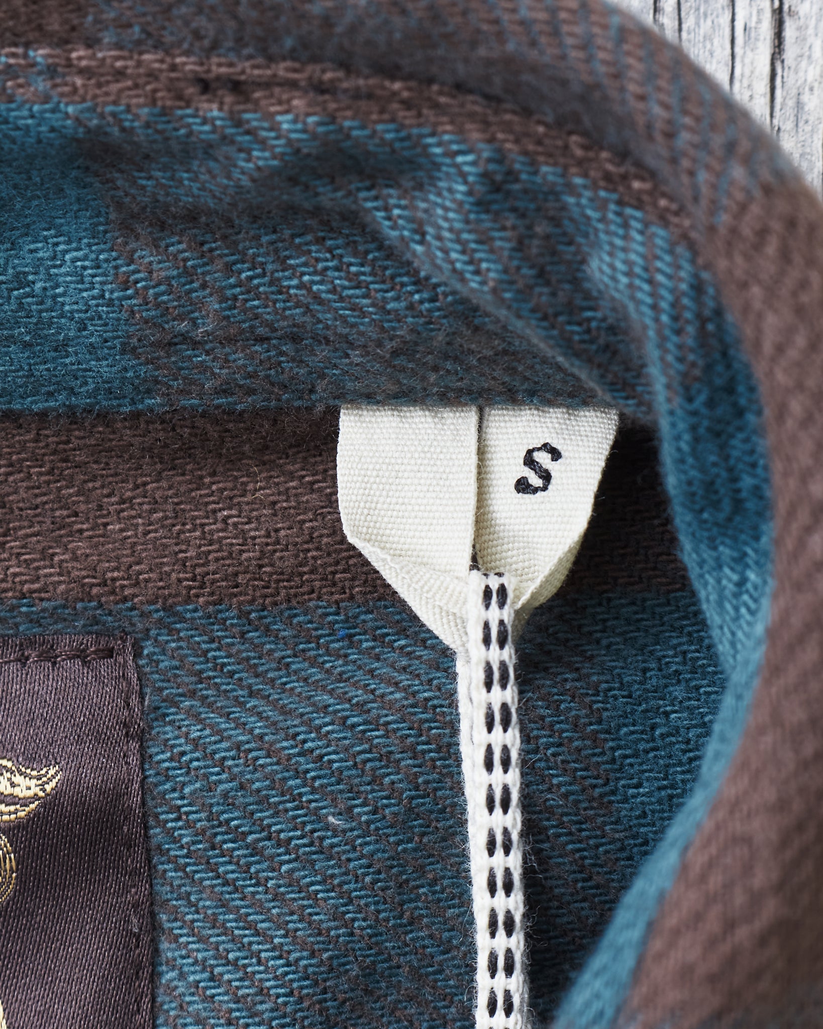 Made of narrow loom fabric specially woven in Japan just for Indigofera. The selvedge of the fabric can be seen on the inside of the buttoned front. The shirt is thick, so it works just as fine to wear as a jacket in warmer weather.