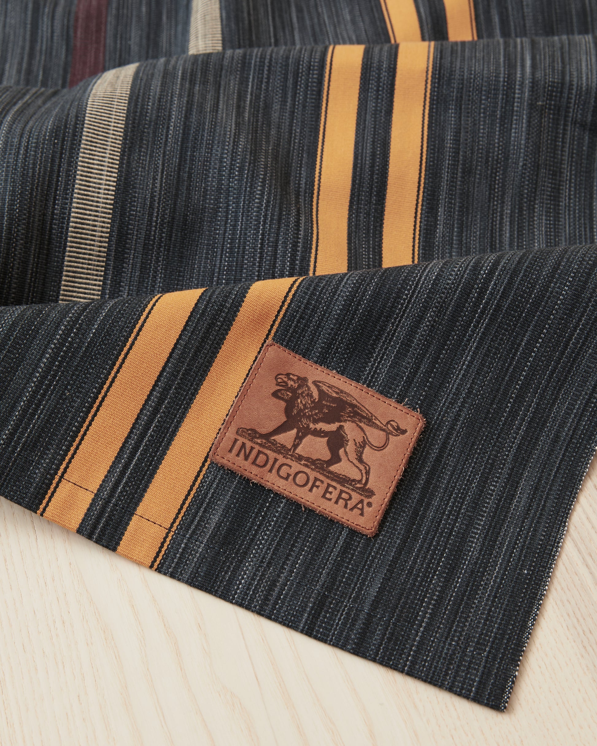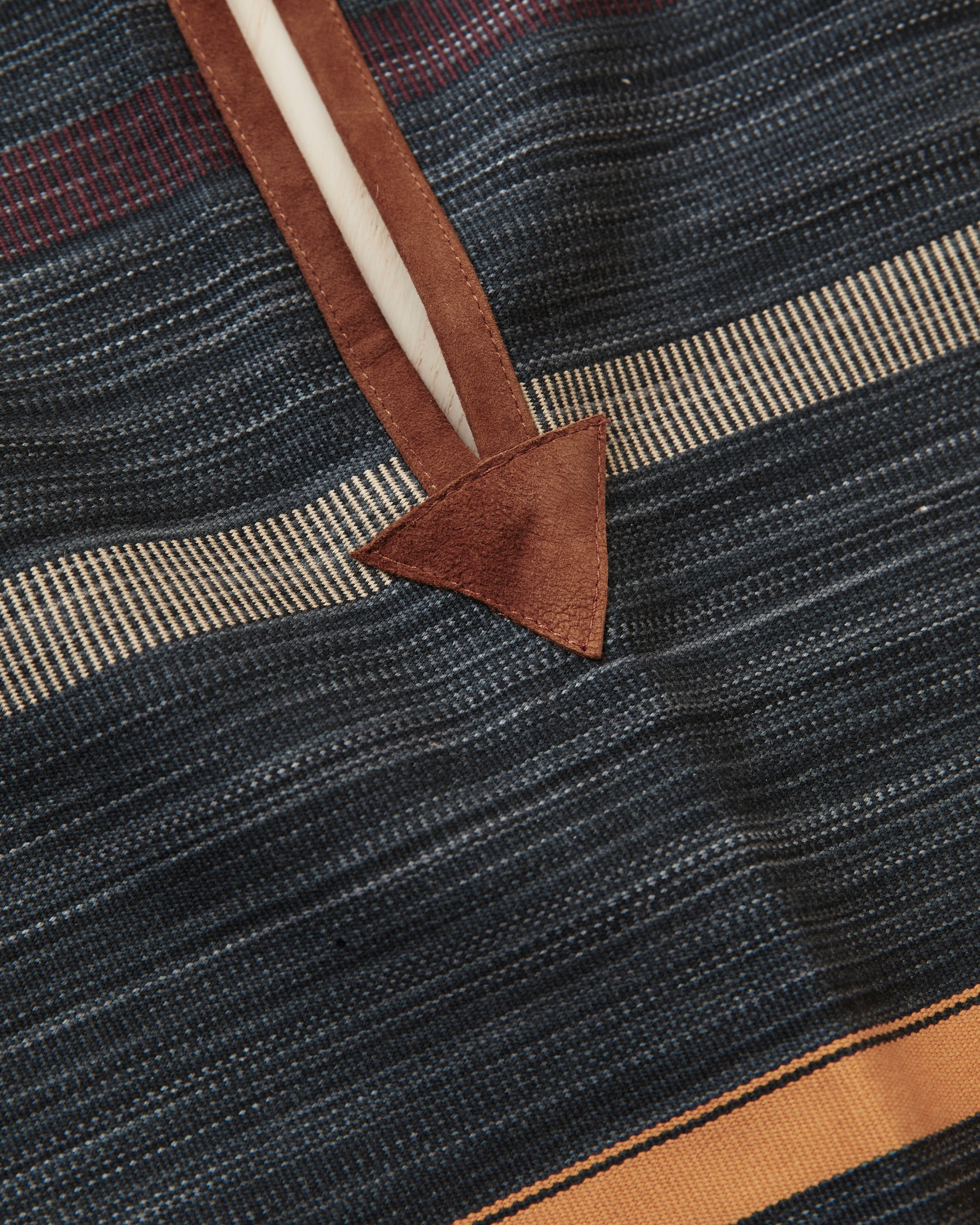 This wonderful Poncho is made by Indigofera. The fabric is a cotton/wool mixture and it's woven in Japan on a narrow loom machines!