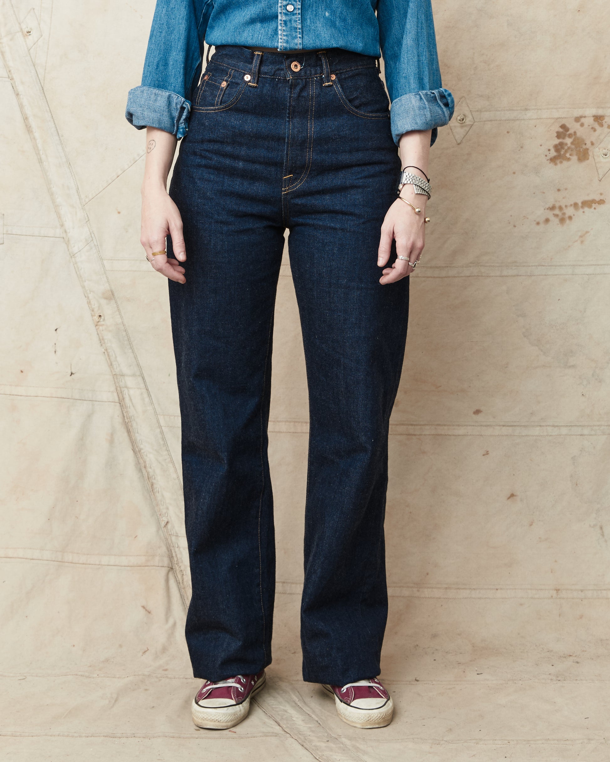 Roslyn is finally here! and we are so happy that Indigofera has made these women's jeans. They find their inspiration in the iconic women's 701 jeans made by Levi's in the 40's and 50's. A fit loved by actress Norma Jean also known as Marilyn Monroe among others.