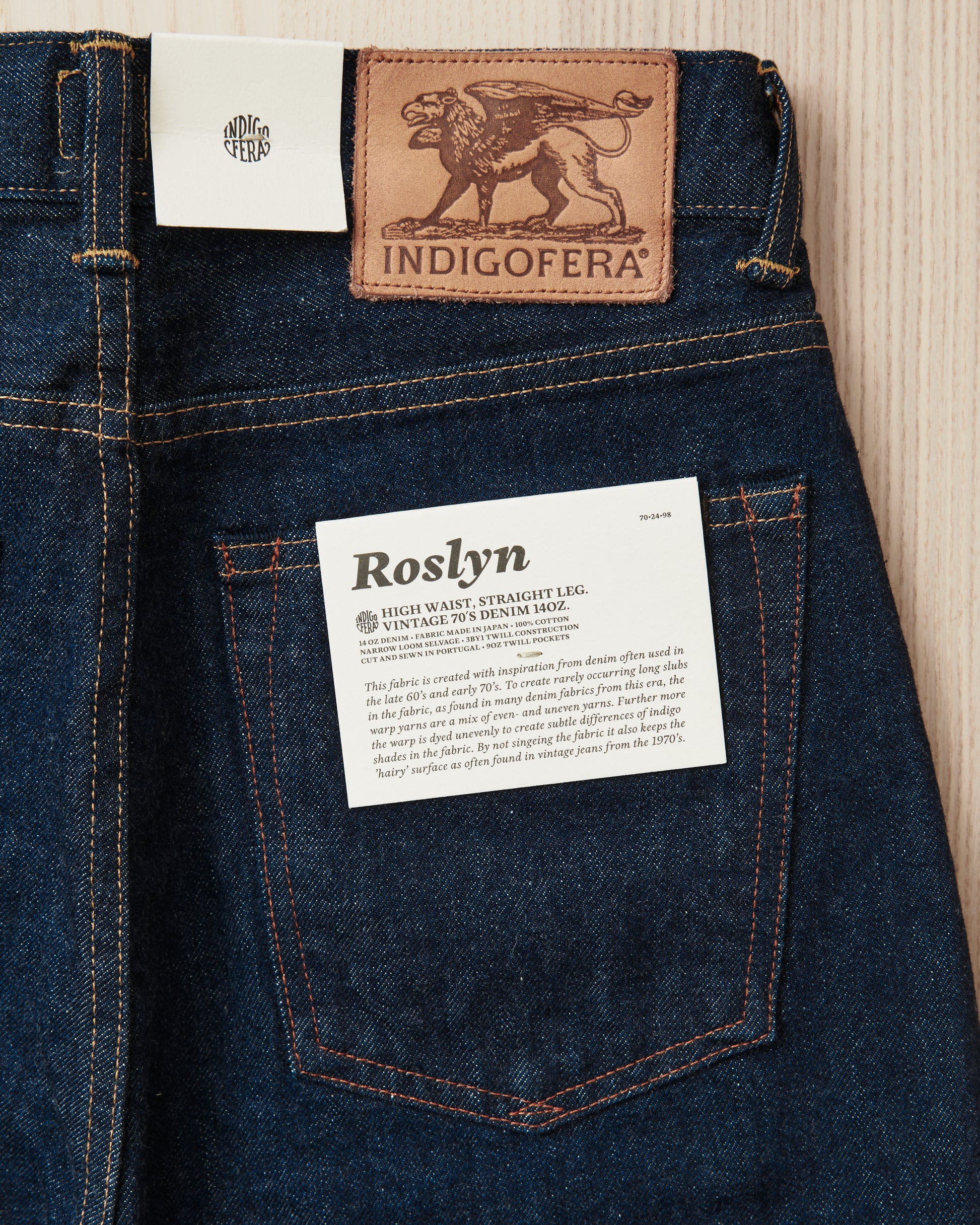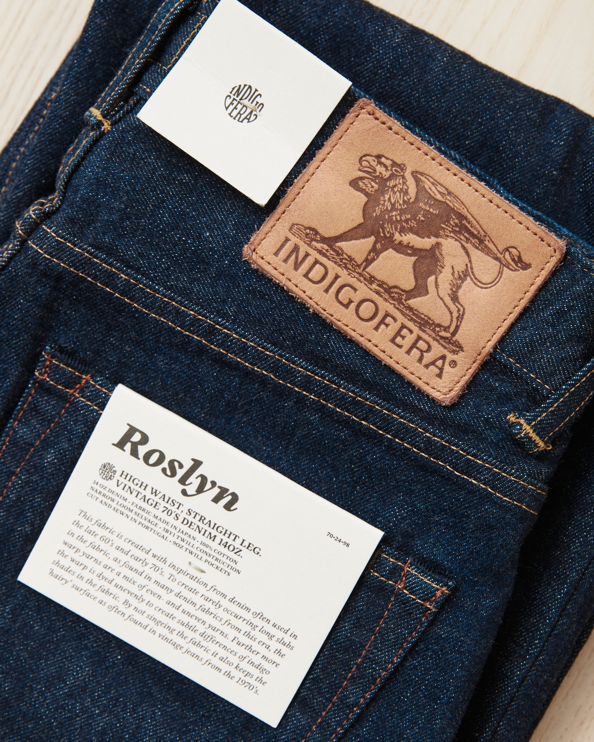 - Indigofera Roslyn Women's Jeans Vintage 70's Selvage Denim Rinsed